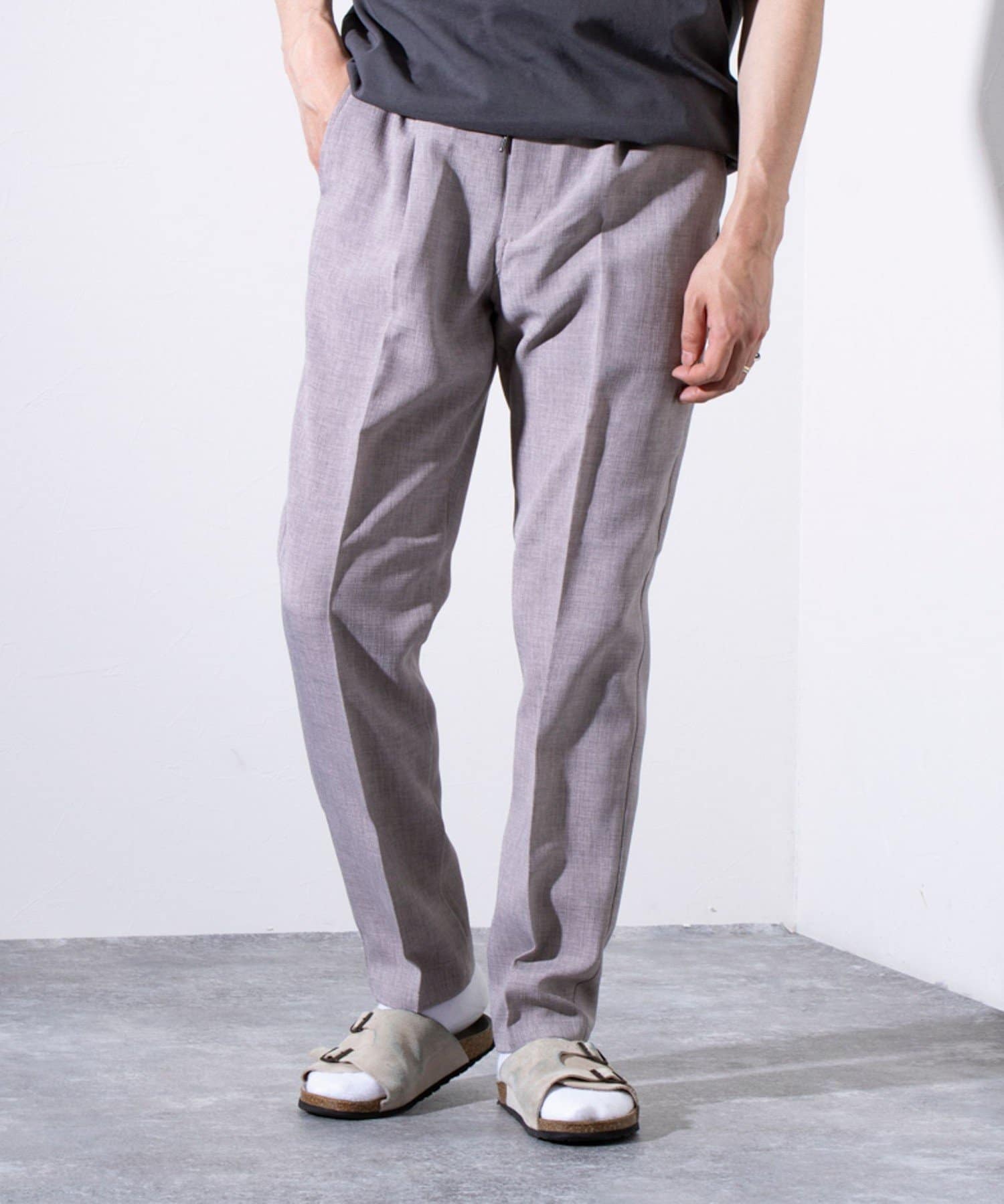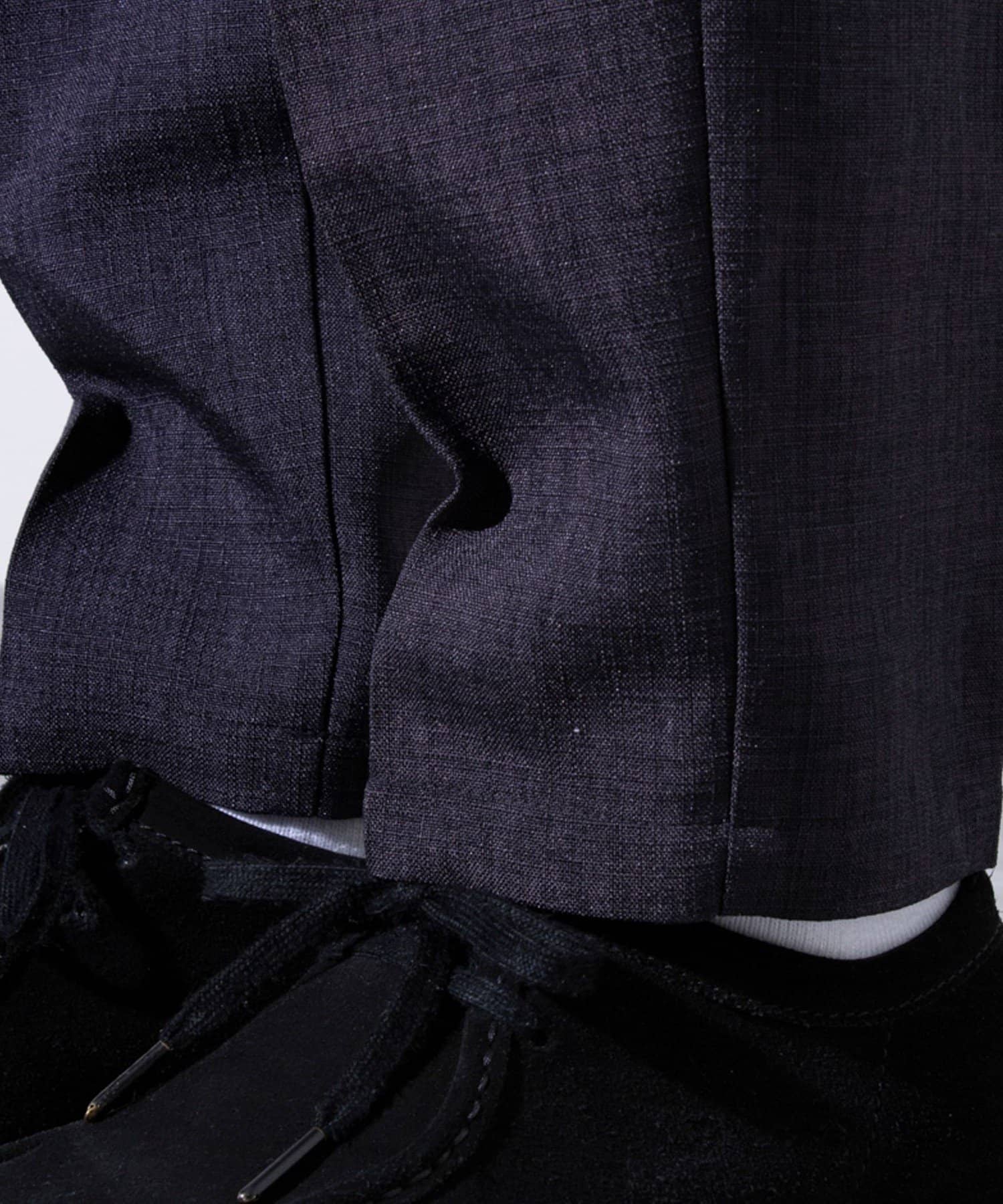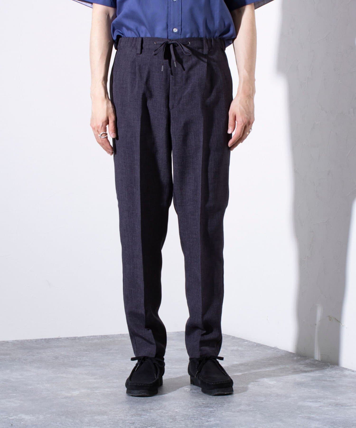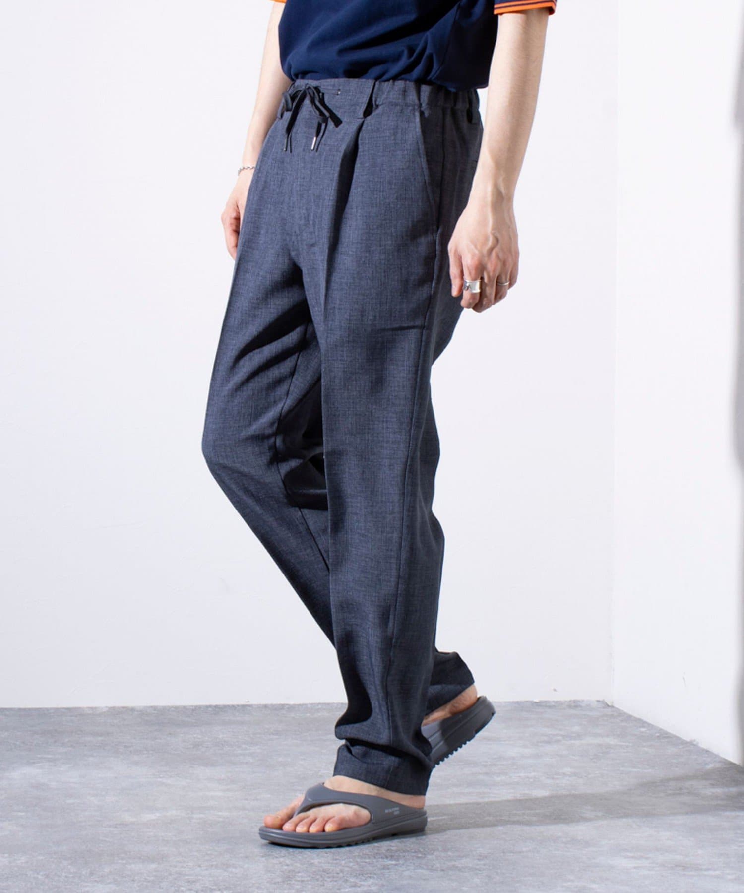 リネンライクなポリエステル糸を使用した生地を採用したイージーパンツ。