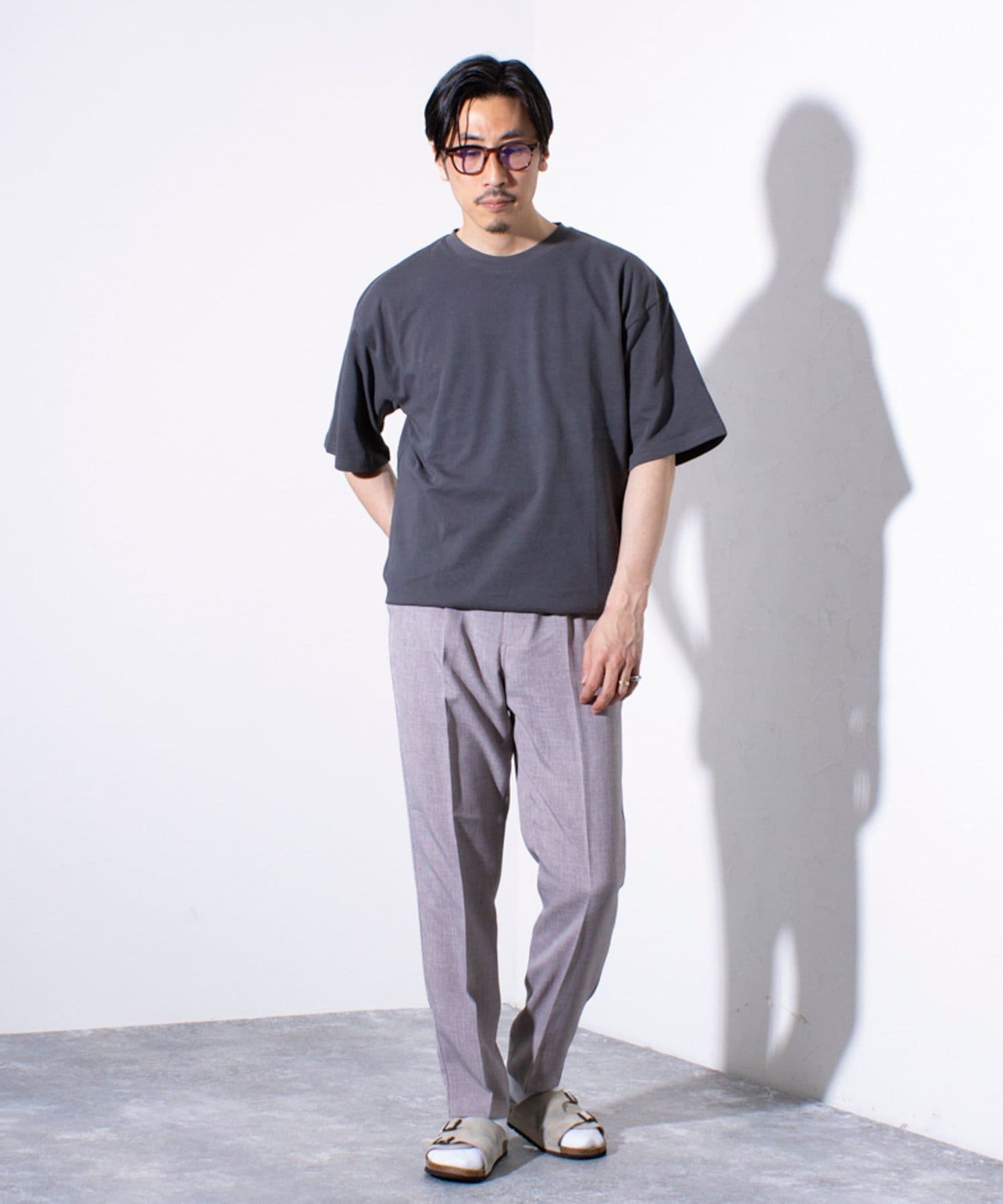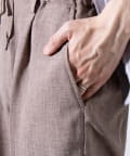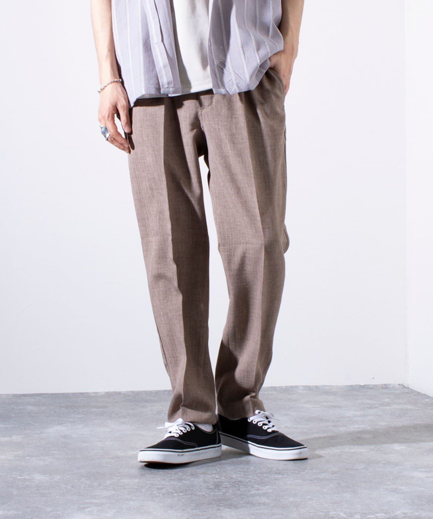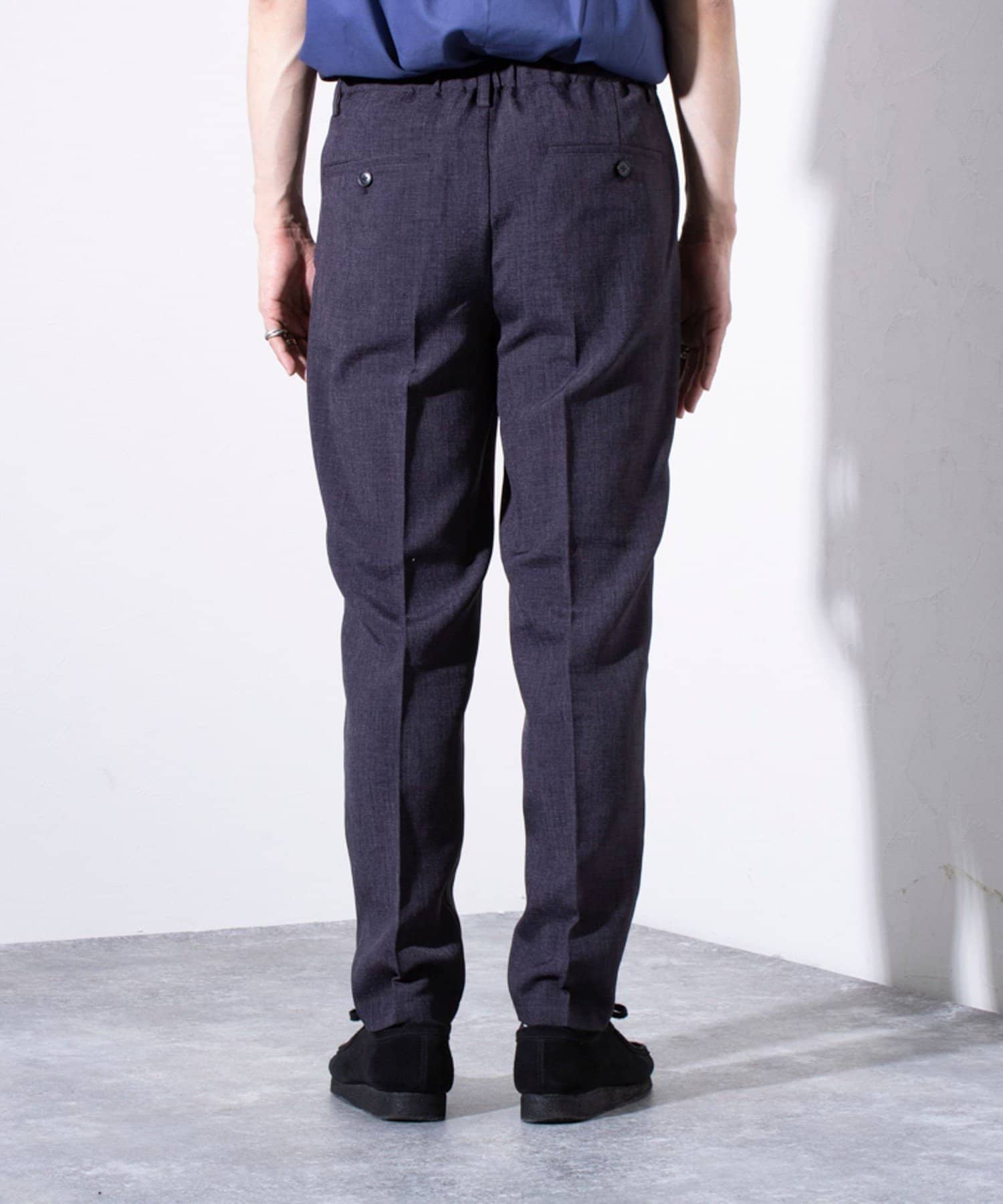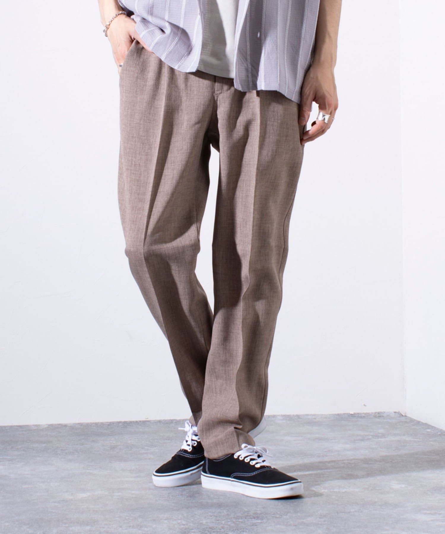 リネンライクなポリエステル糸を使用した生地を採用したイージーパンツ。