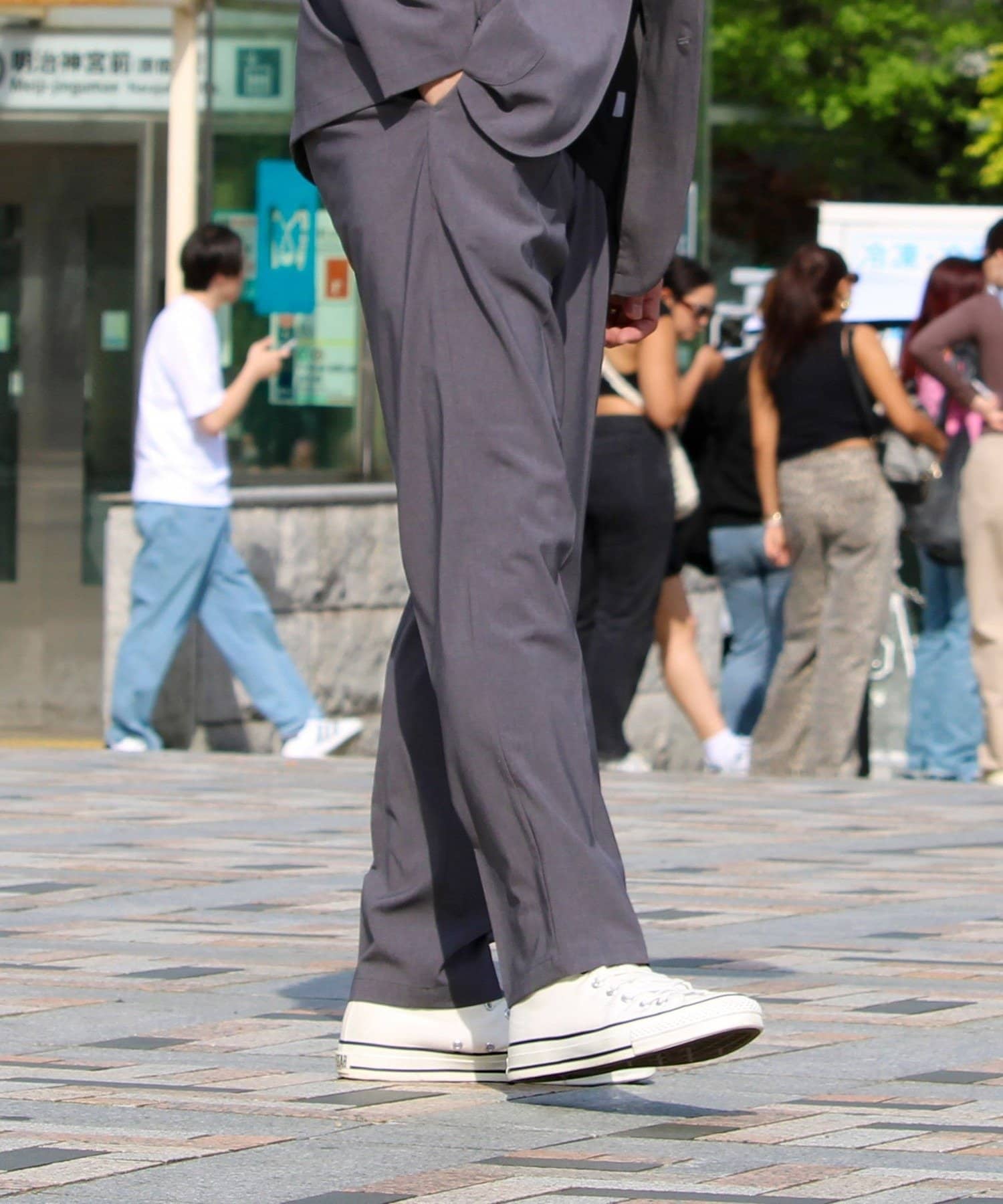 キレイなラインが出る様にシルエットにこだわったテーパードスラックス。