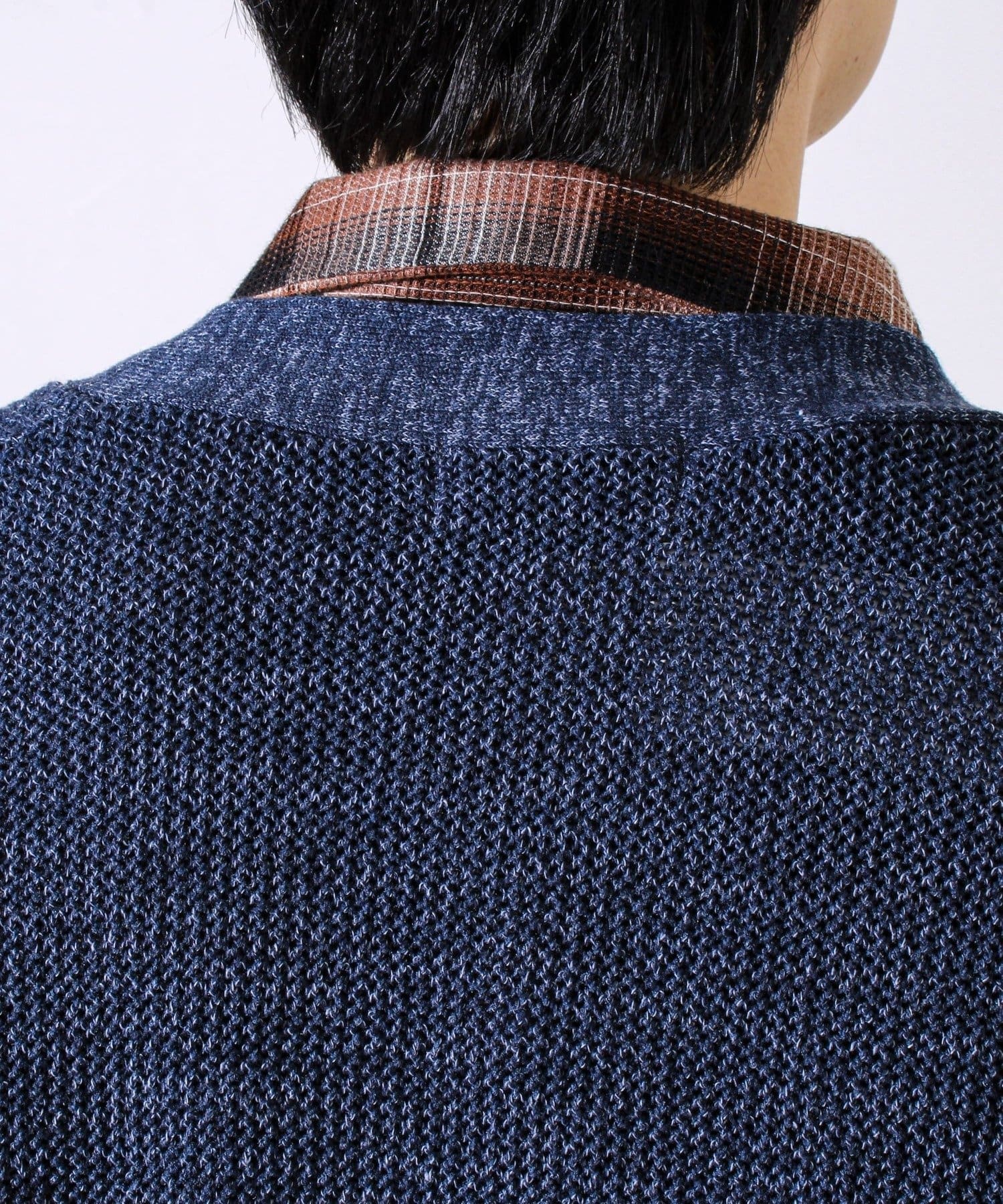 ・色糸を組み合わせたミックス調の糸で、奥行きある表情に仕上げたニットカーディガン。