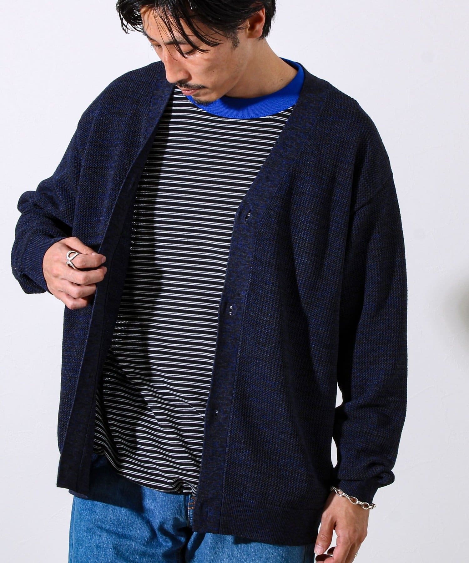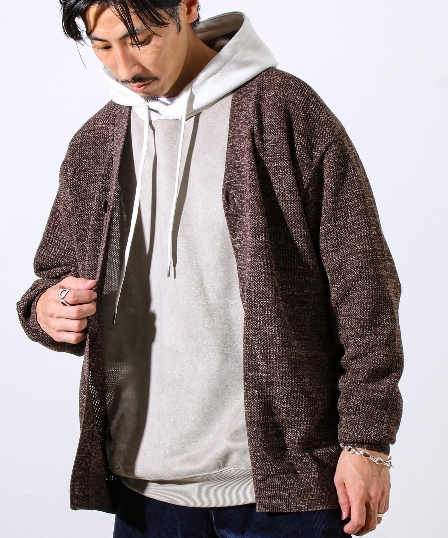 #ニットカーディガン #ミックスニット #リラックスシルエット #ユニセックス #秋冬コーデ #レイヤード #カジュアルスタイル #軽羽織 #イージーケア #抜け感コーデ