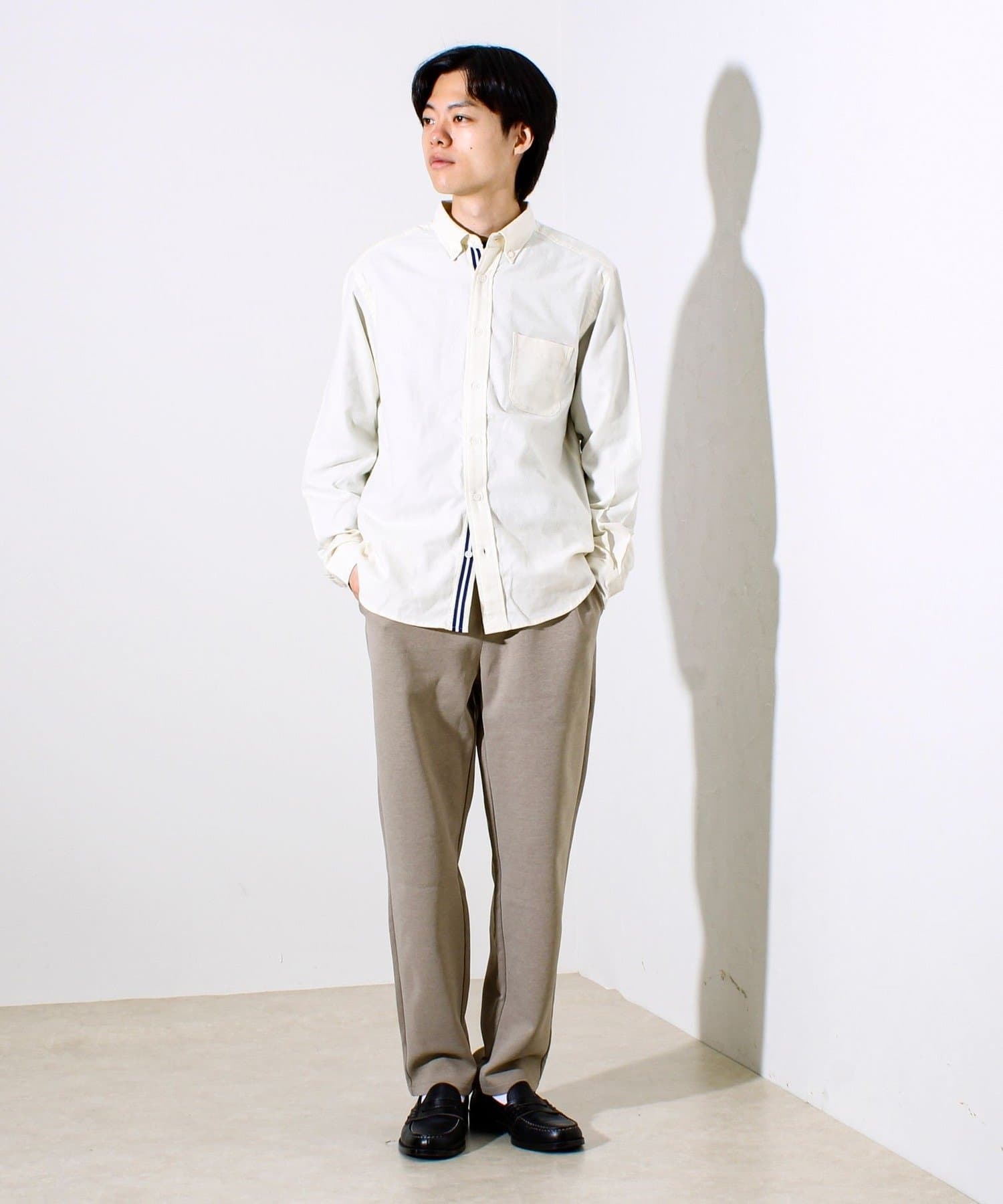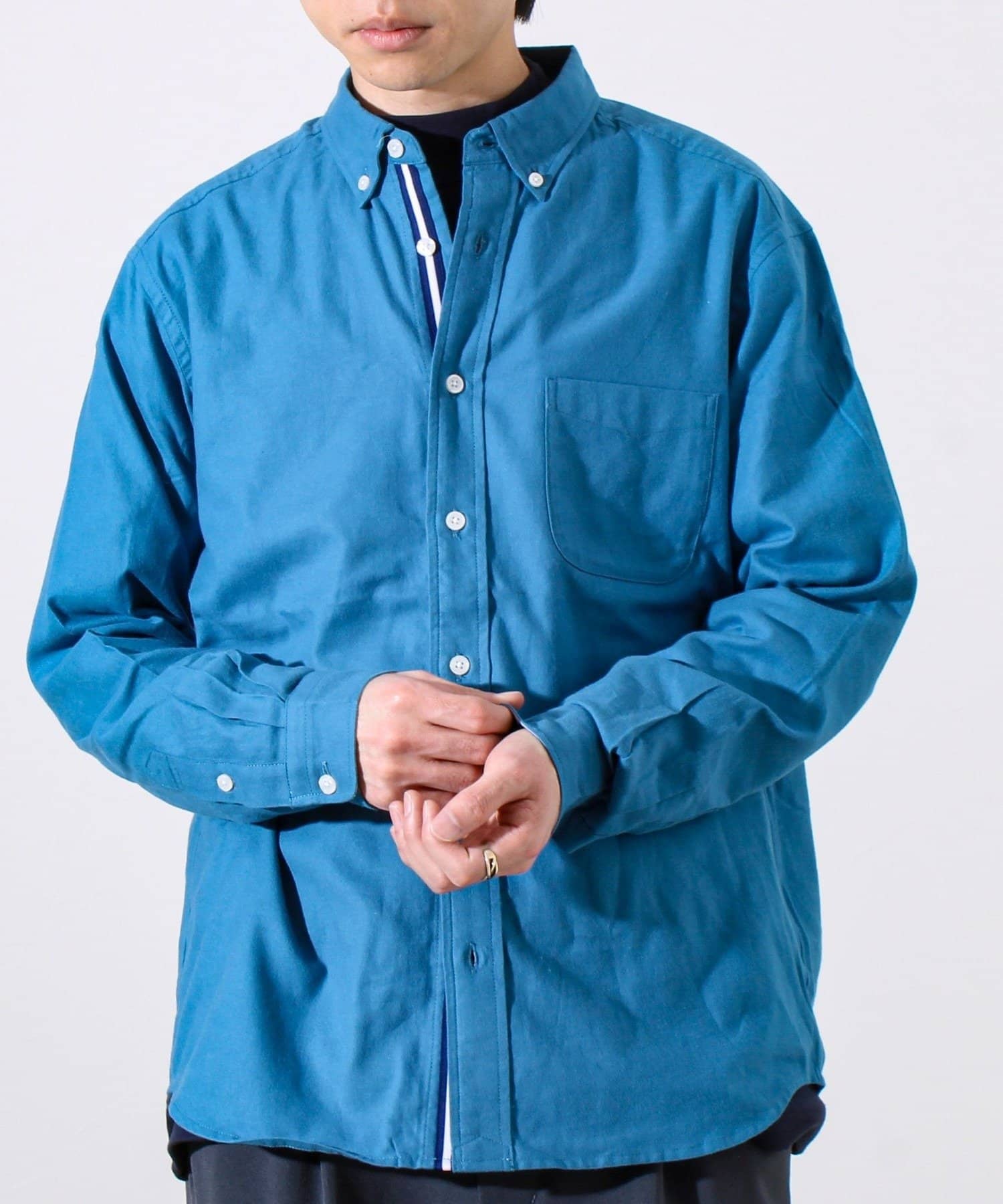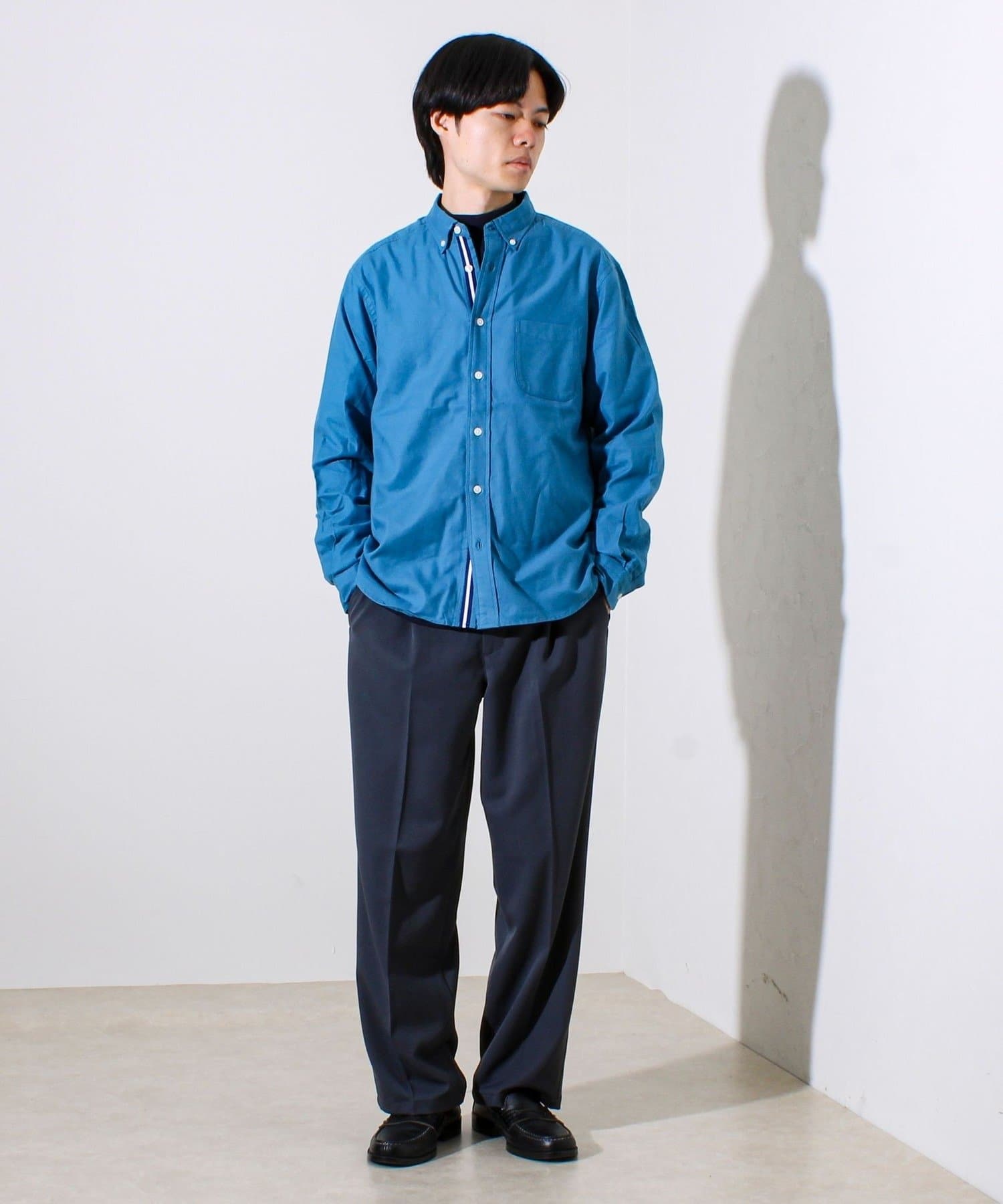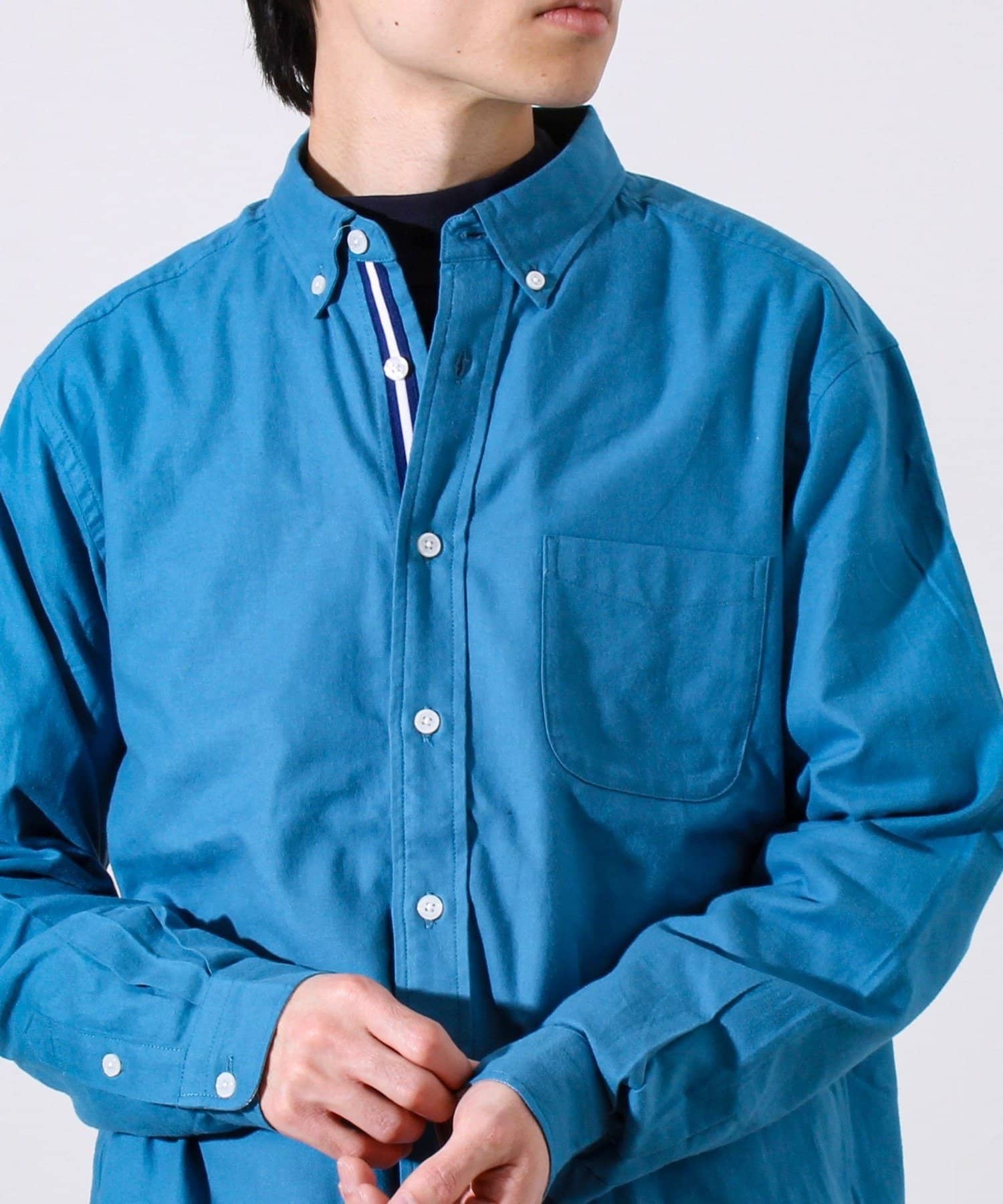 ・襟はボタンダウン仕様で、カジュアルすぎずきれいめな印象