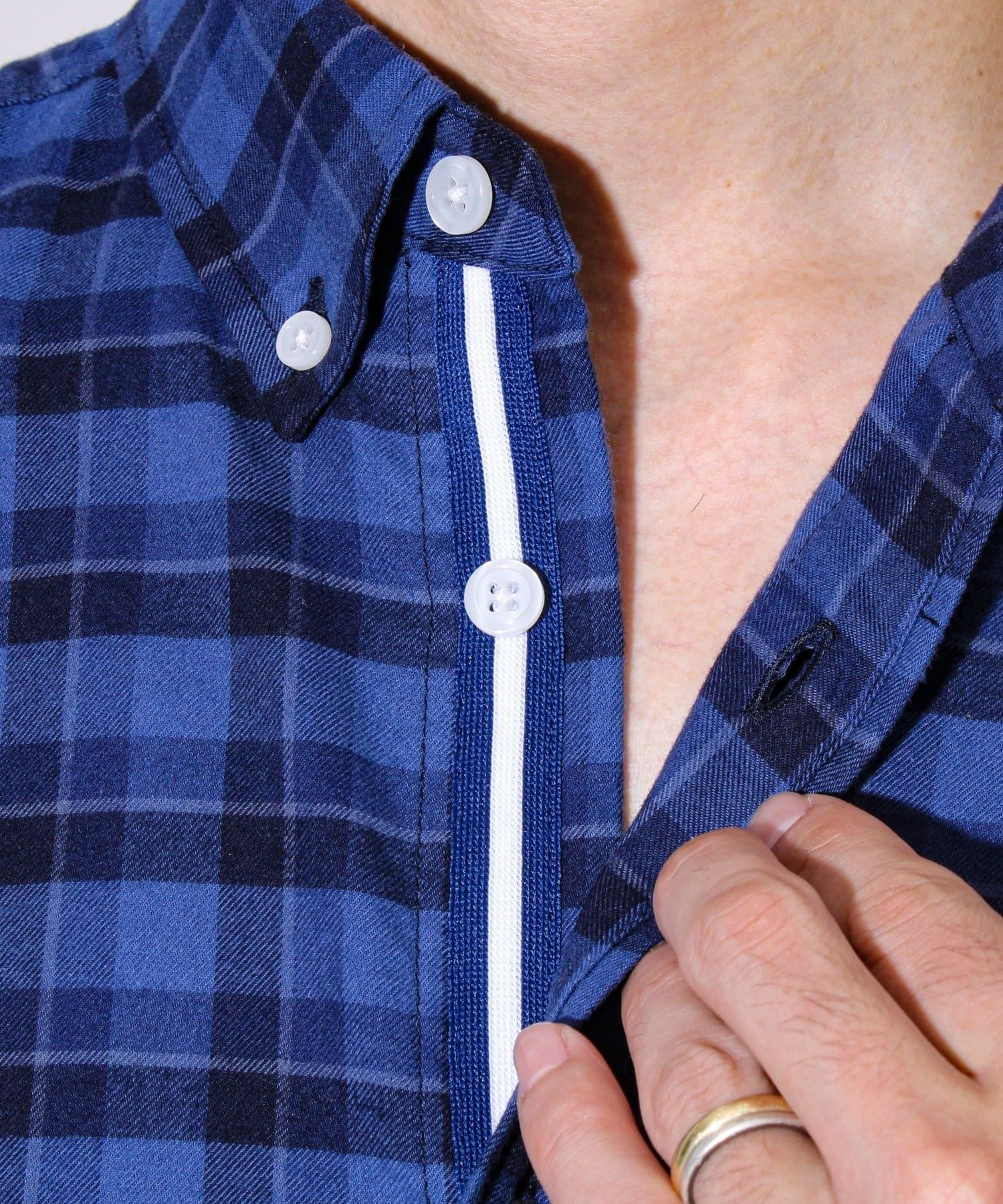 テープ使いがアクセントの大人ネルシャツ