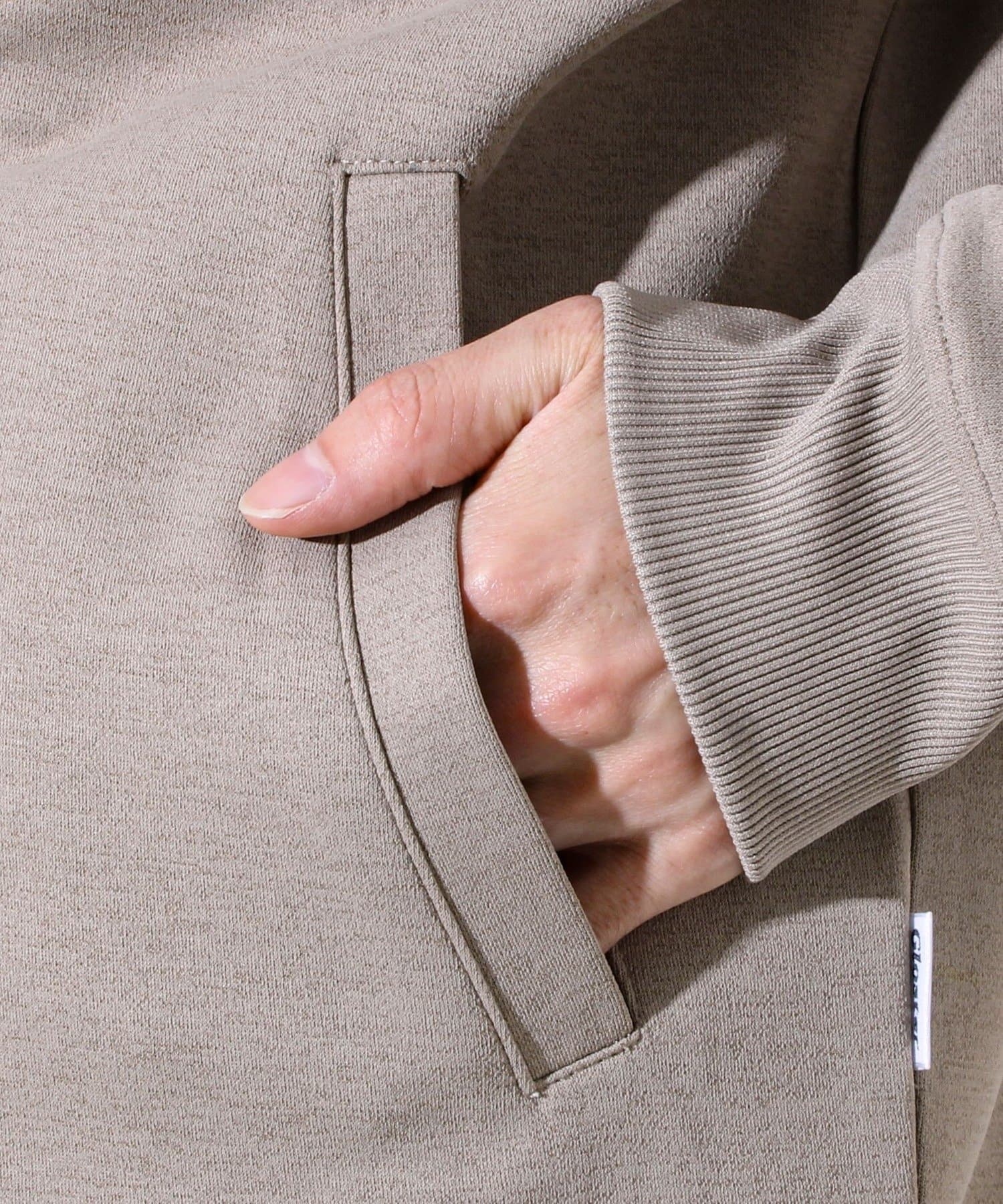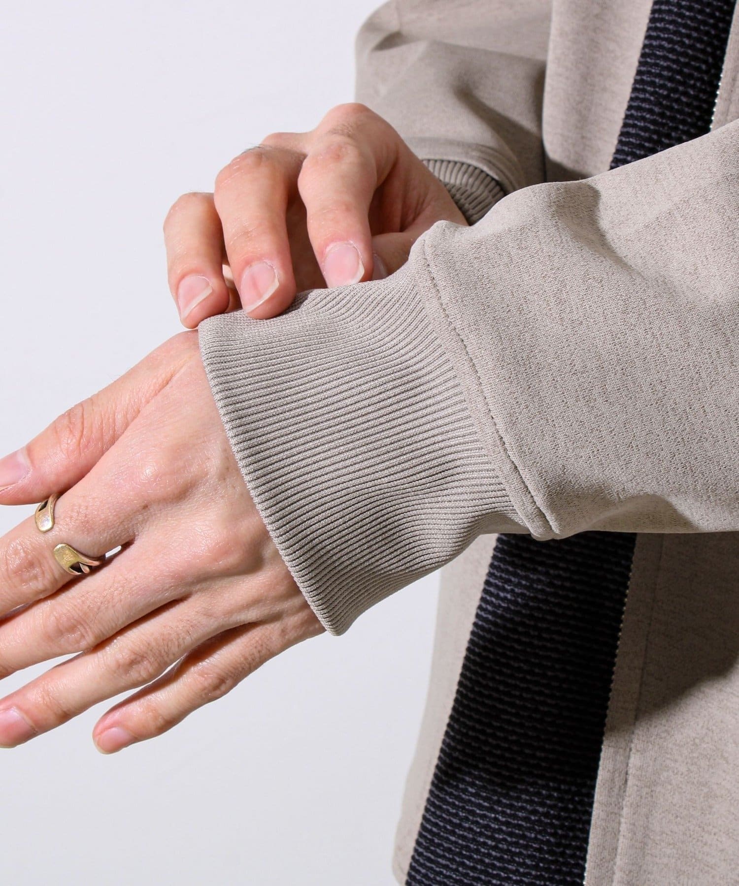 ・裾と袖口はリブ仕立てでフィット感を確保。ミニマルな中にも上品さを感じる仕上がり。