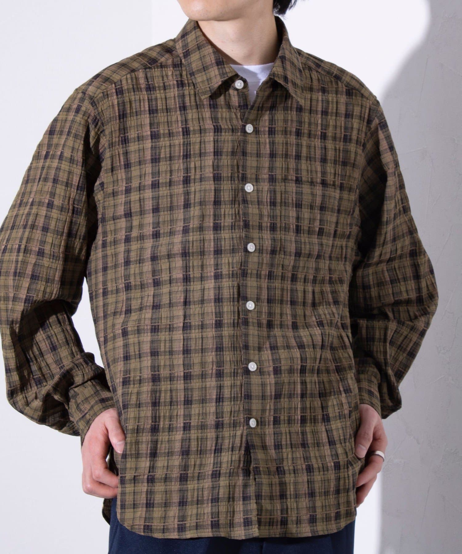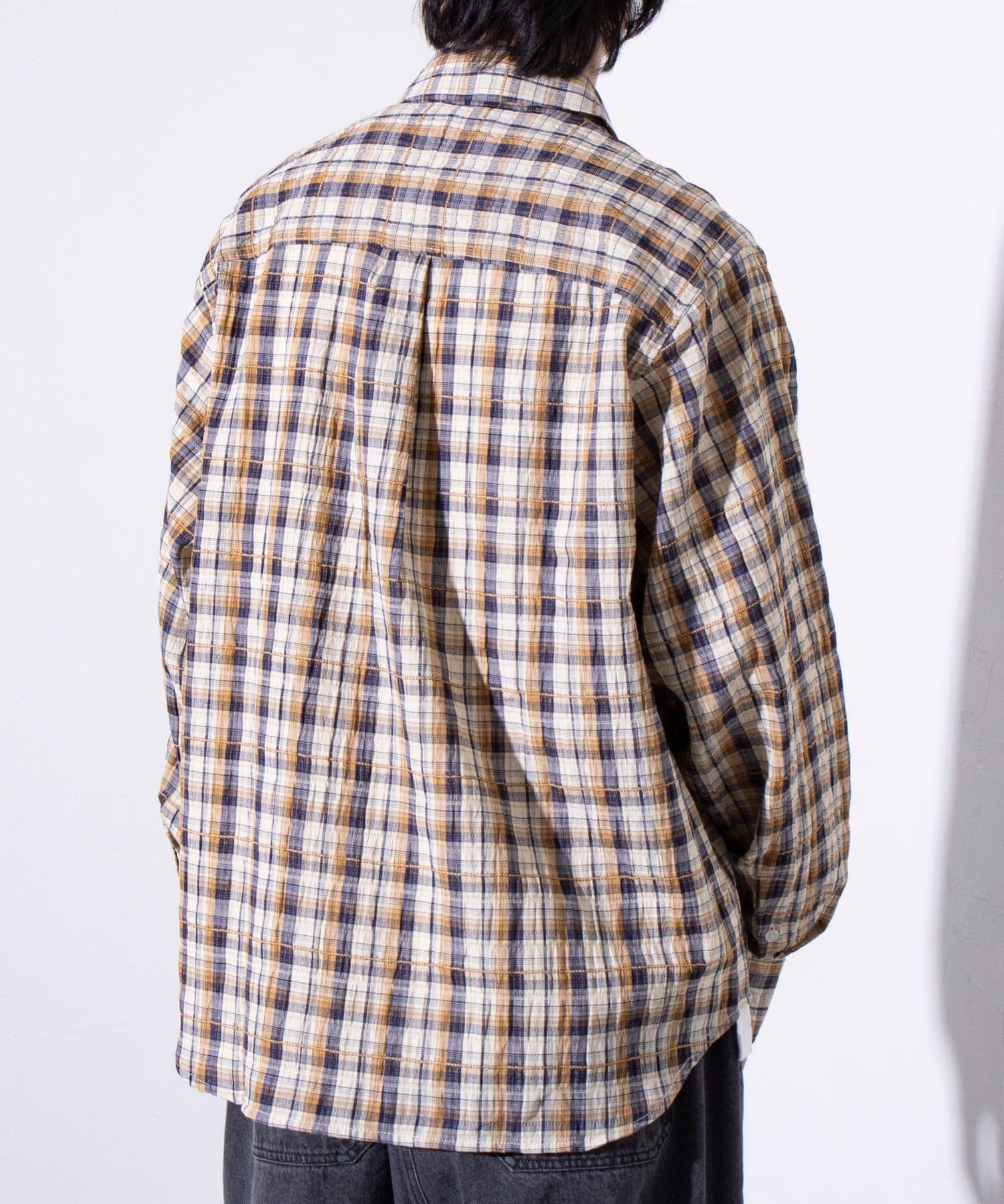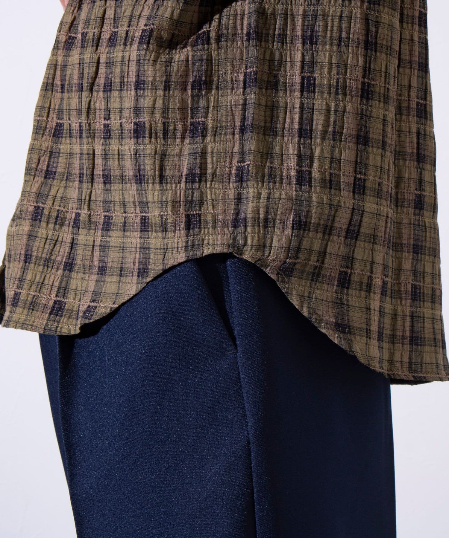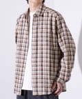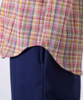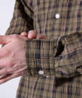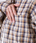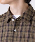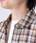 麻のような風合いの生地を使用したチェックシャツ