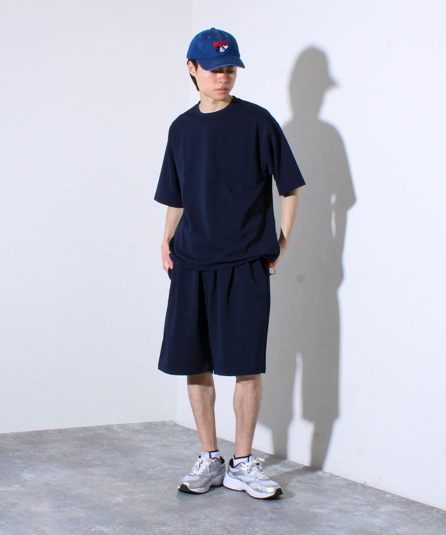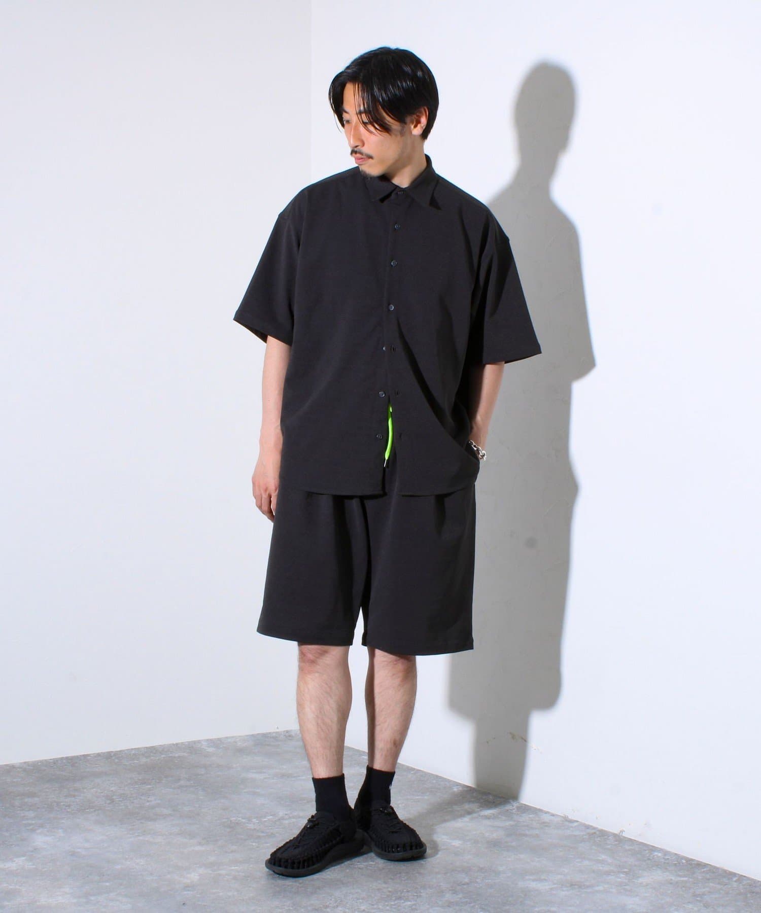 ・同素材Tシャツ、半袖シャツとセットアップで合わせ、ワンマイルスタイルも◎