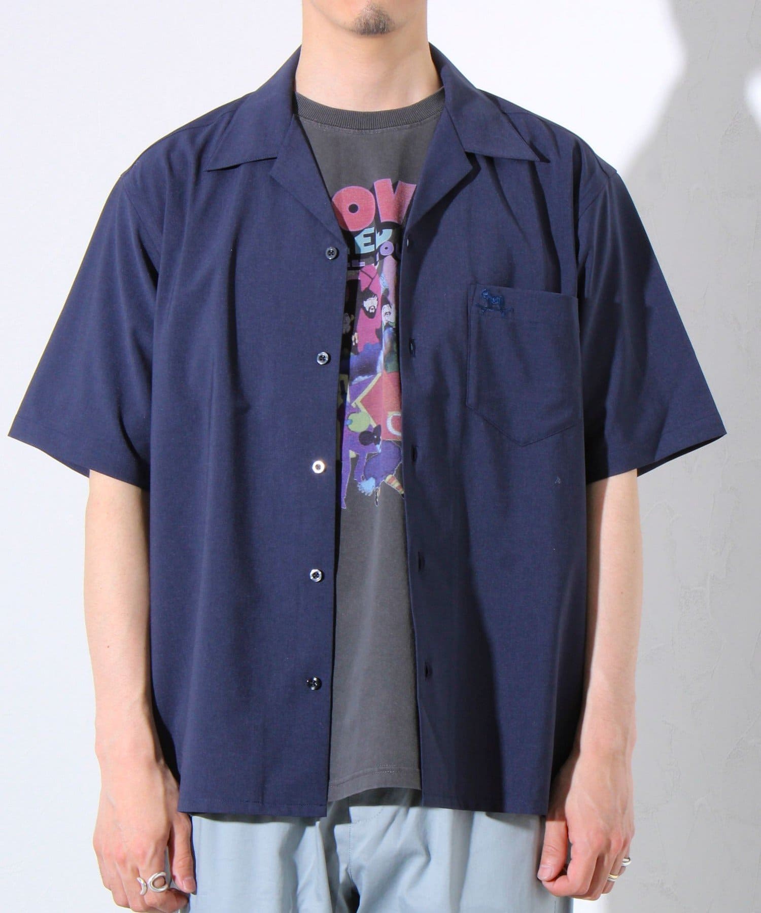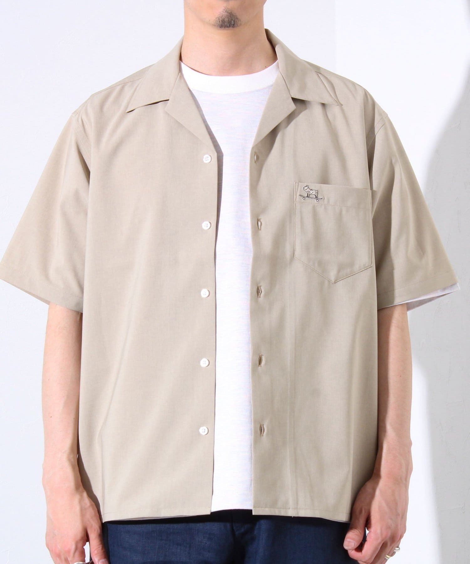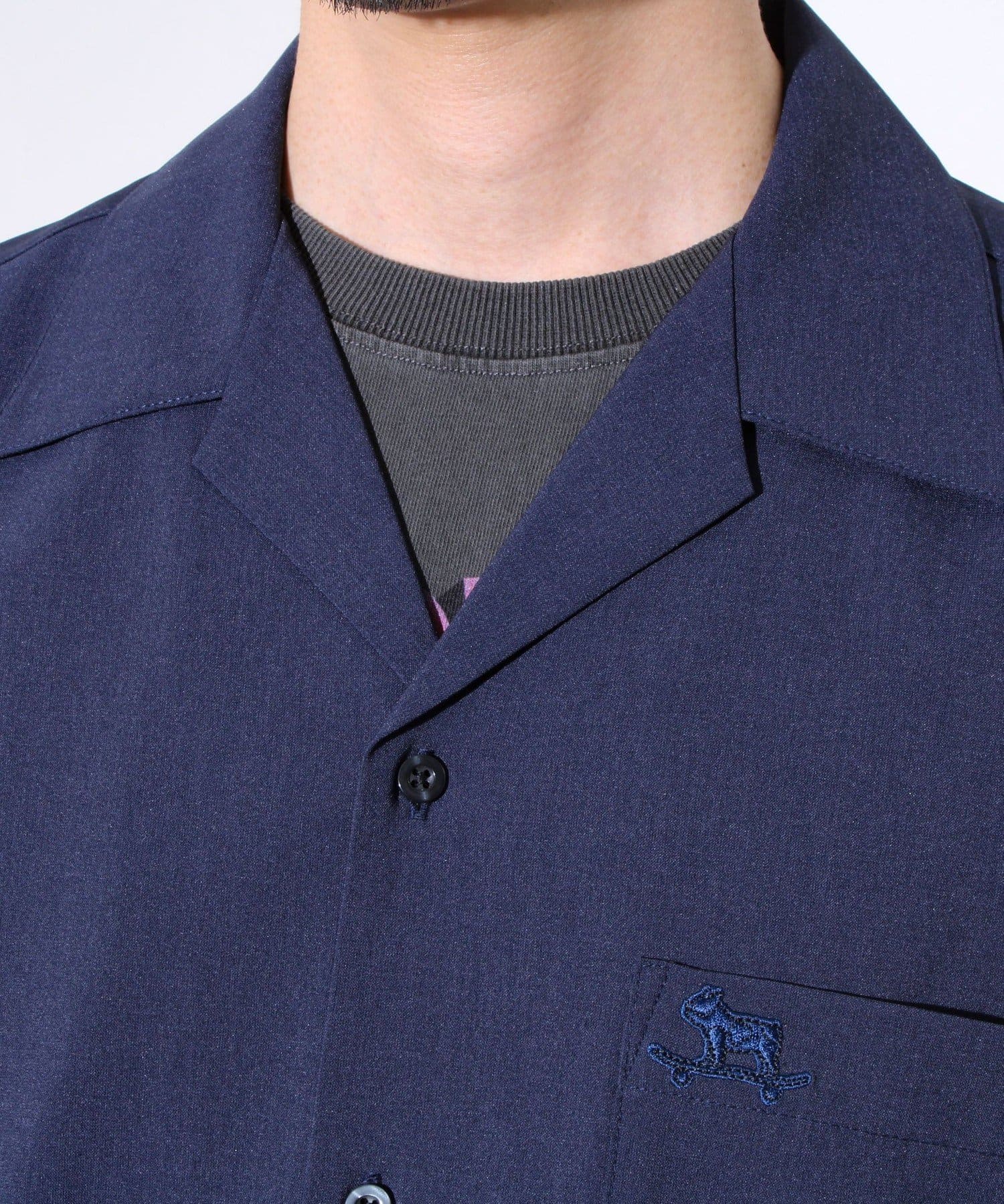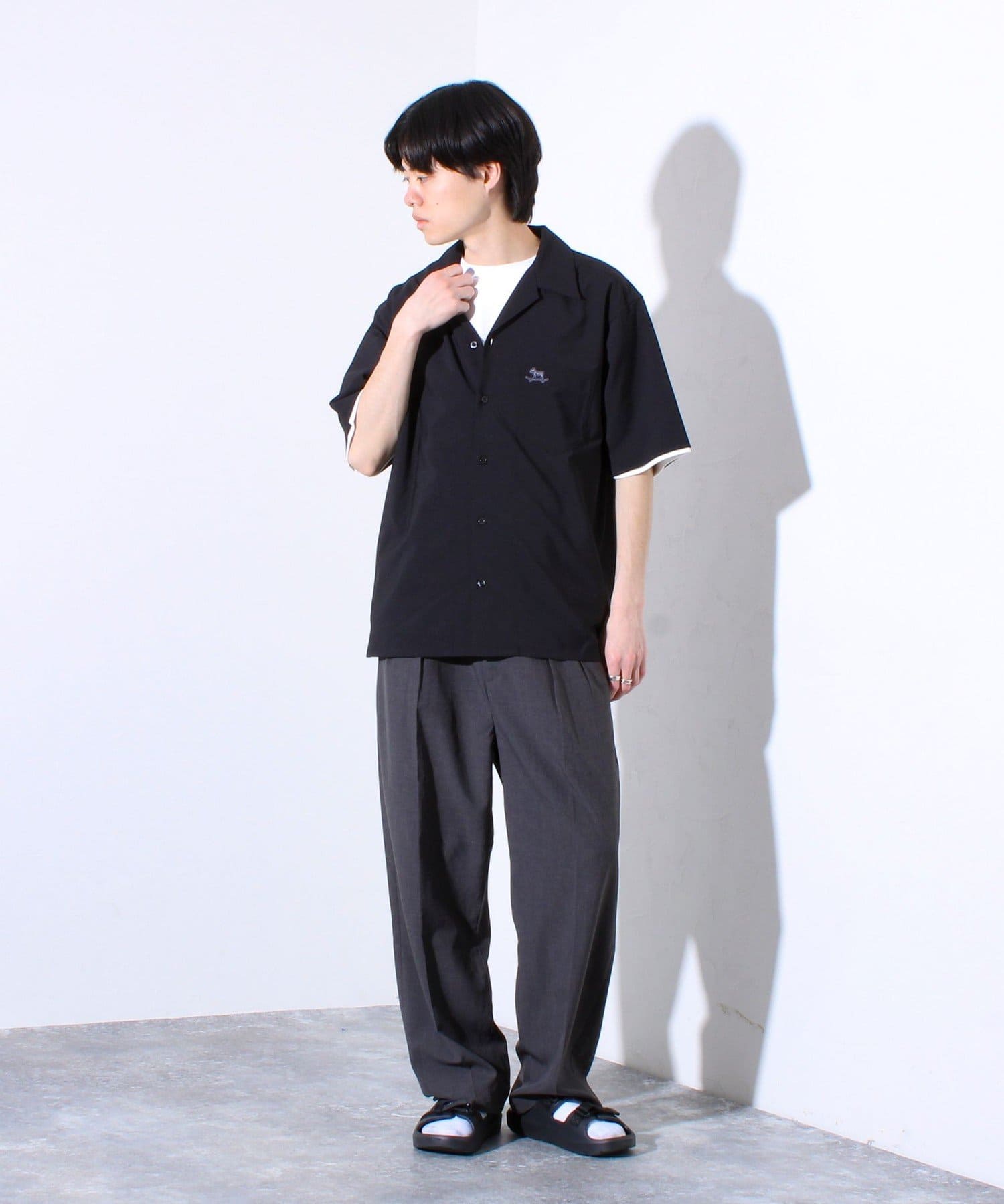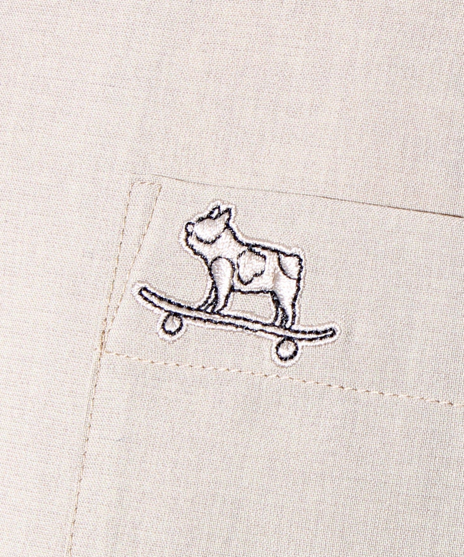 【GLOSTER】フレンチブルドッグ刺繍 COOLMAX オープンカラーシャツ