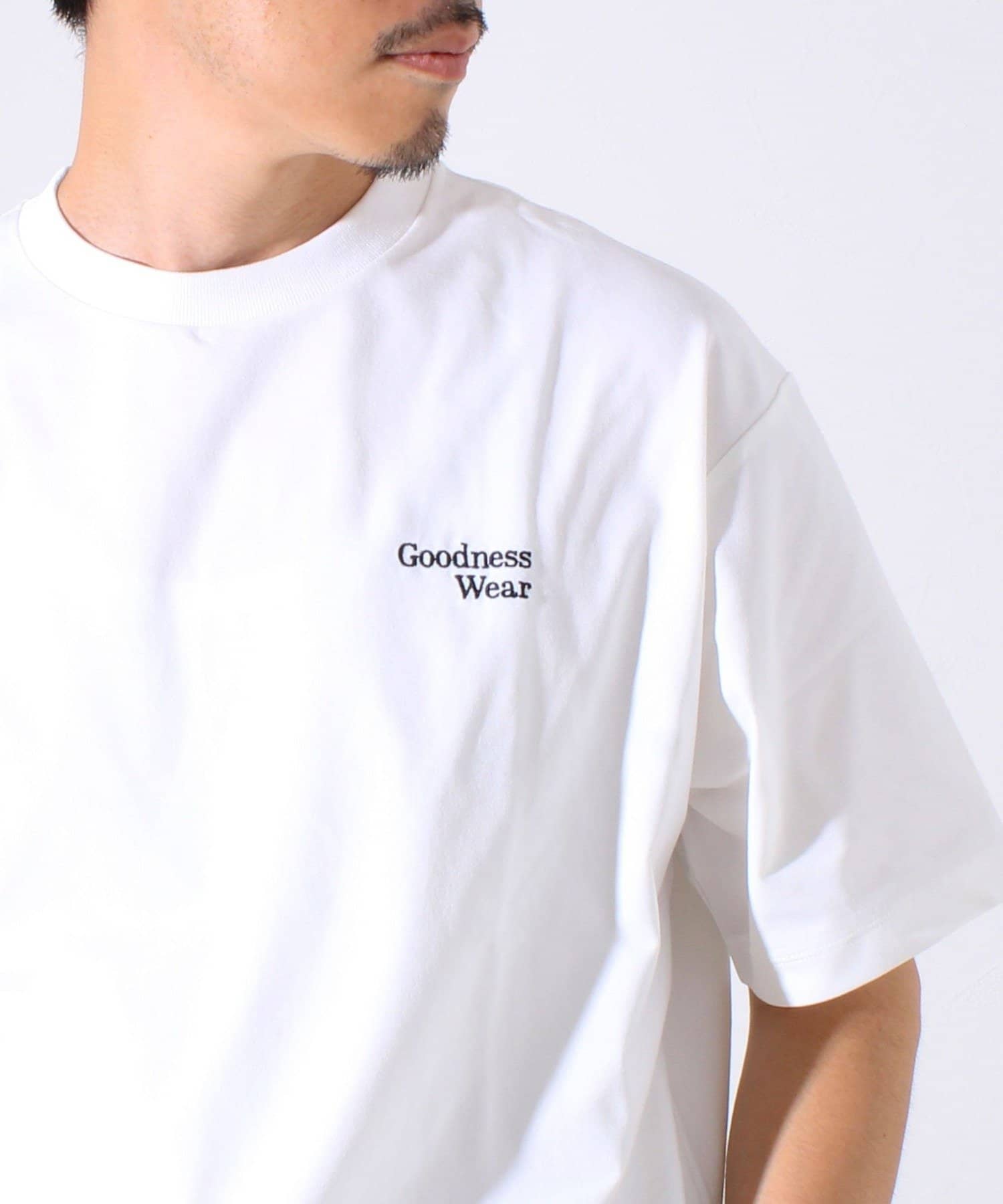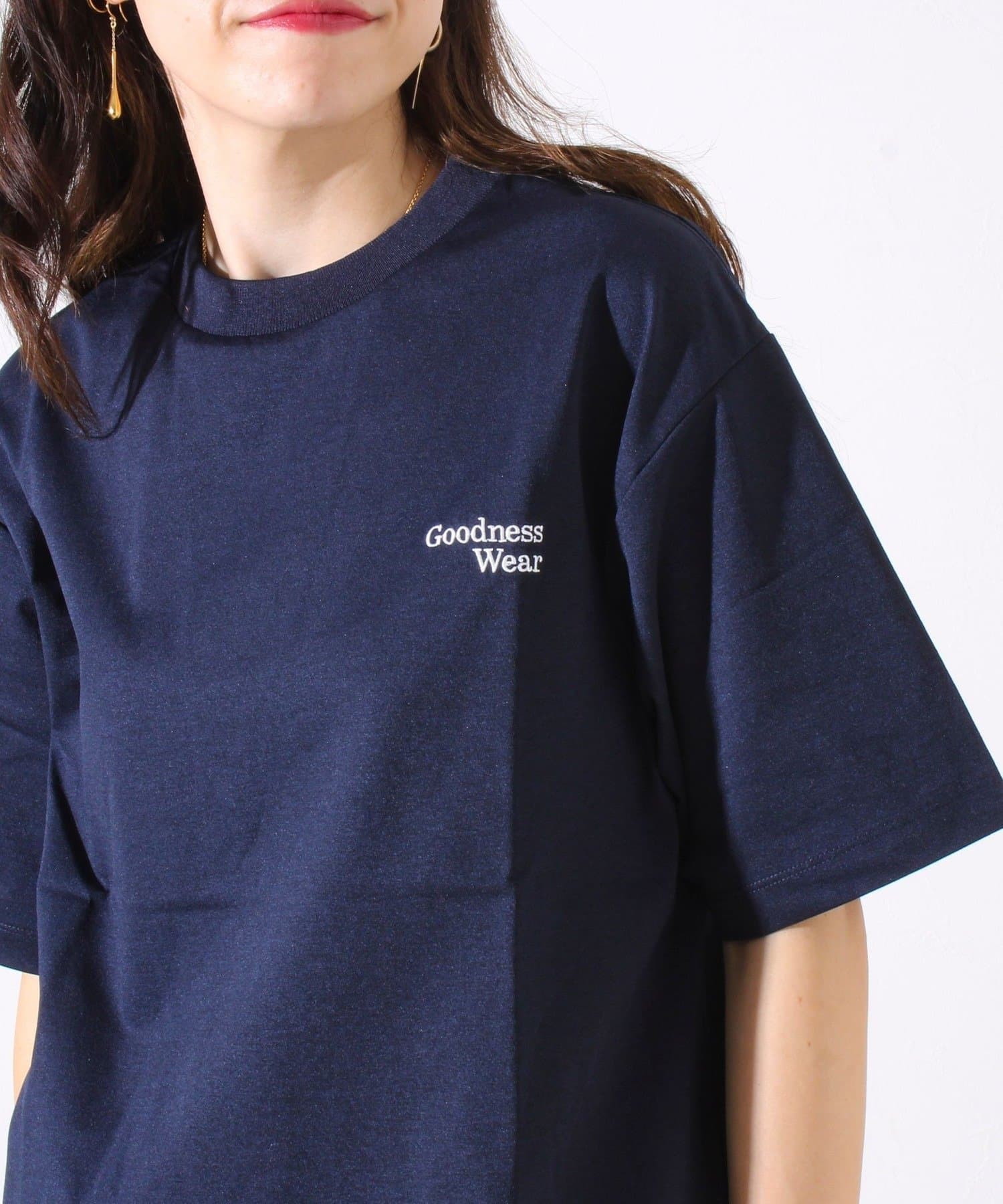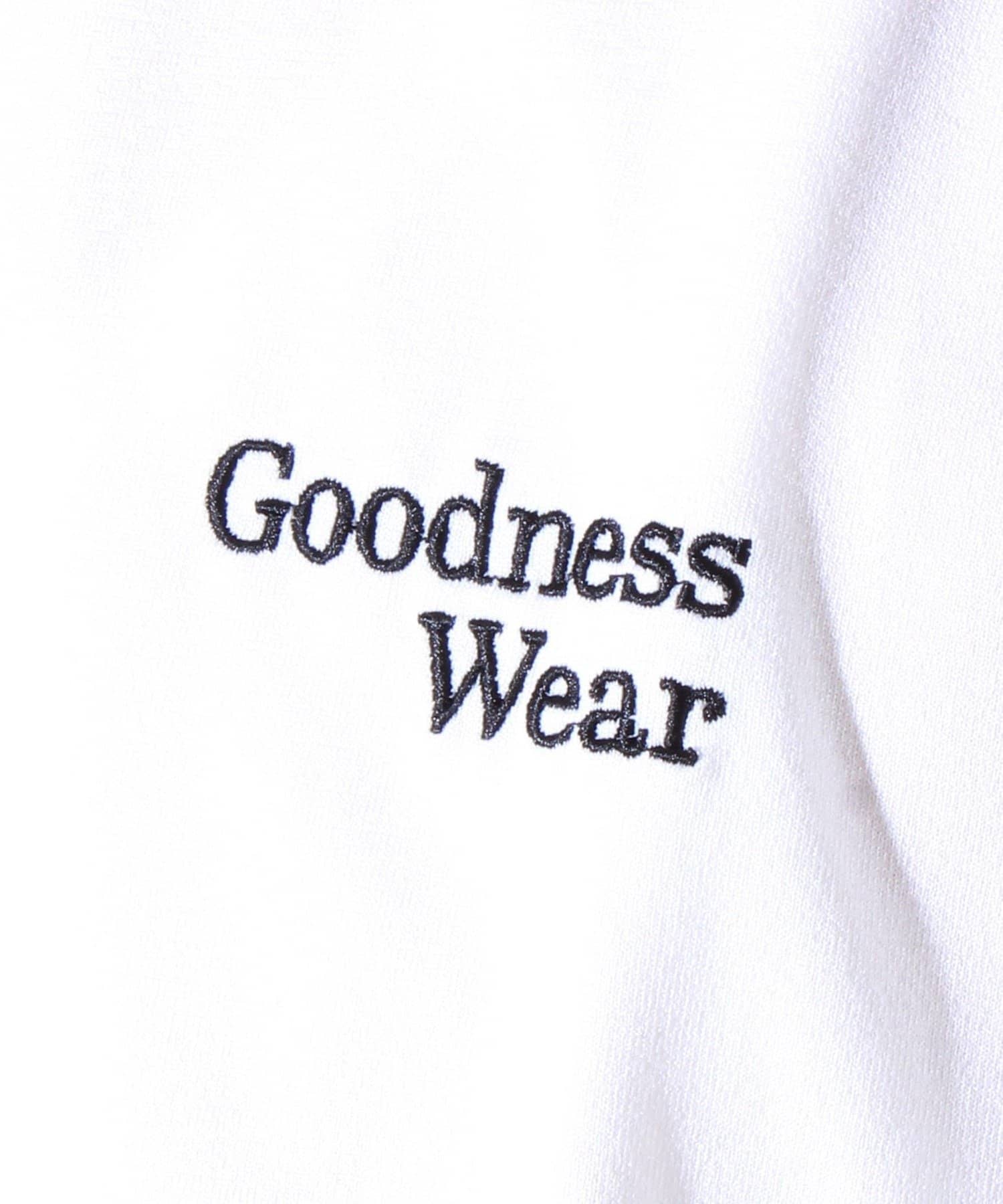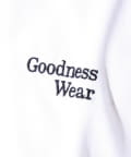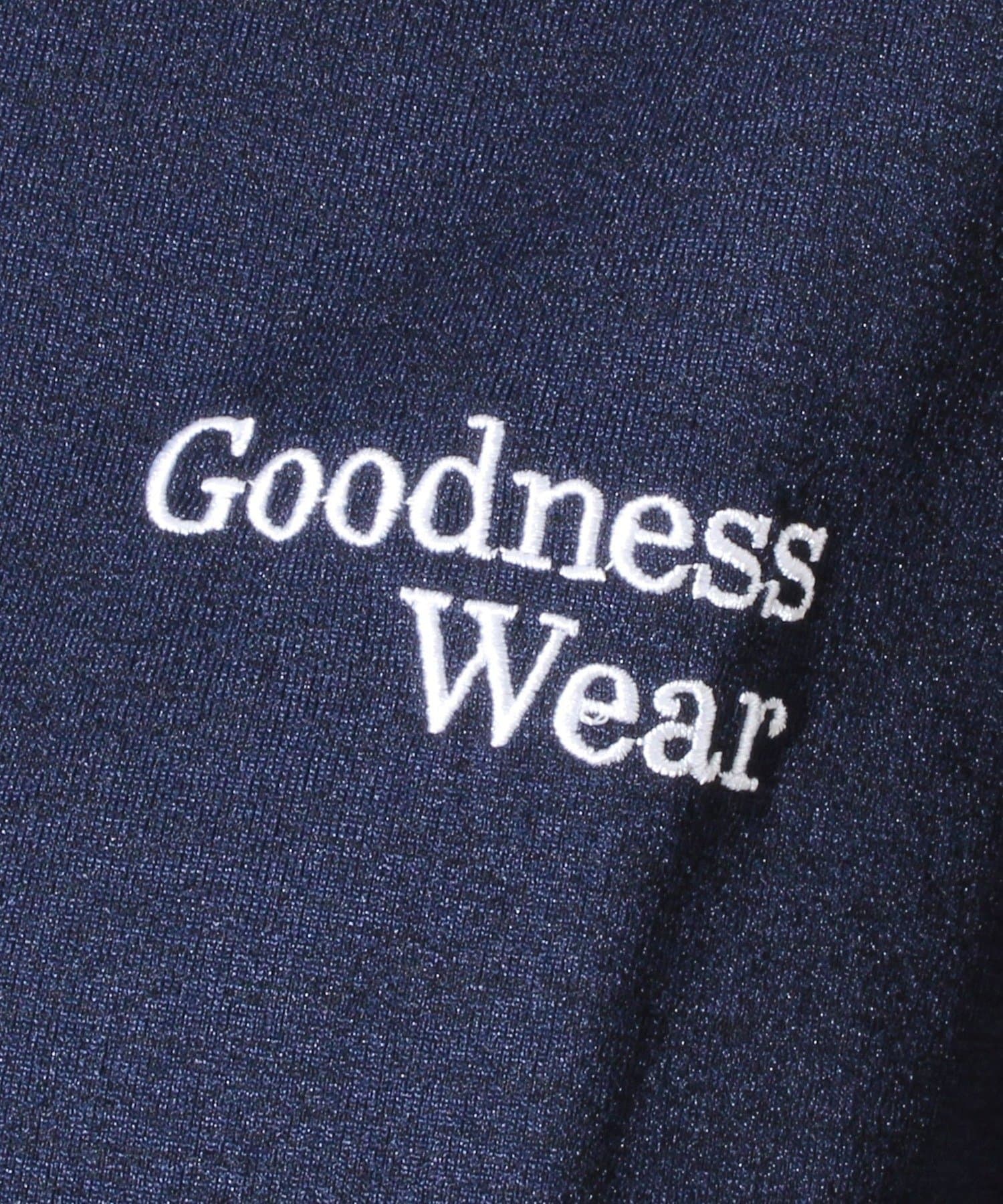 ・【デザイン性と実用性】胸元の“Goodness Wear”刺繍がワンポイントに。裾にはシルエット調整可能なスピンドル入り。