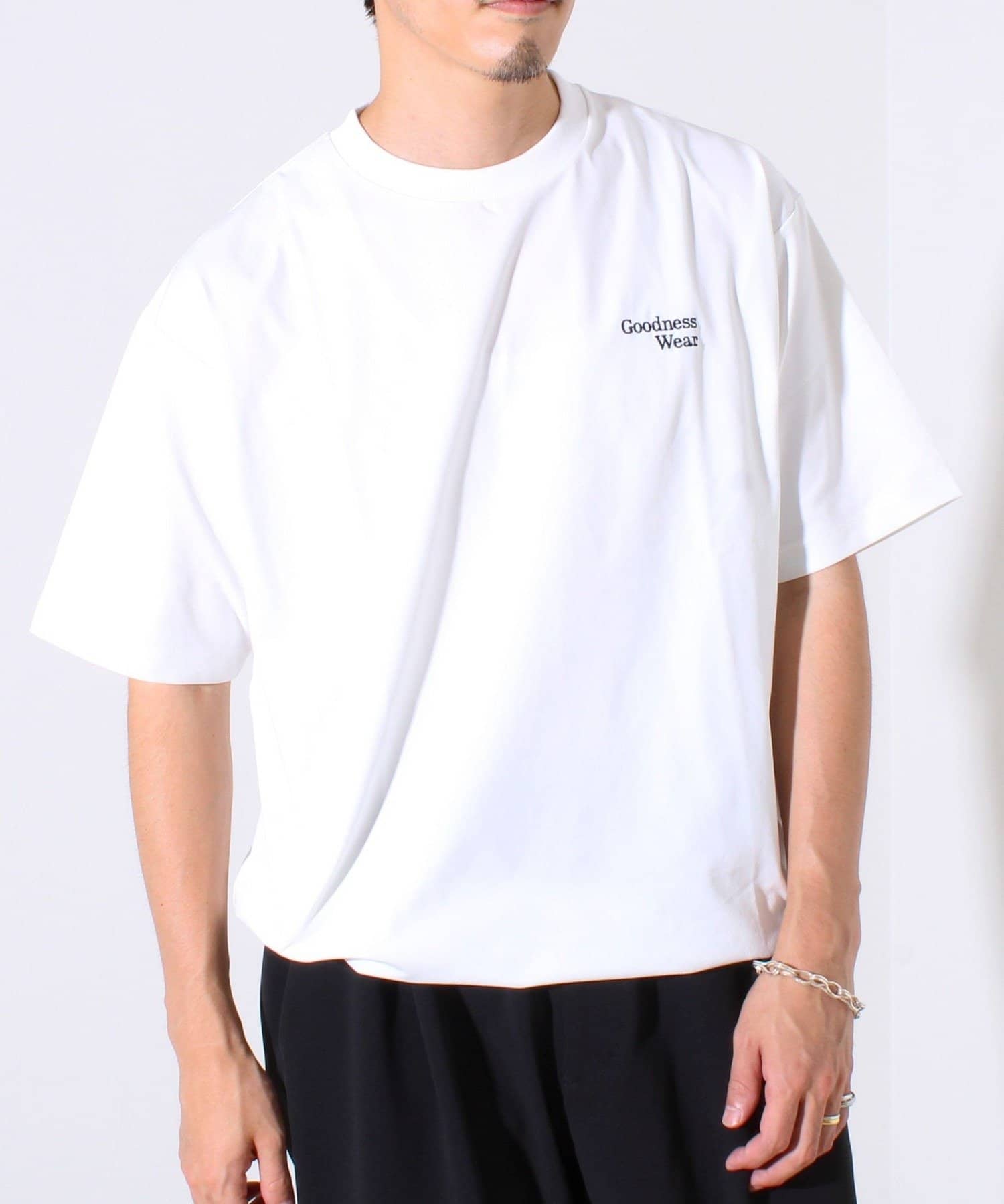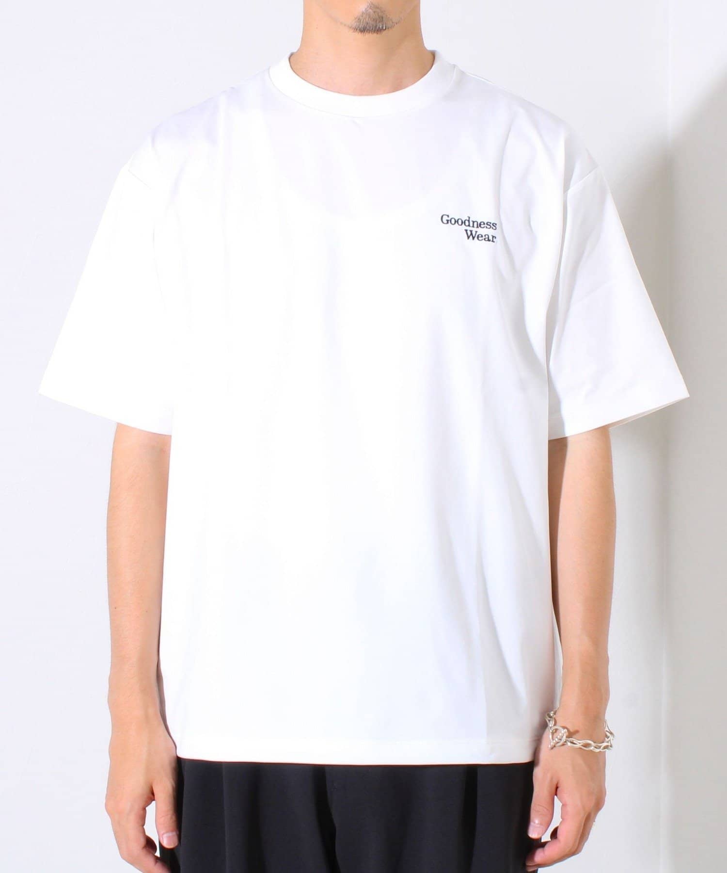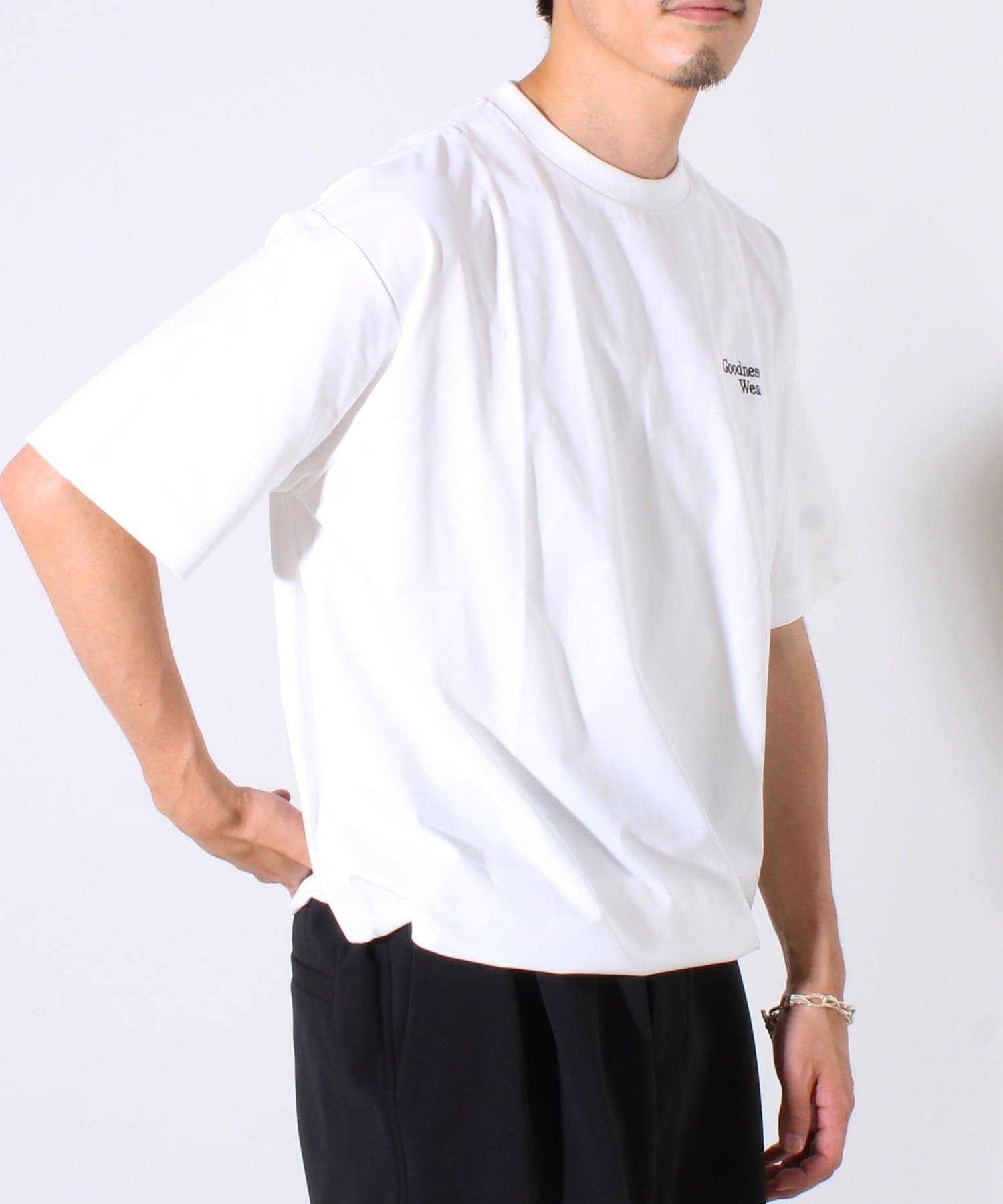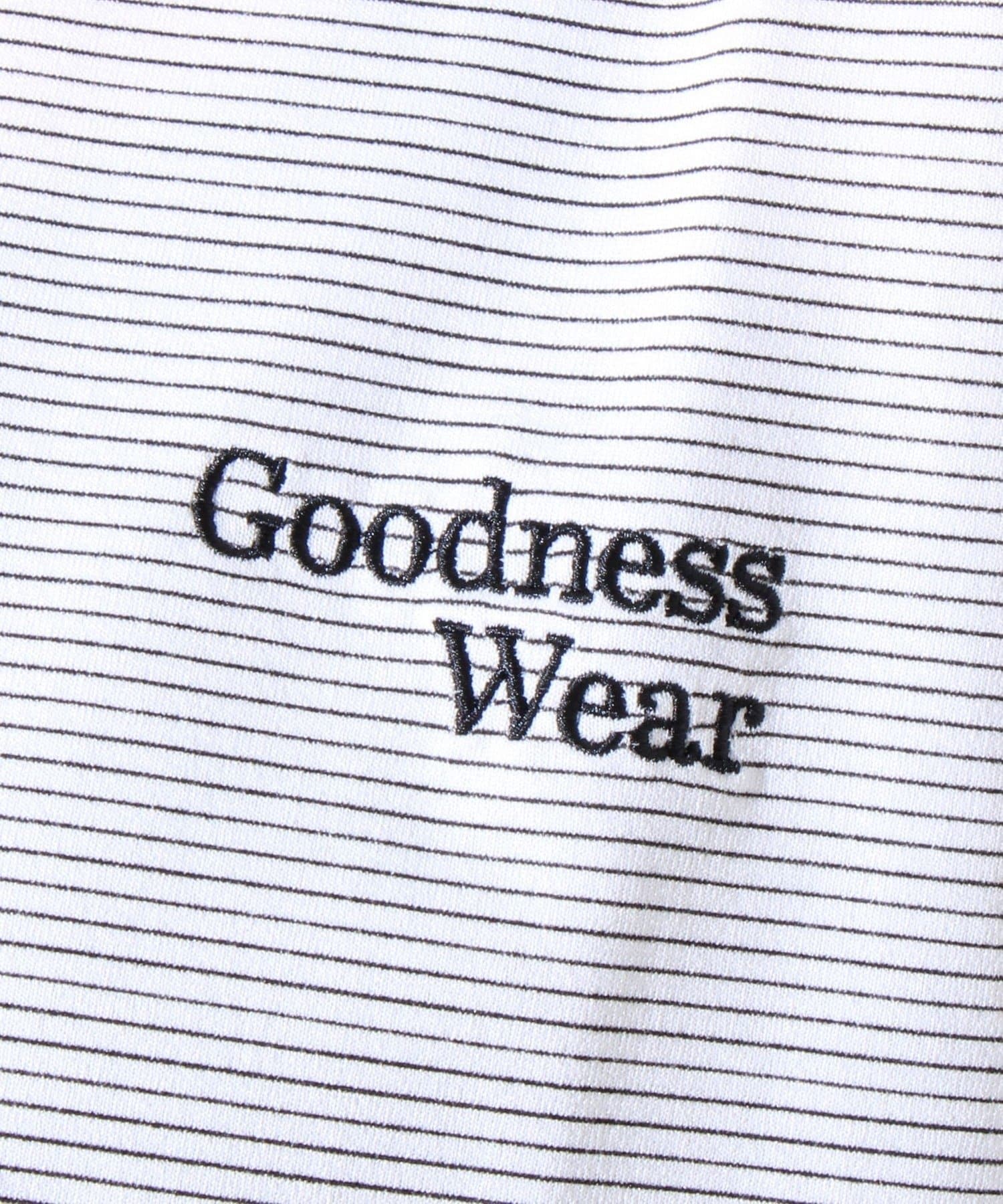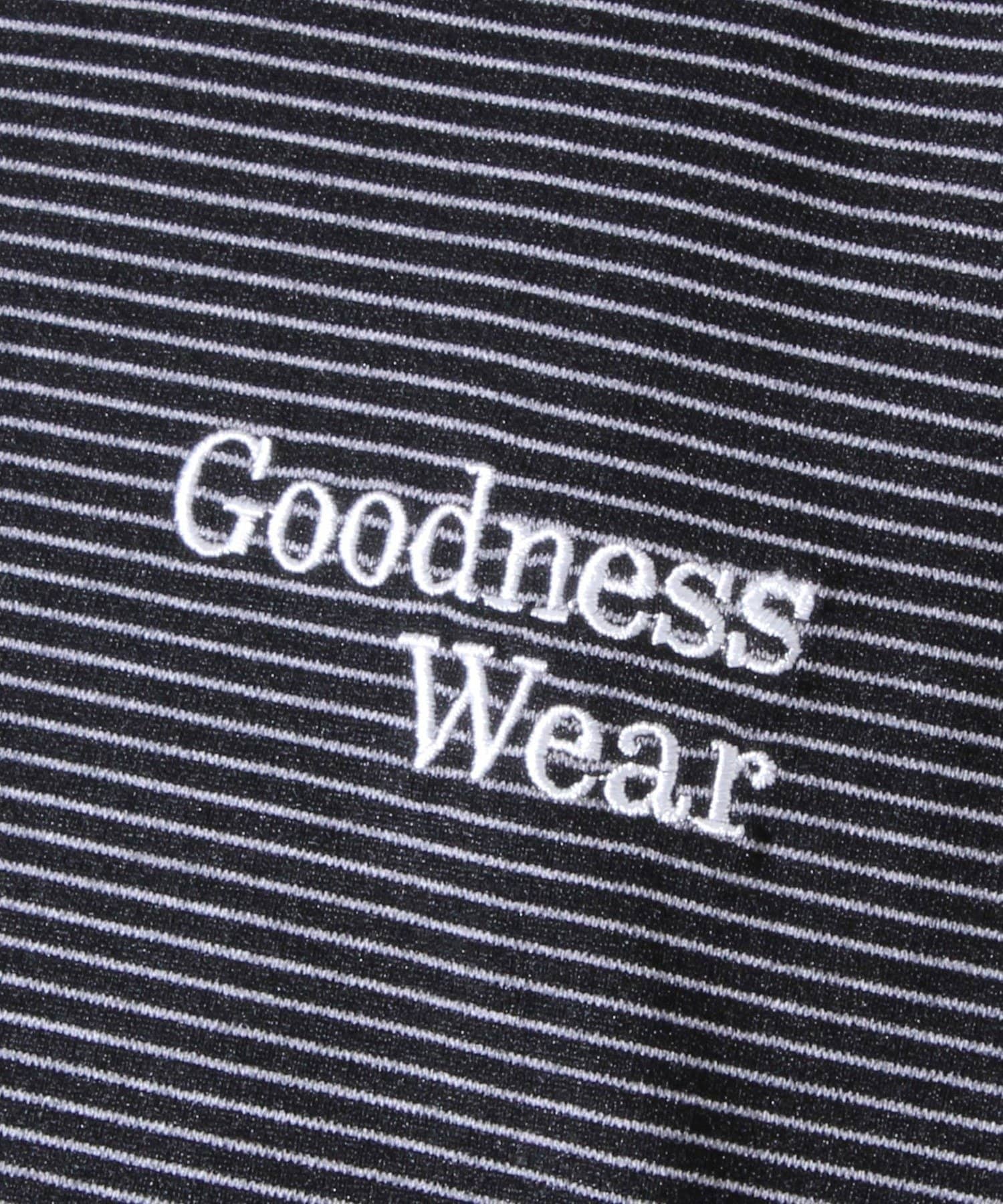 ・【デザイン性と実用性】胸元の“Goodness Wear”刺繍がワンポイントに。裾にはシルエット調整可能なスピンドル入り。