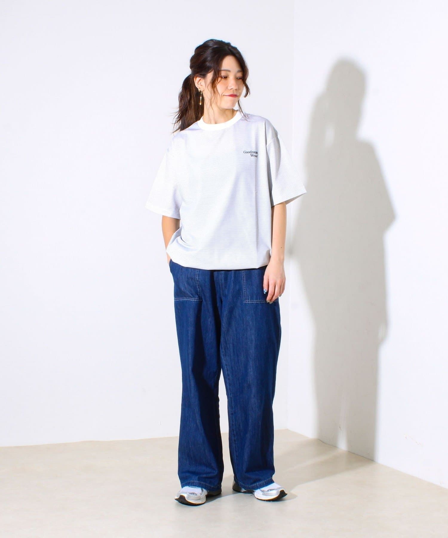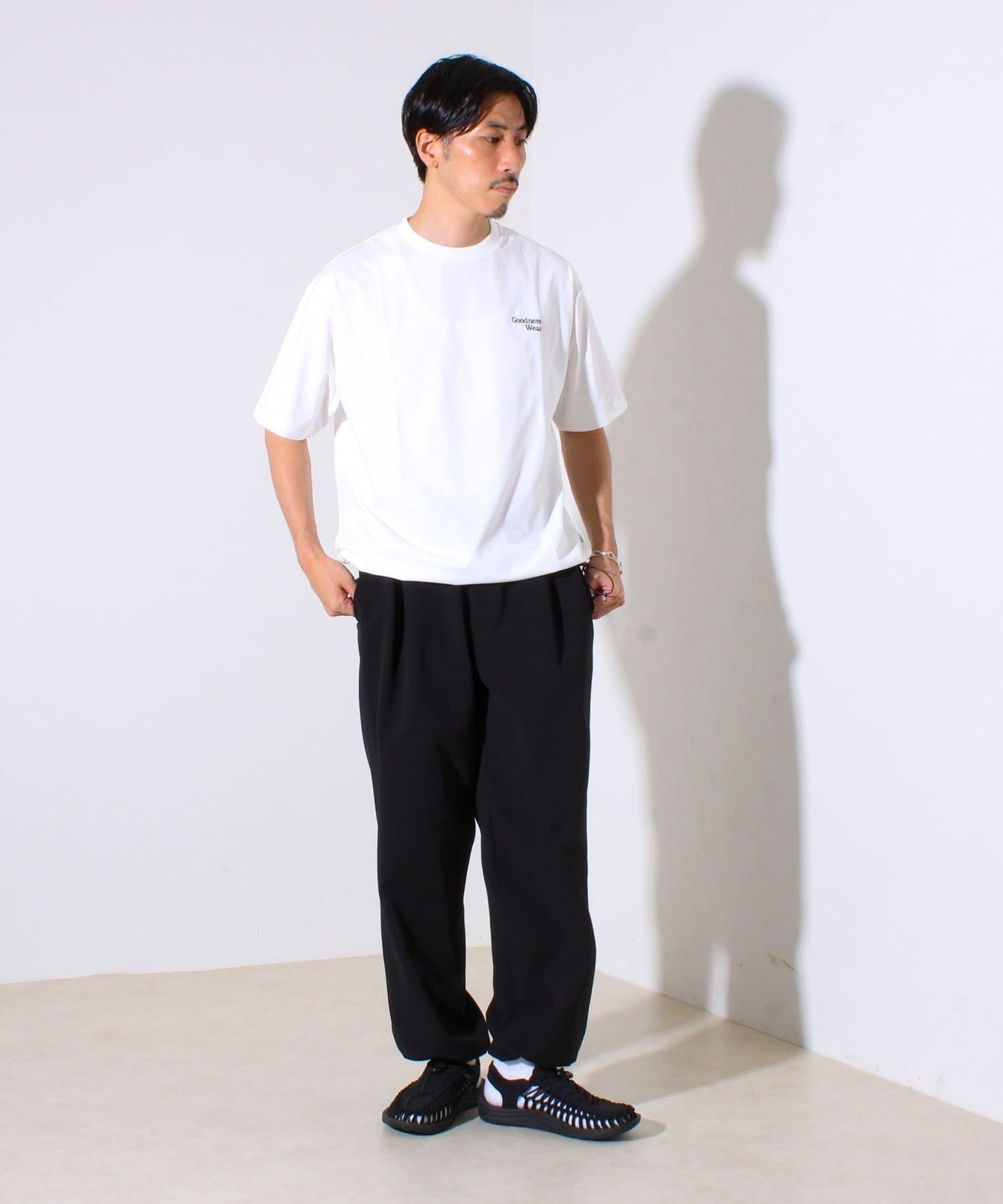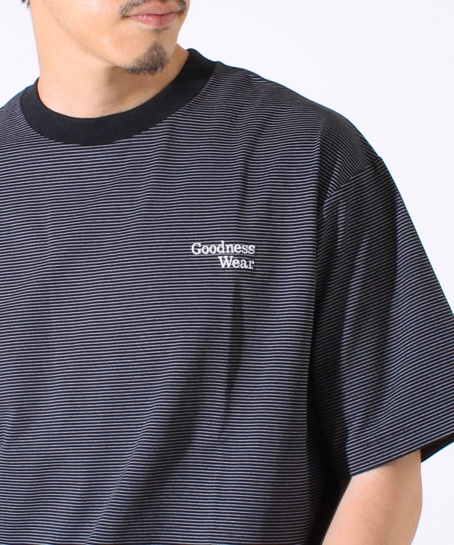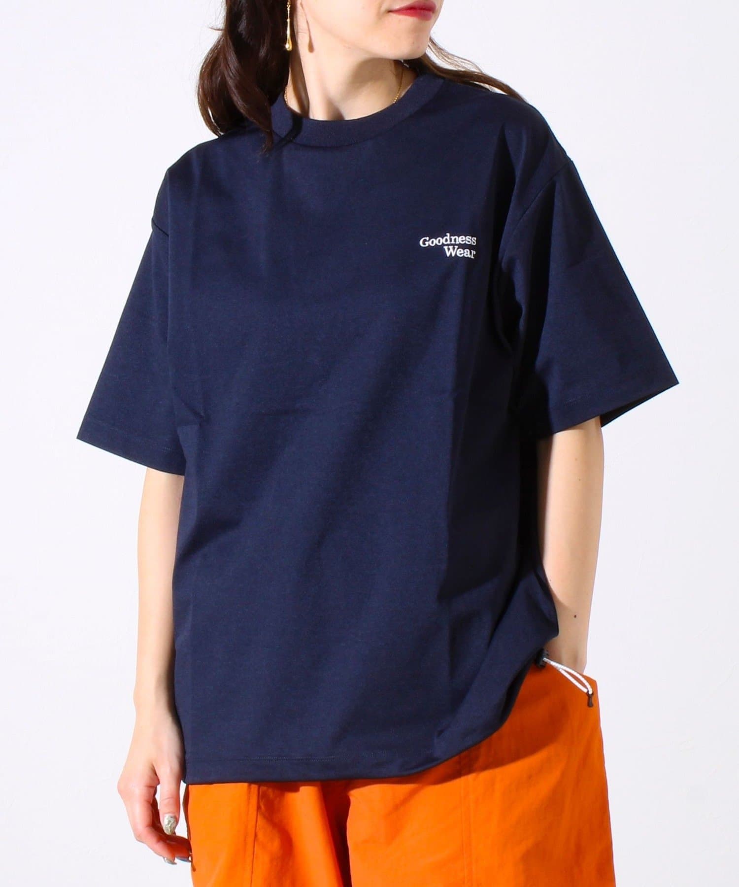 ・【デザイン性と実用性】胸元の“Goodness Wear”刺繍がワンポイントに。裾にはシルエット調整可能なスピンドル入り。