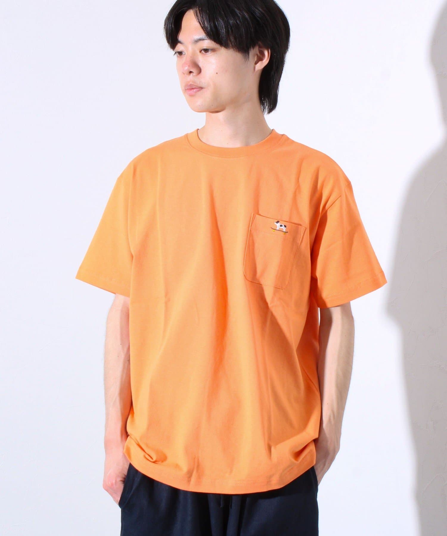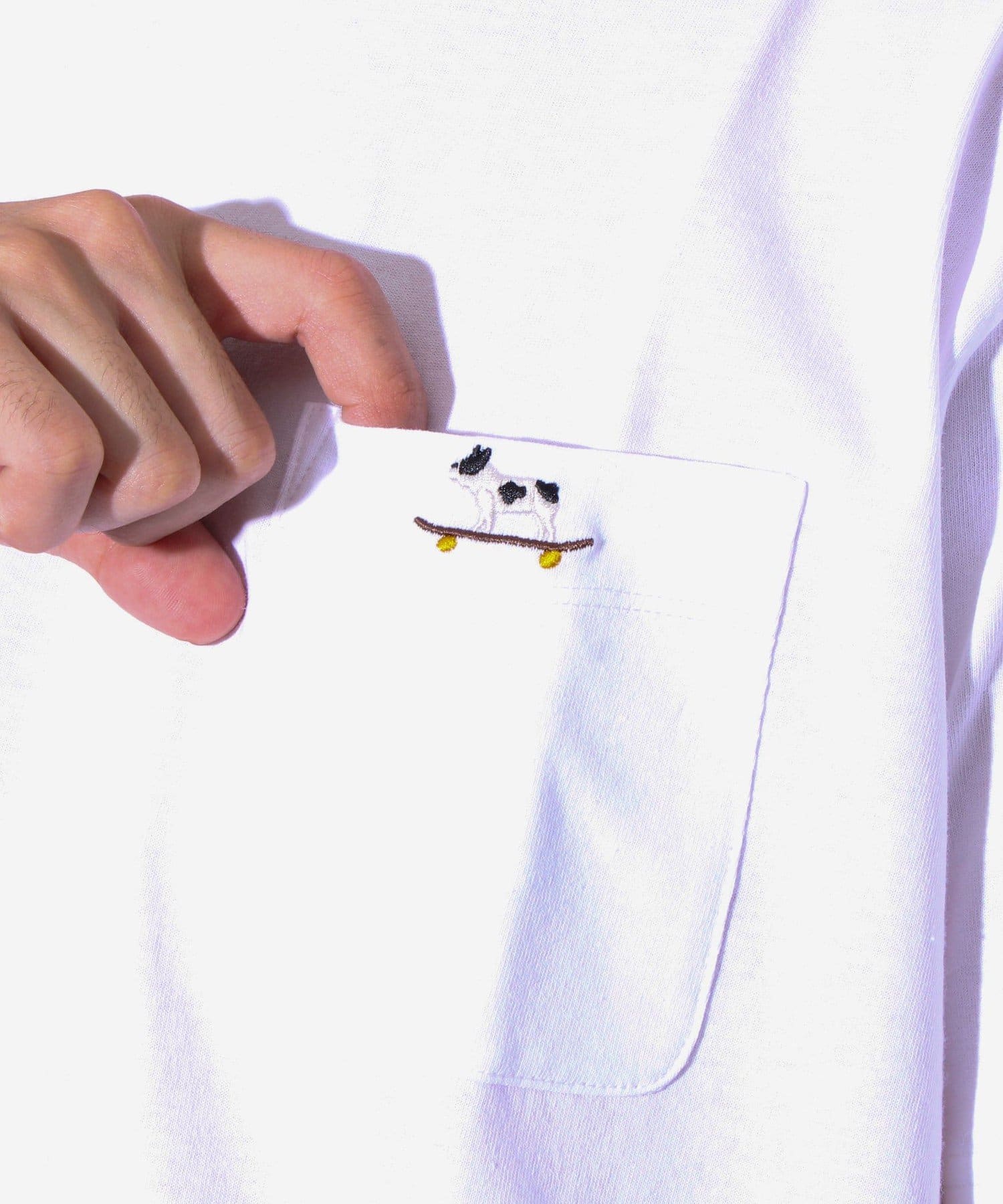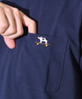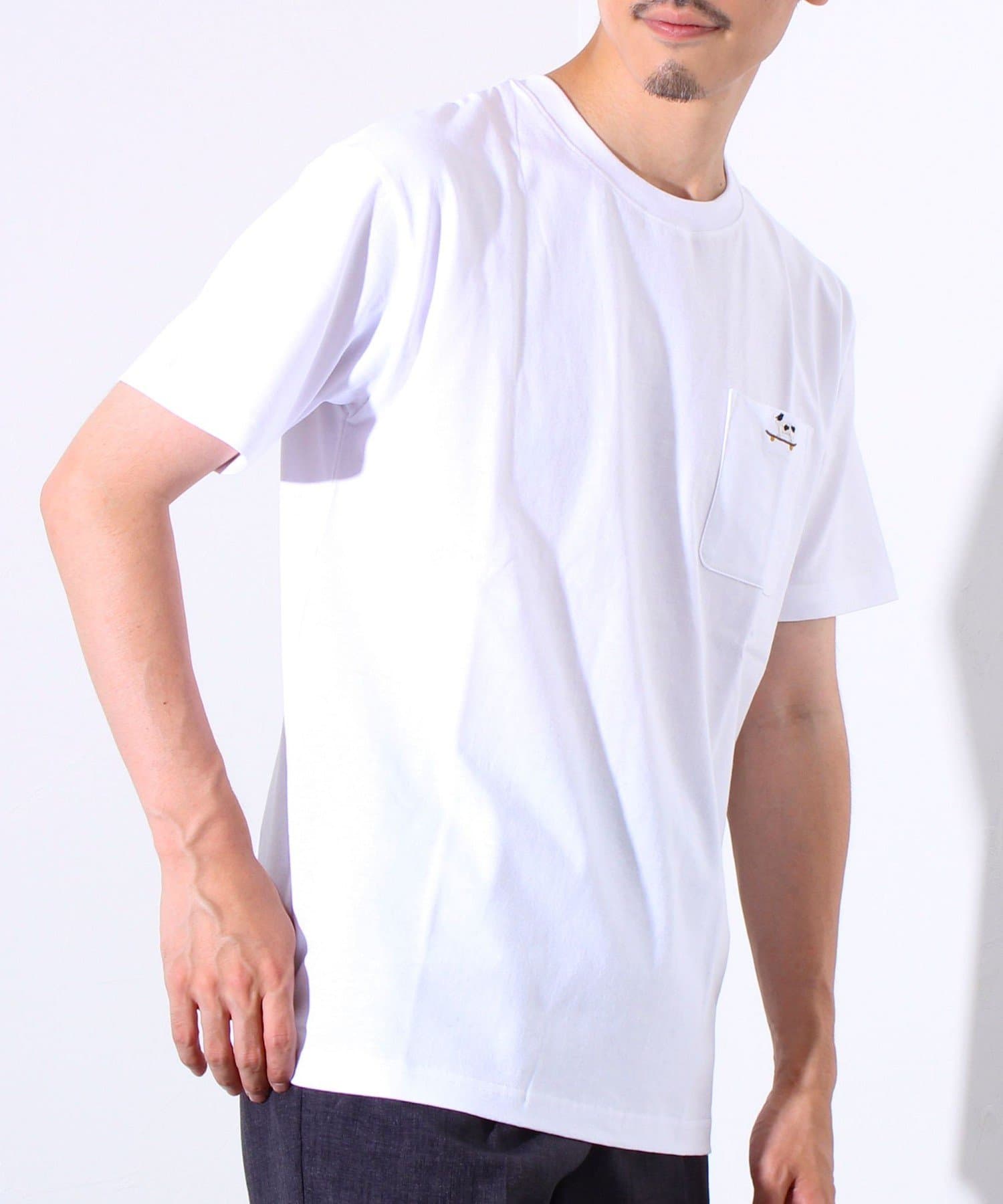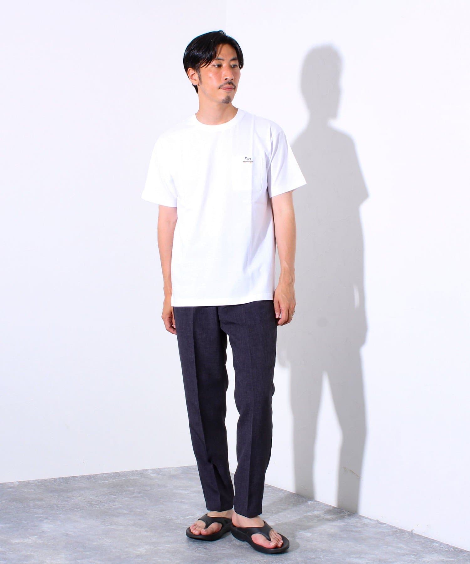 ・シンプルなポケットTシャツに、さりげない“フレンチブルドッグ刺繍”がアクセント。