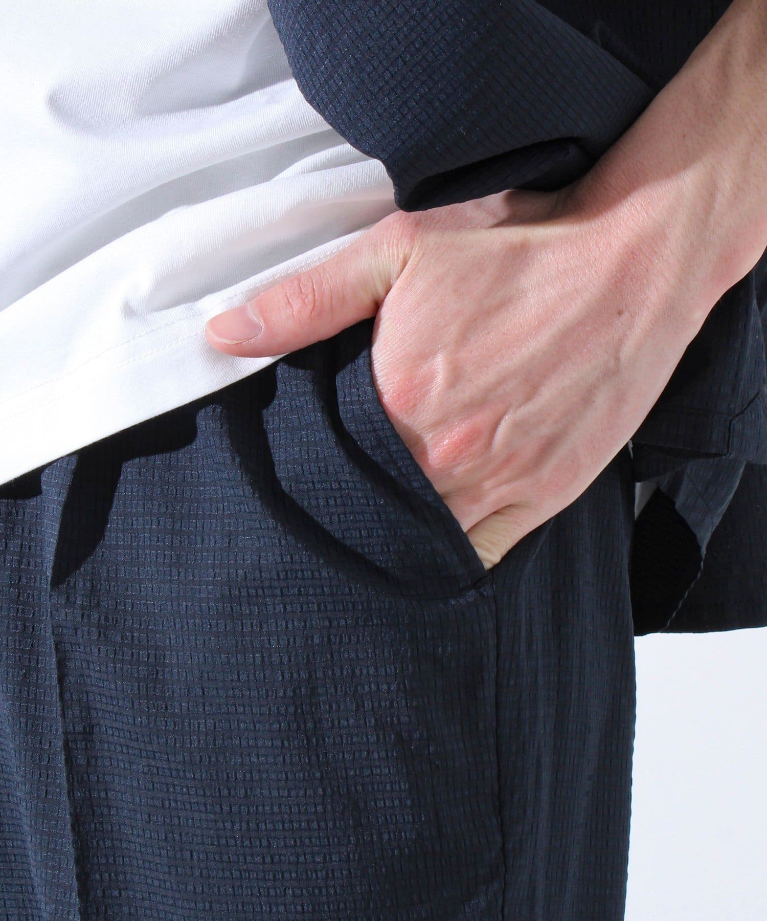 ※同素材のシャツ(品番:5-0092-3-51-008)とのセットアップでの着用も可能です。