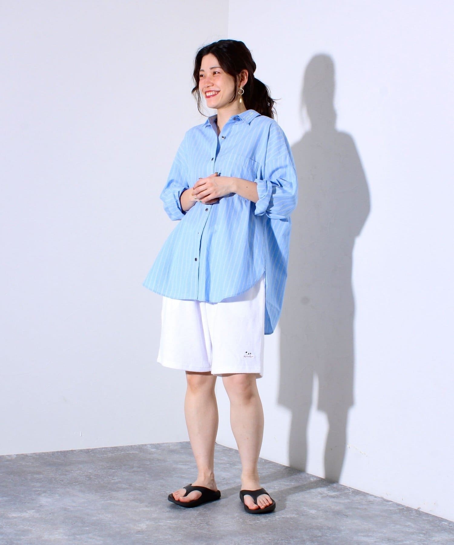 ・無地タイプはロゴTやオーバーサイズシャツと合わせてシティリゾート風に