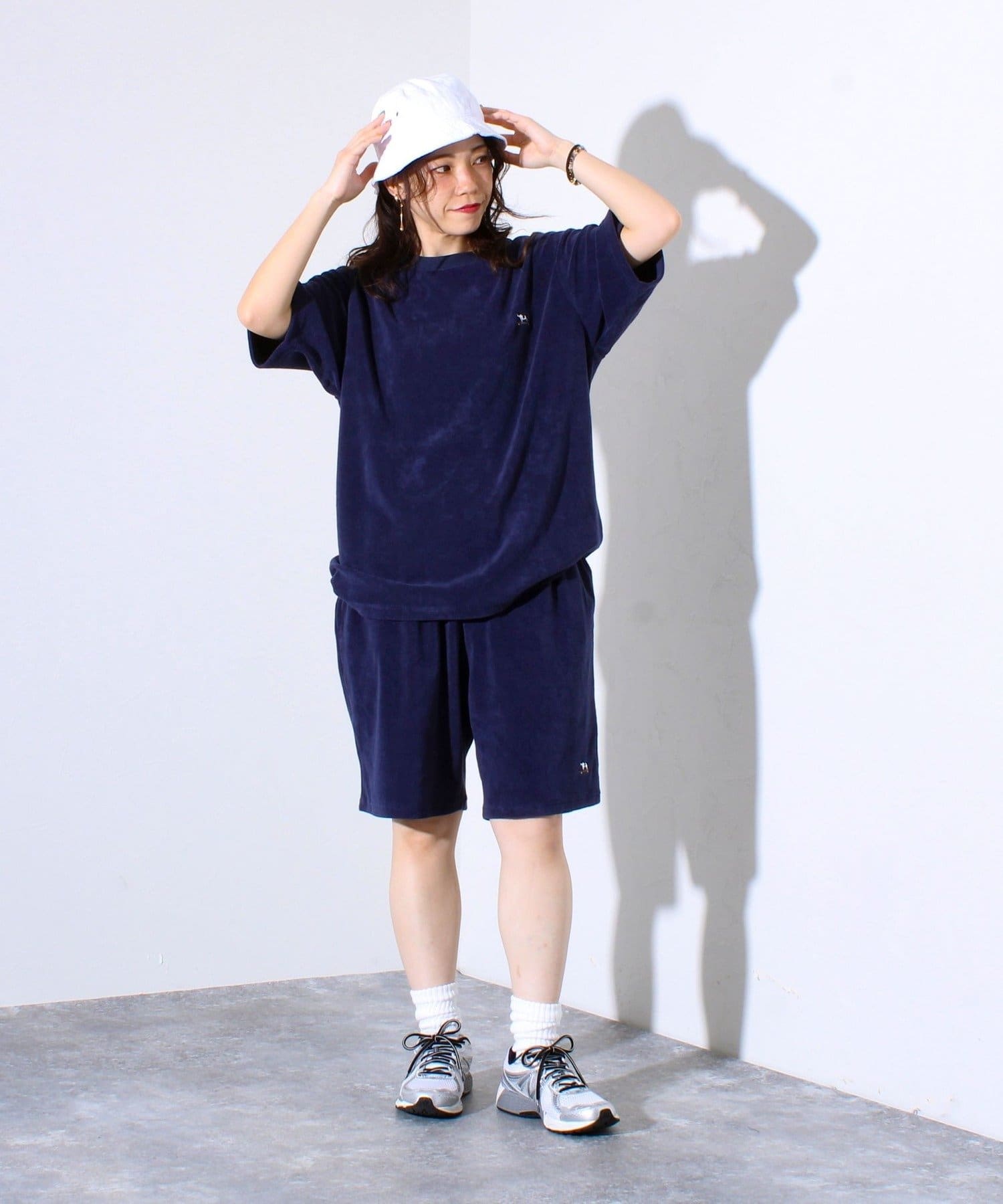 #パイルショーツ #夏コーデ #フレブル刺繍 #セットアップOK #ワンマイルウェア #リラックススタイル #スケボー犬 #ルームウエア