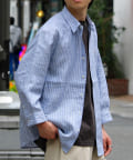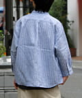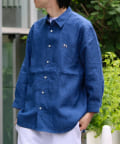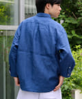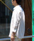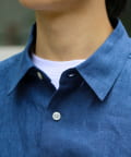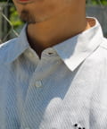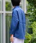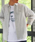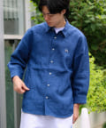 【新色追加】【GLOSTER】フレンチブルドッグ刺繍 リネン 7分袖シャツ