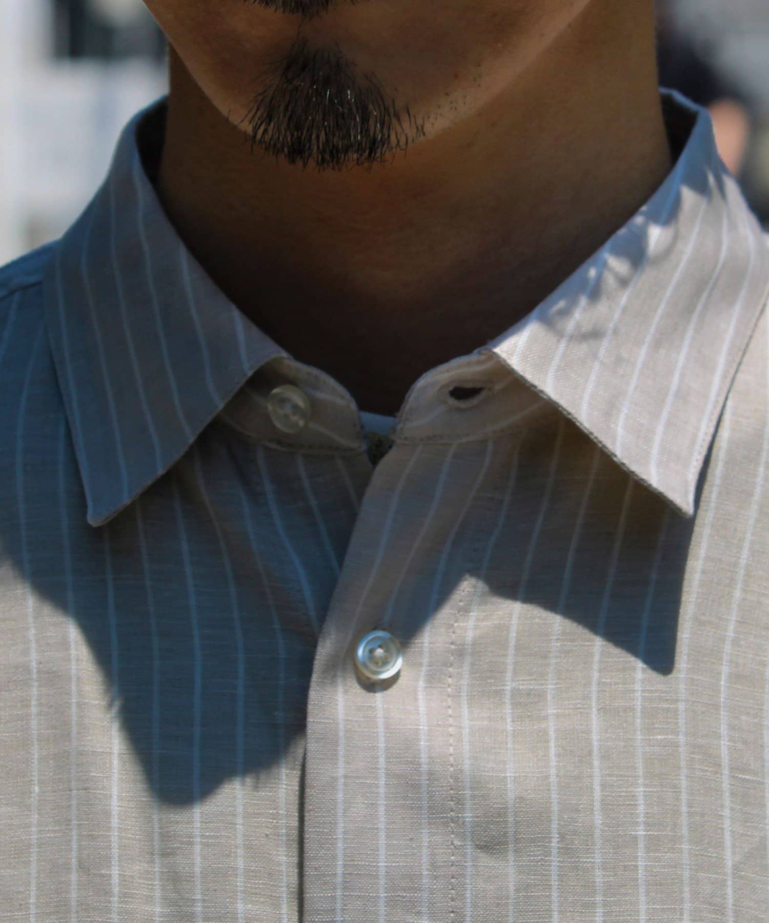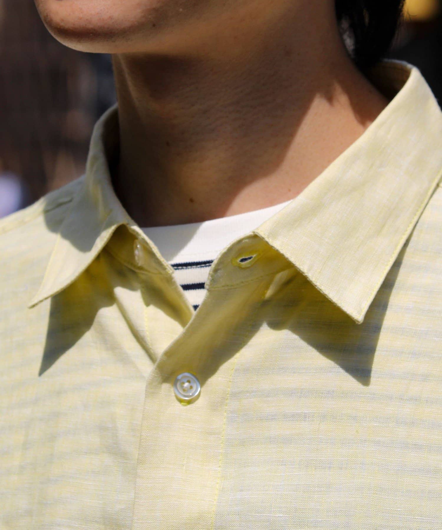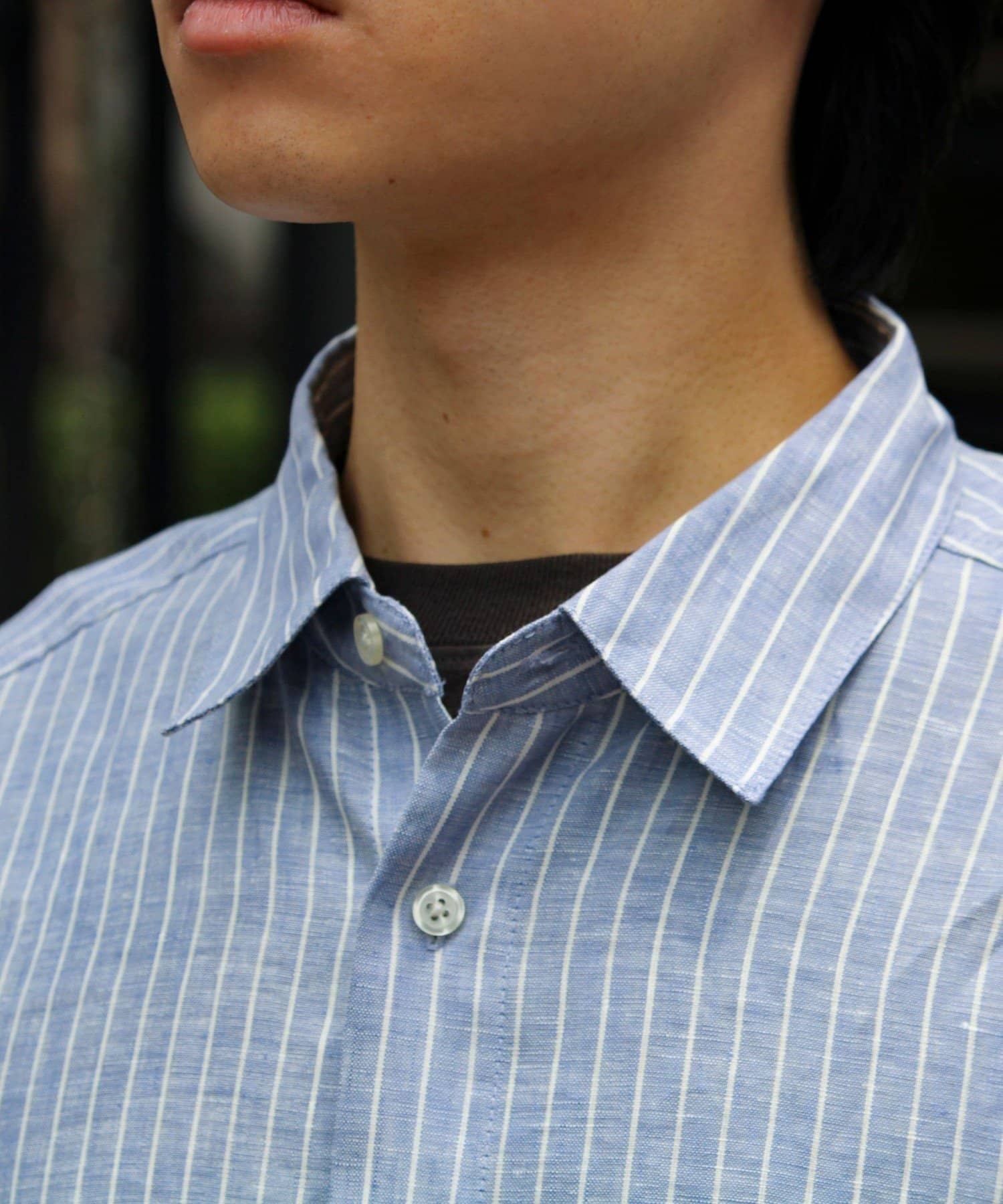 夏に活躍間違いなしのリネンを使用したレギュラーカラー7分袖シャツ (無地/ストライプ)が再登場です。