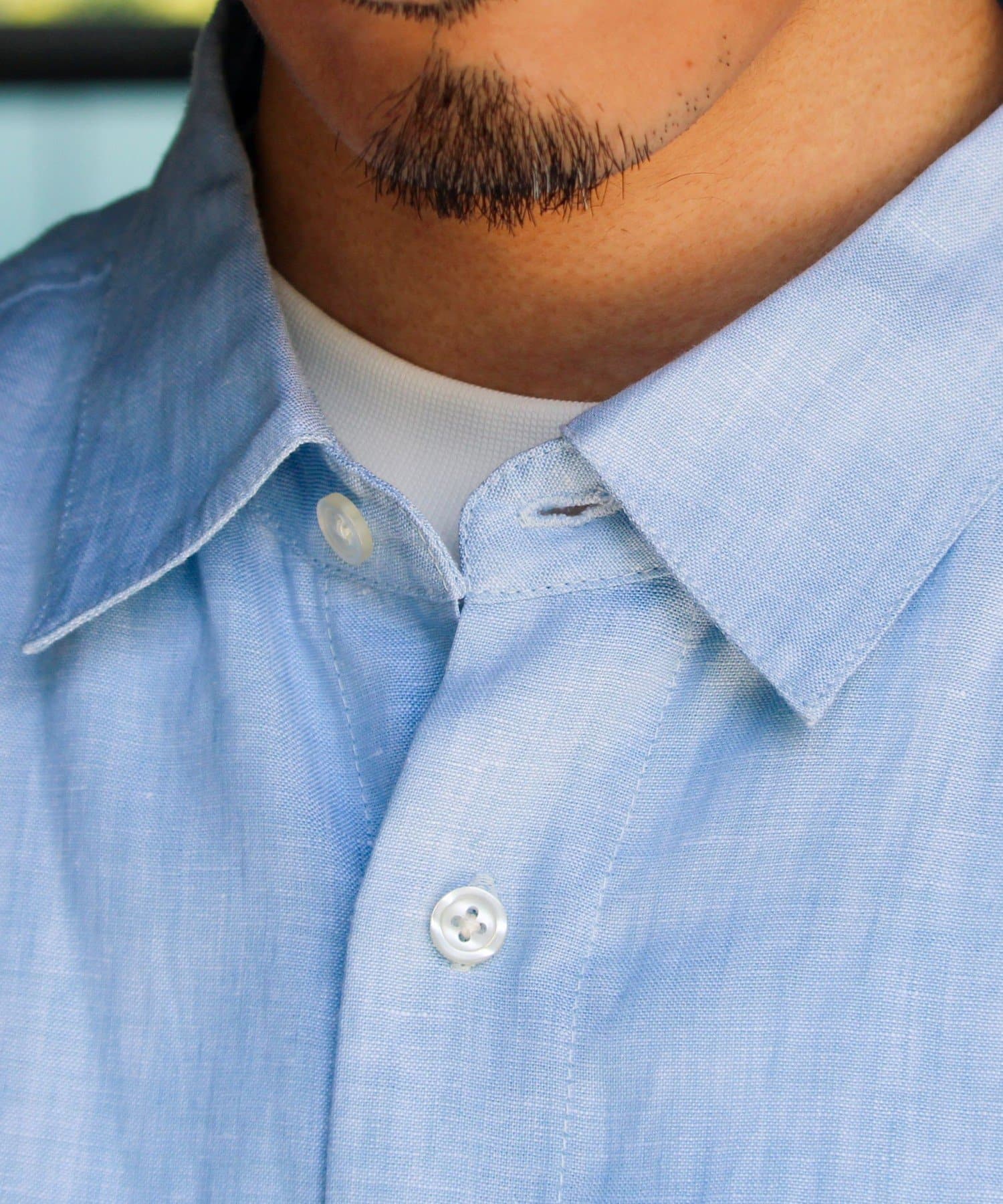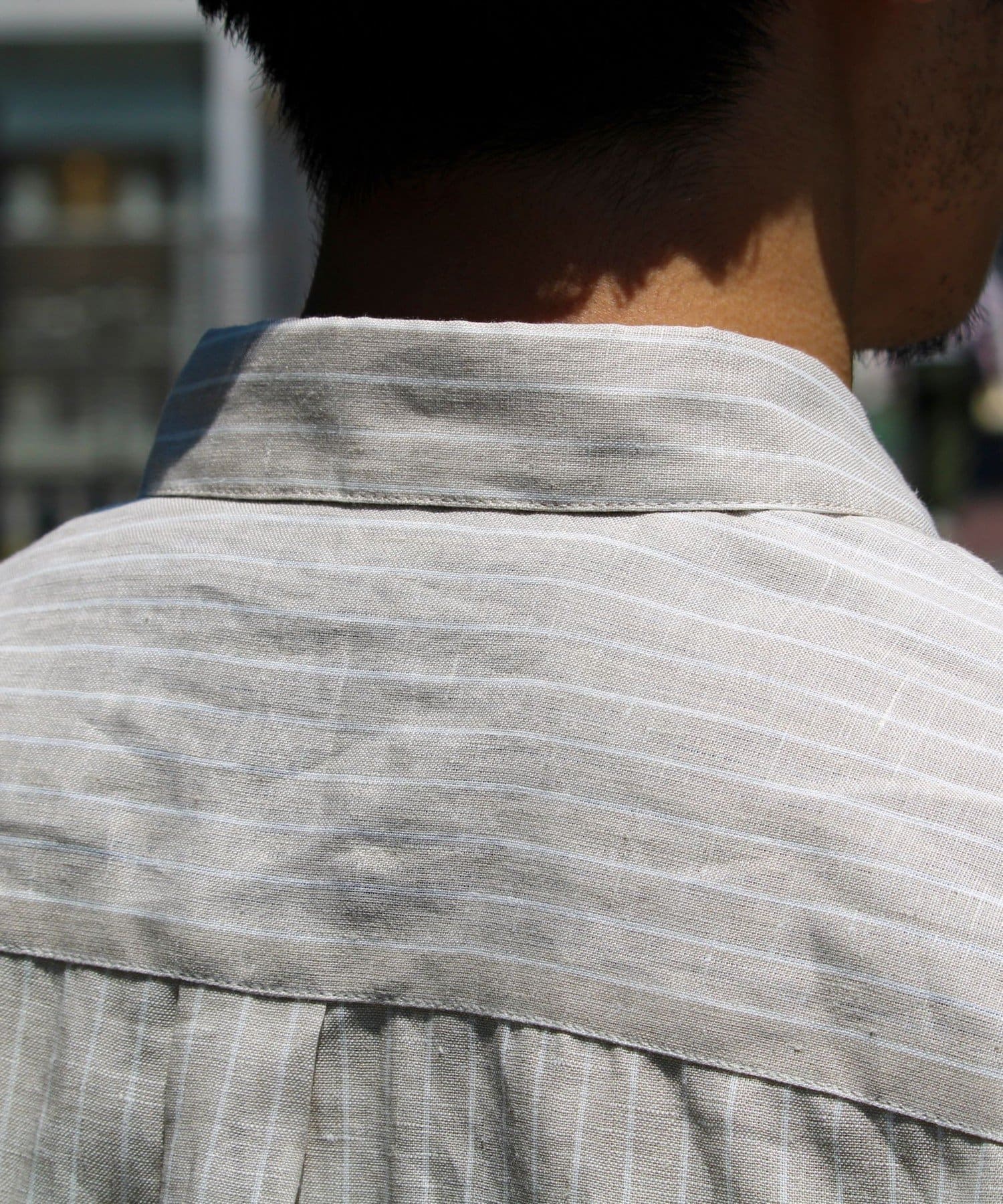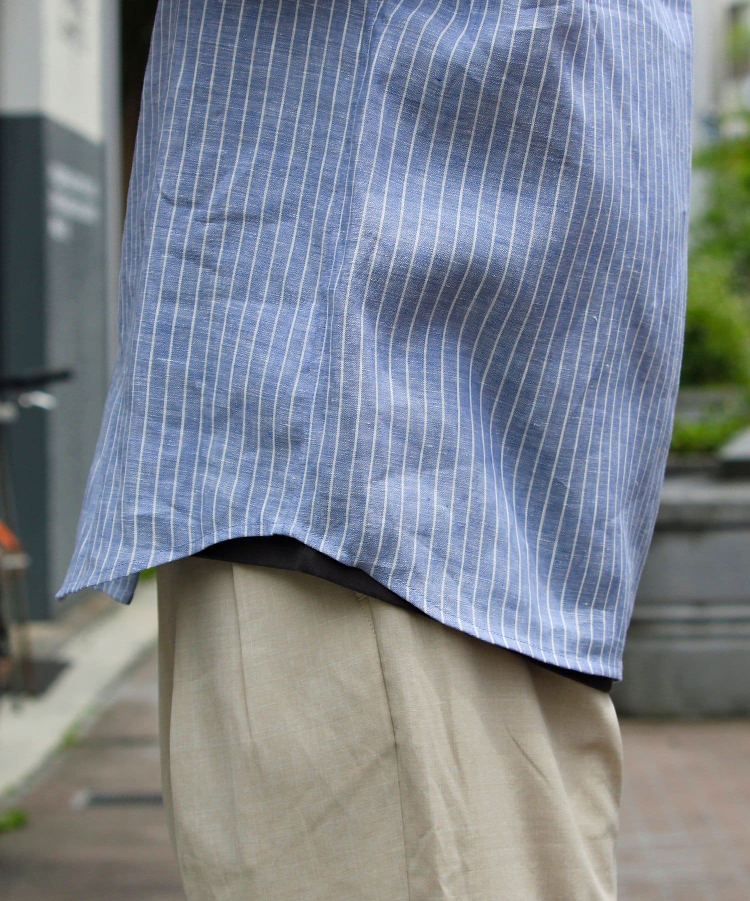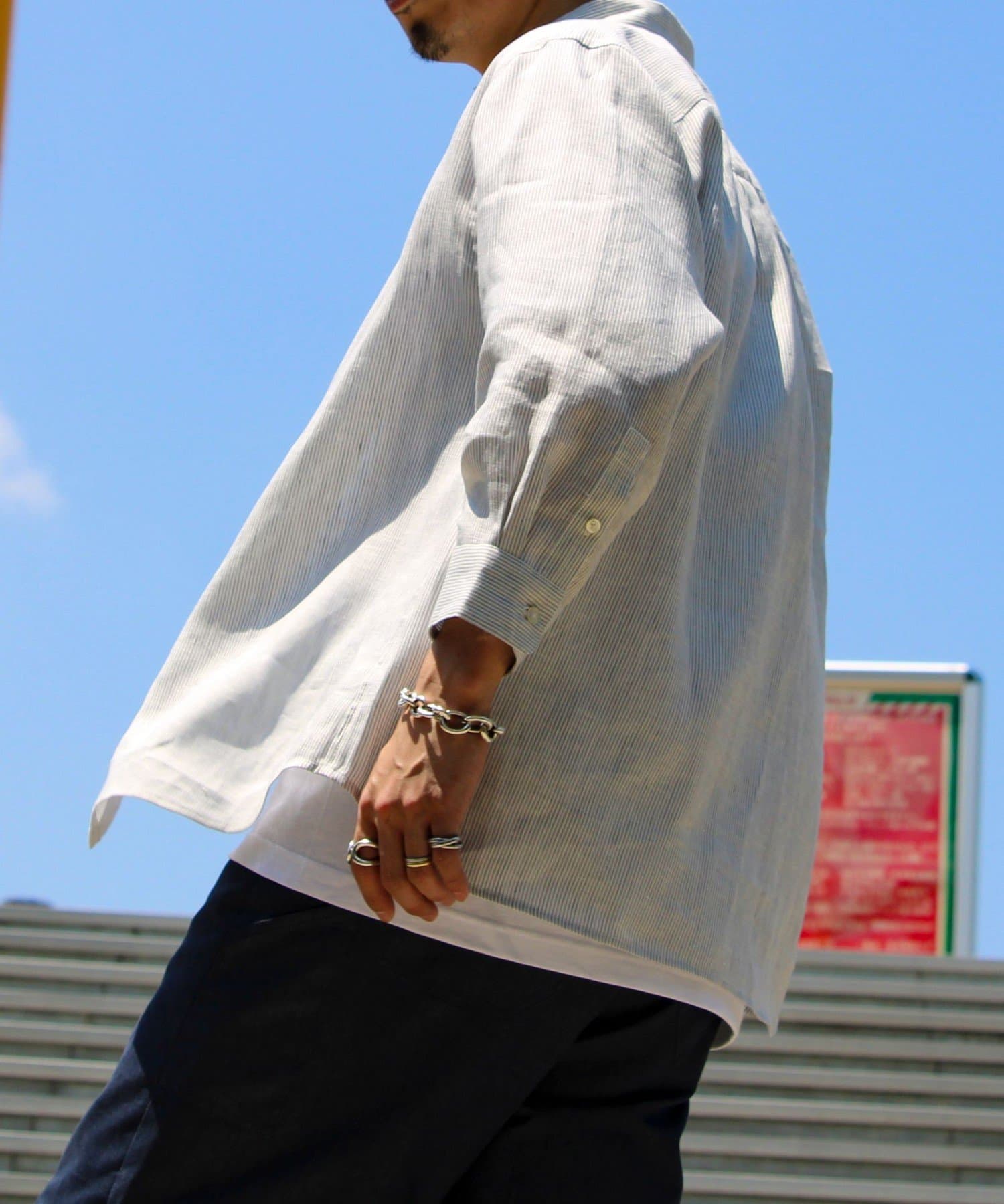 夏に活躍間違いなしのリネンを使用したレギュラーカラー7分袖シャツ (無地/ストライプ)が再登場です。