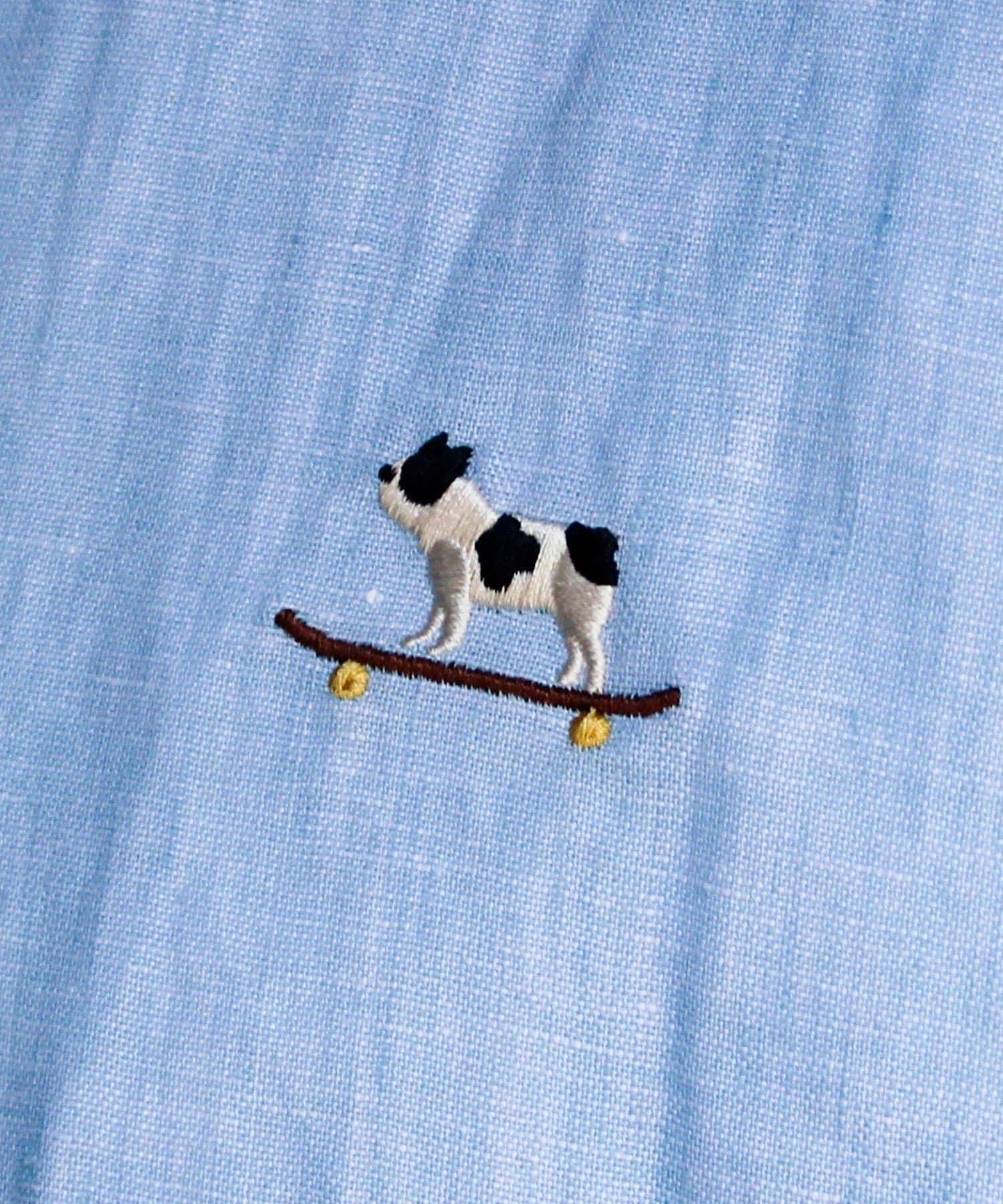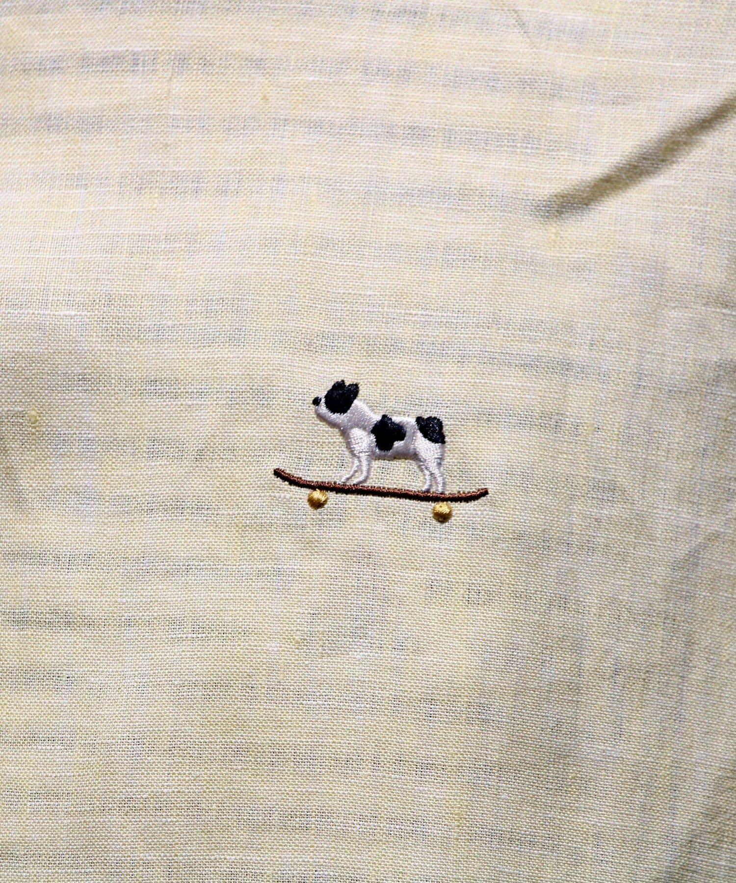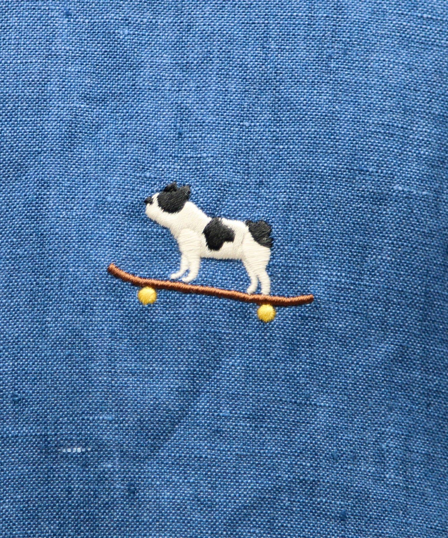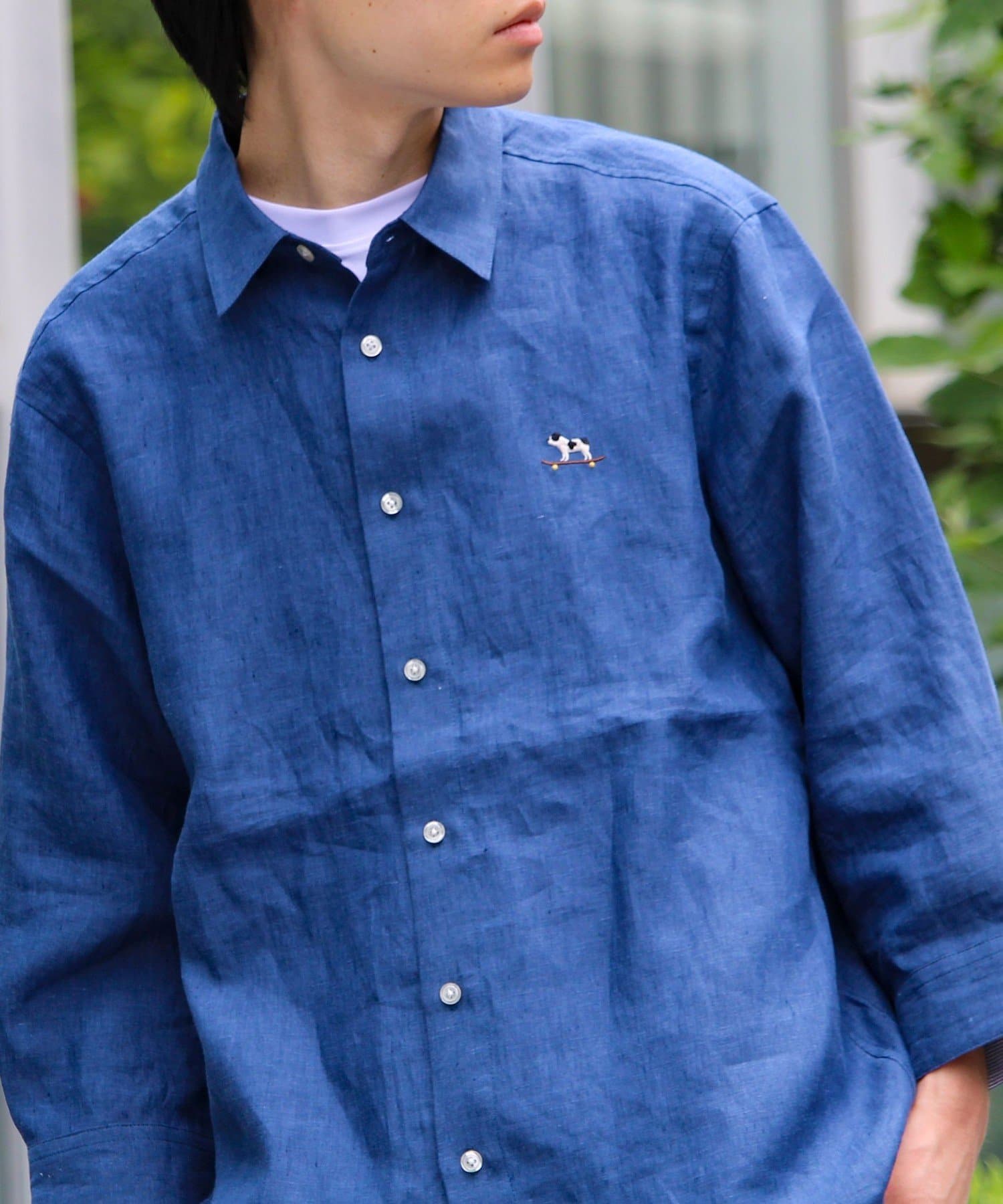 【新色追加】【GLOSTER】フレンチブルドッグ刺繍 リネン 7分袖シャツ