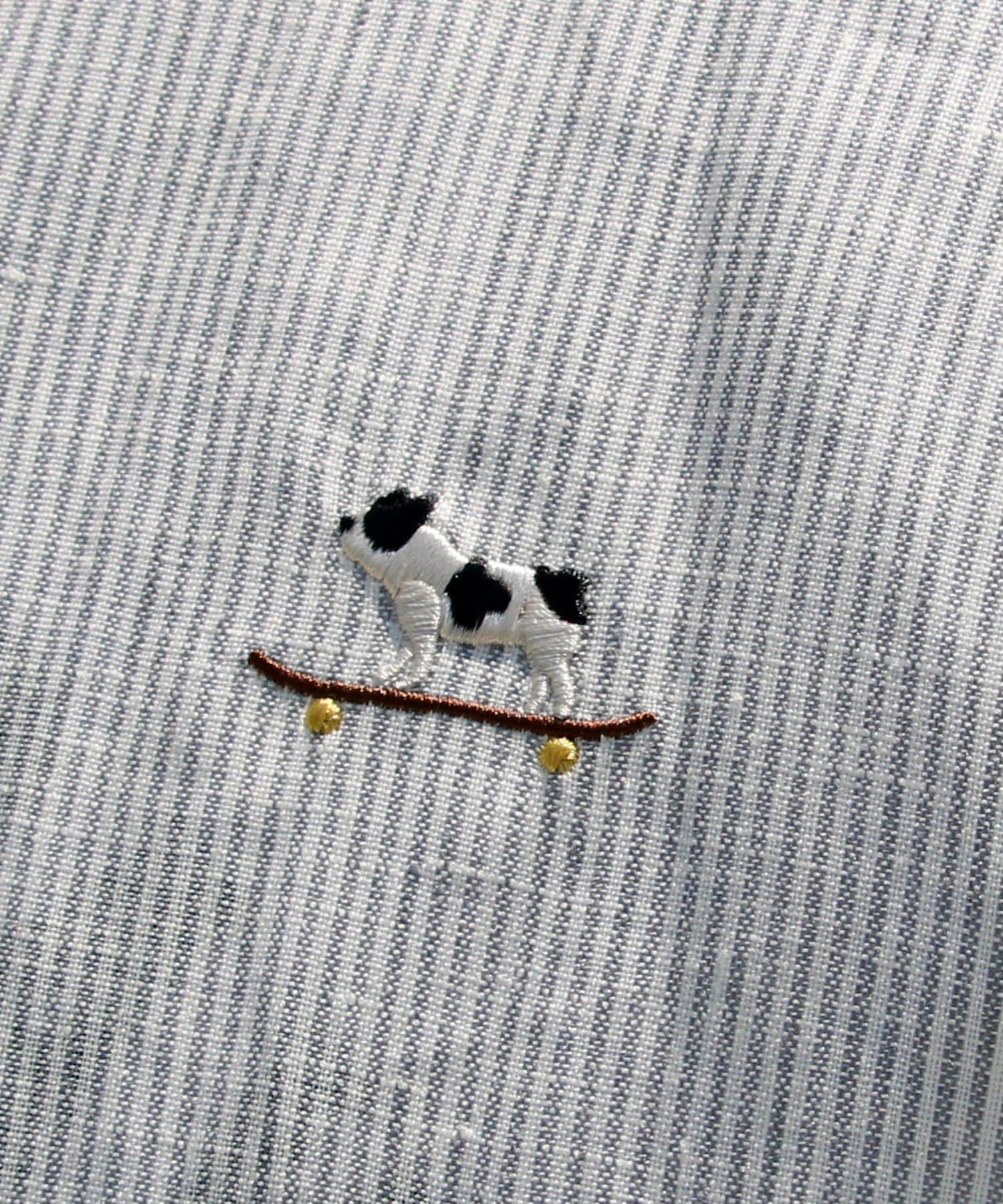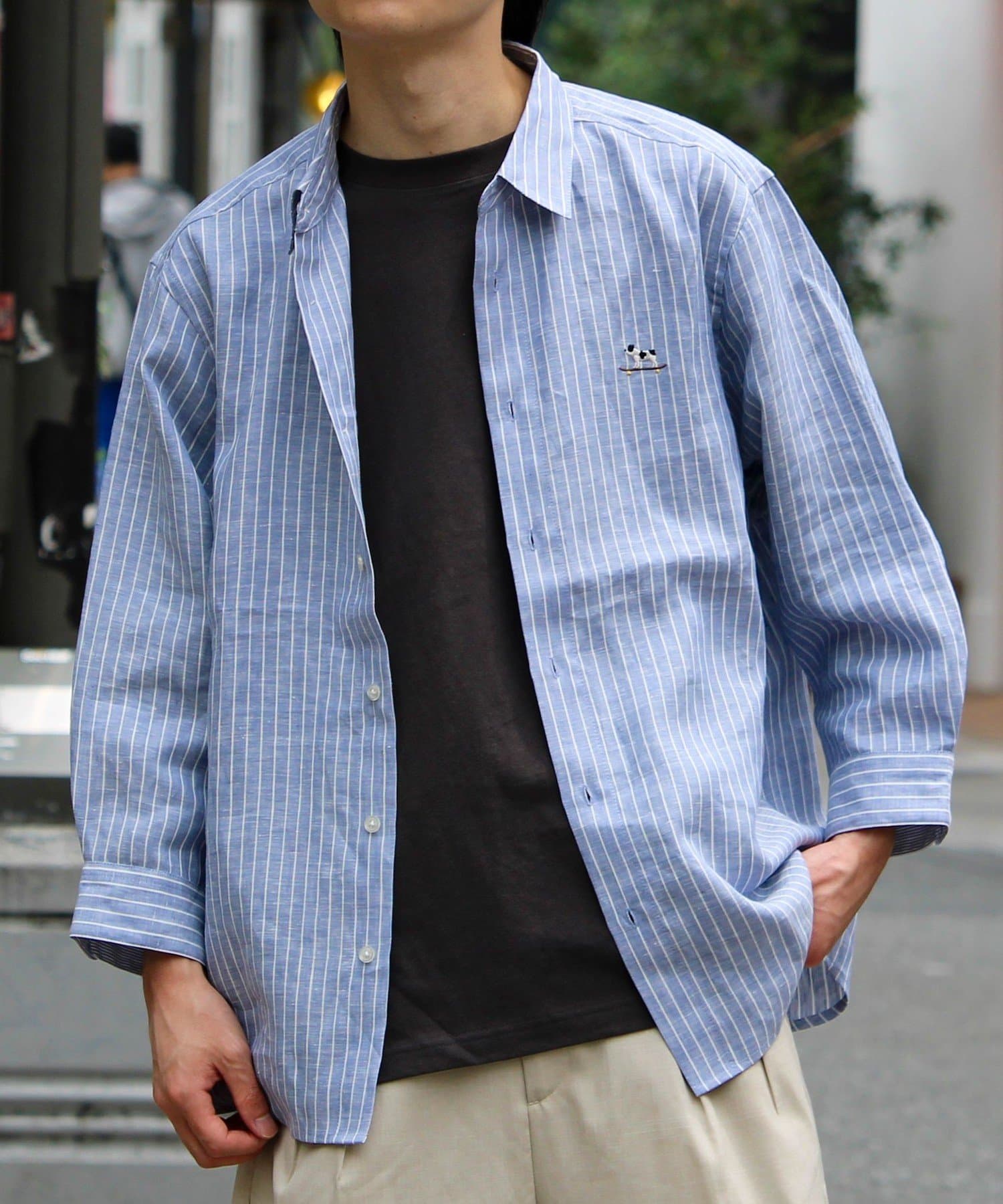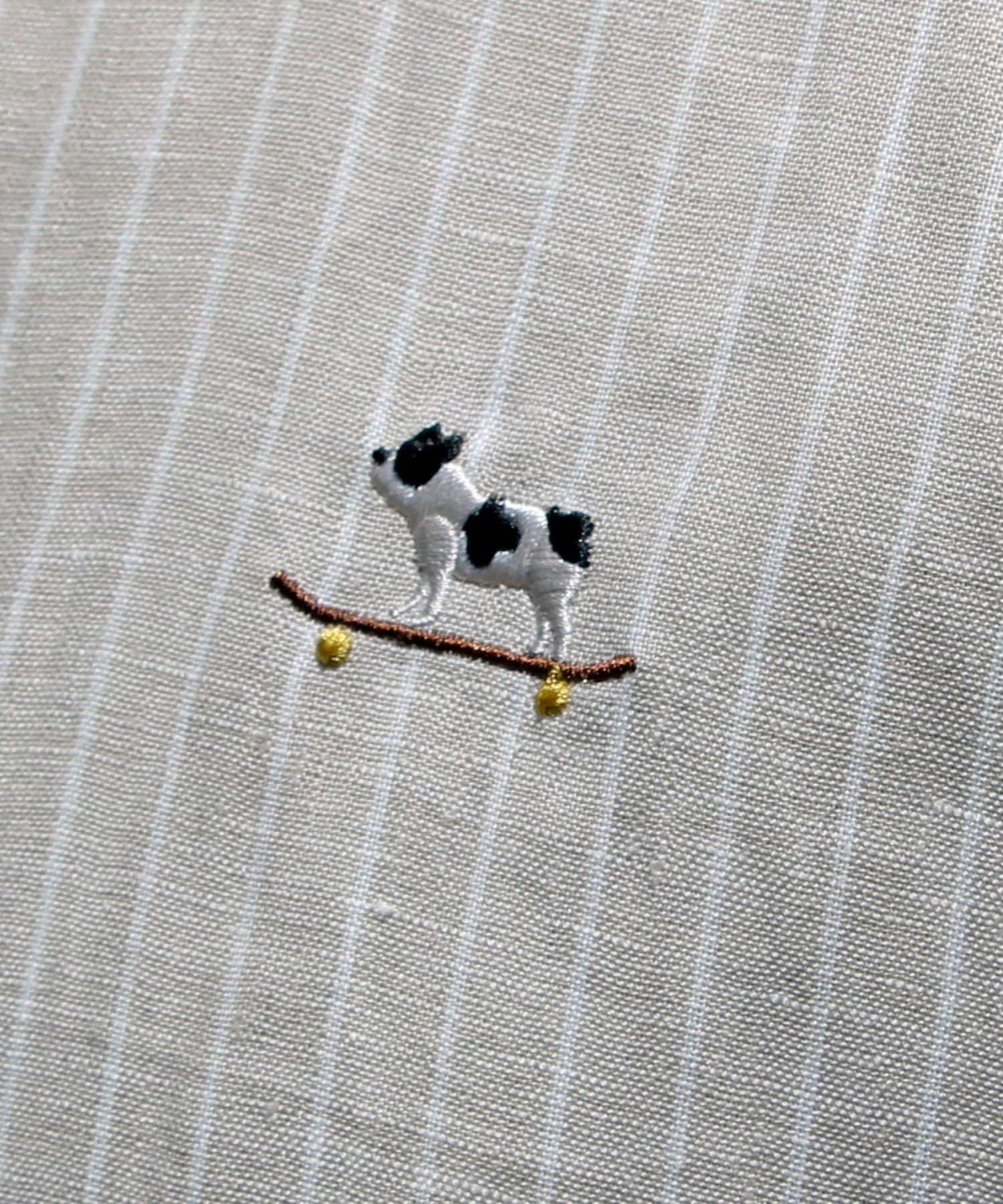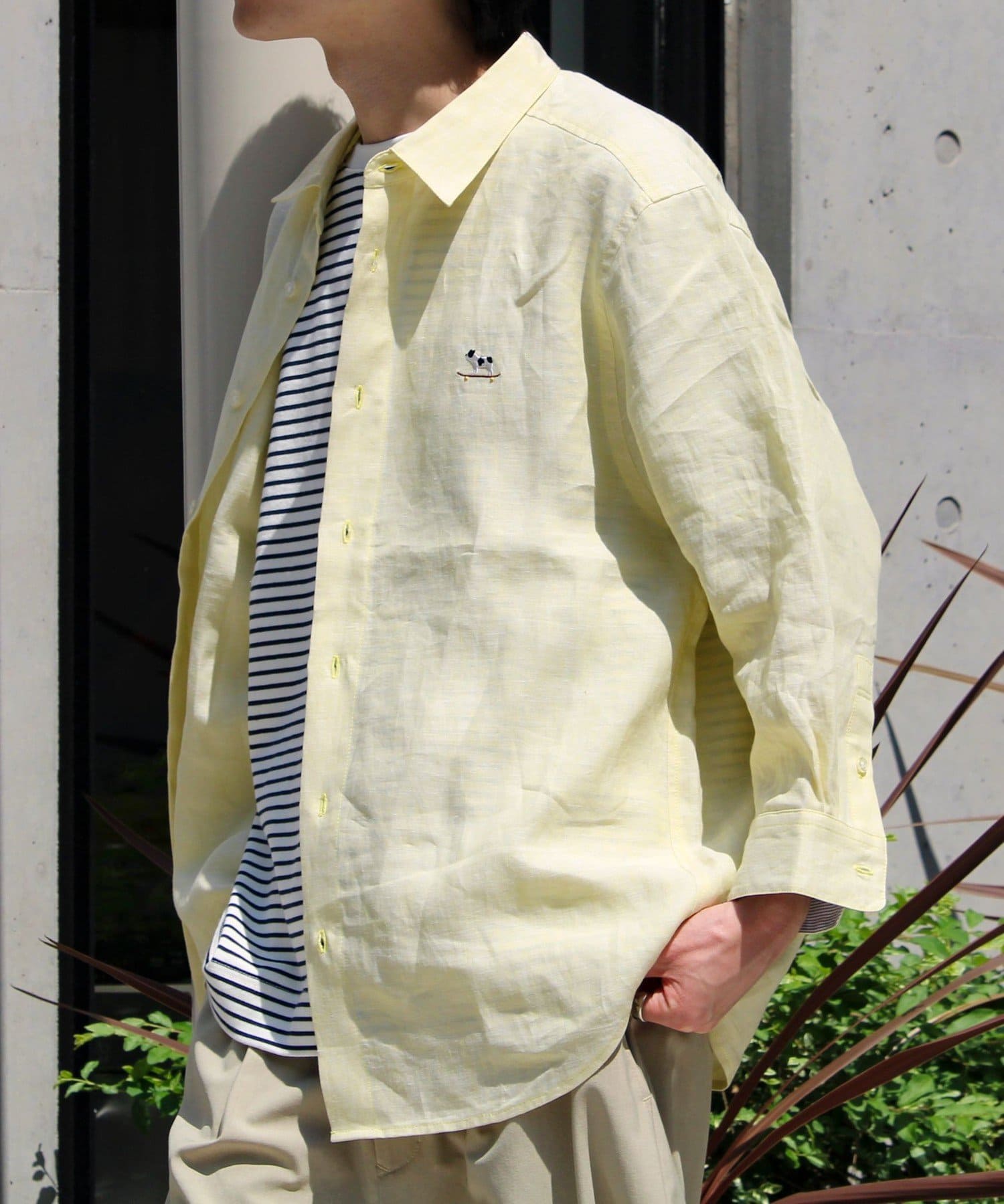 【新色追加】【GLOSTER】フレンチブルドッグ刺繍 リネン 7分袖シャツ