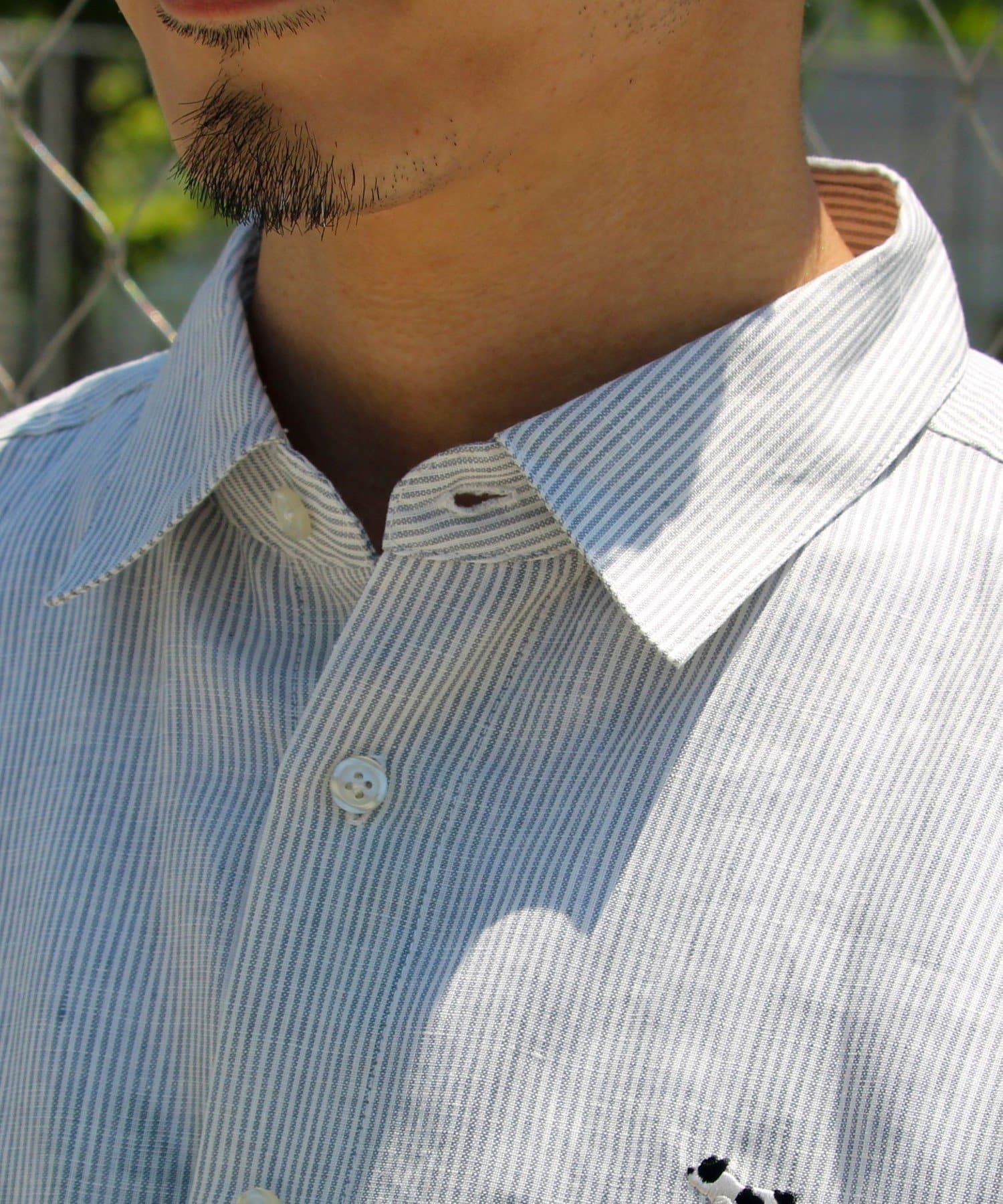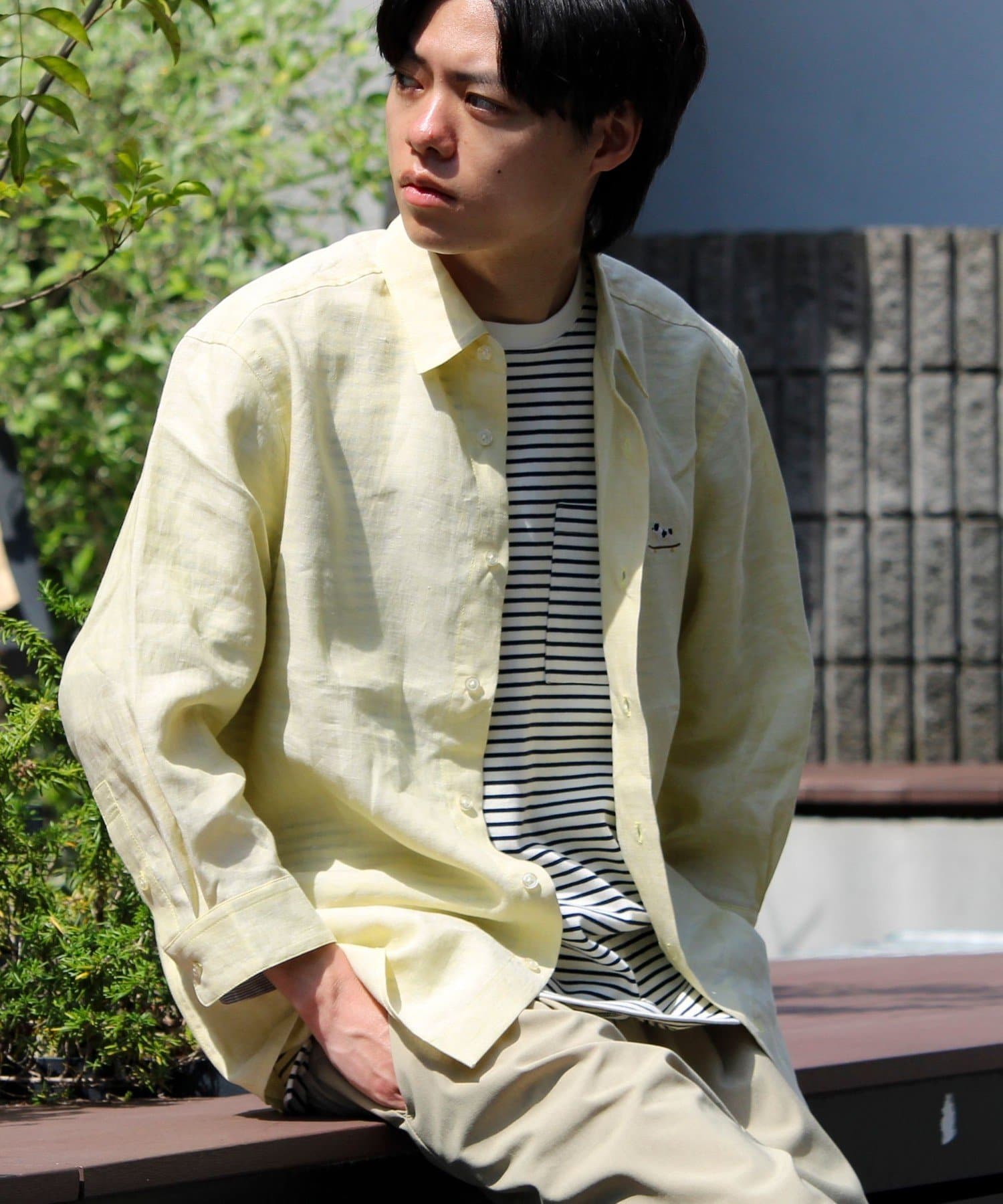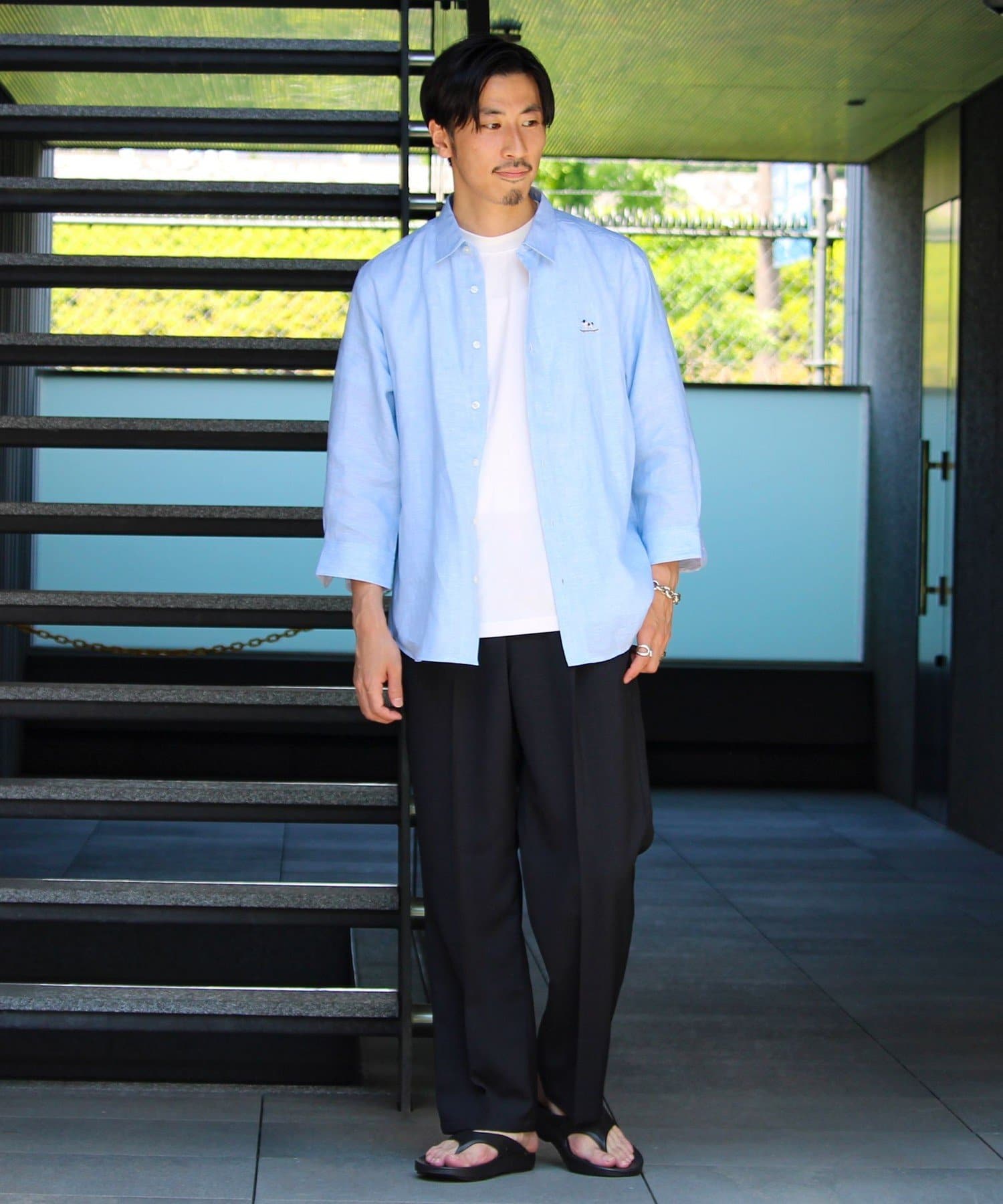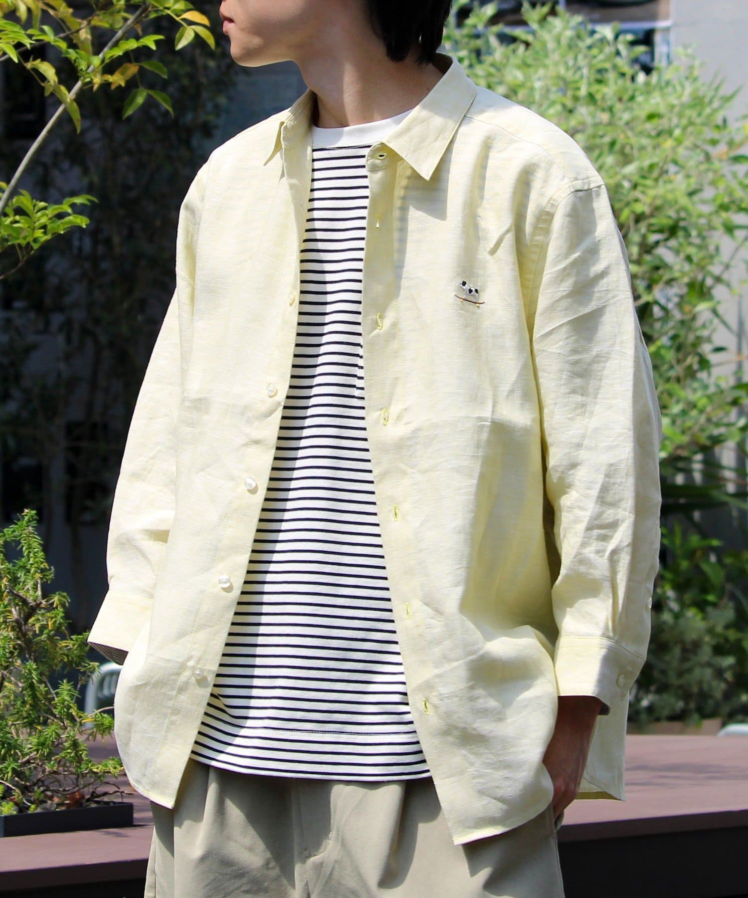 【新色追加】【GLOSTER】フレンチブルドッグ刺繍 リネン 7分袖シャツ