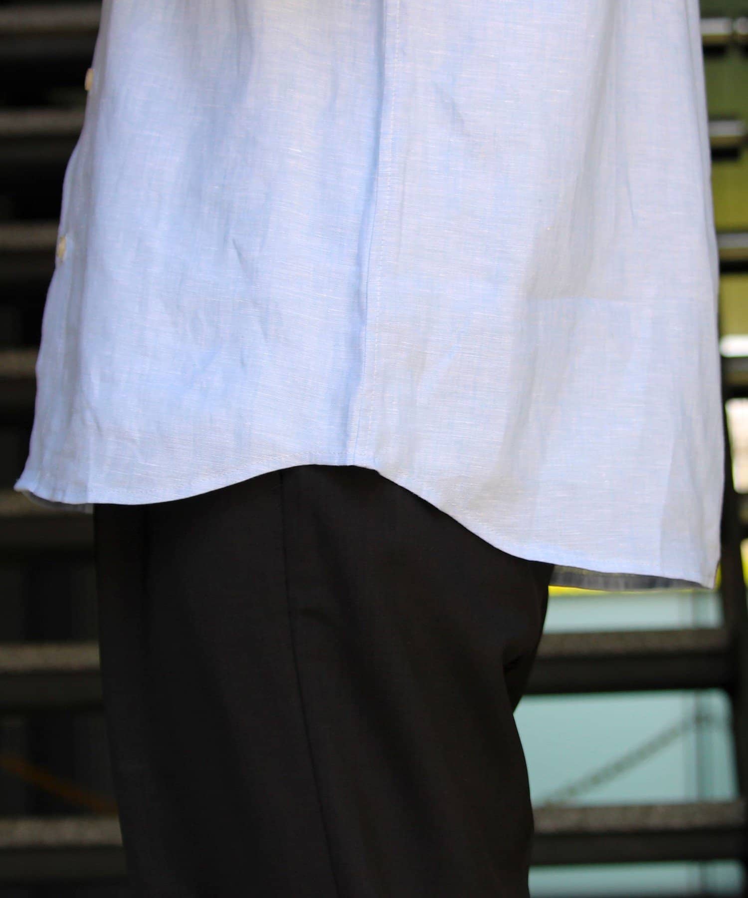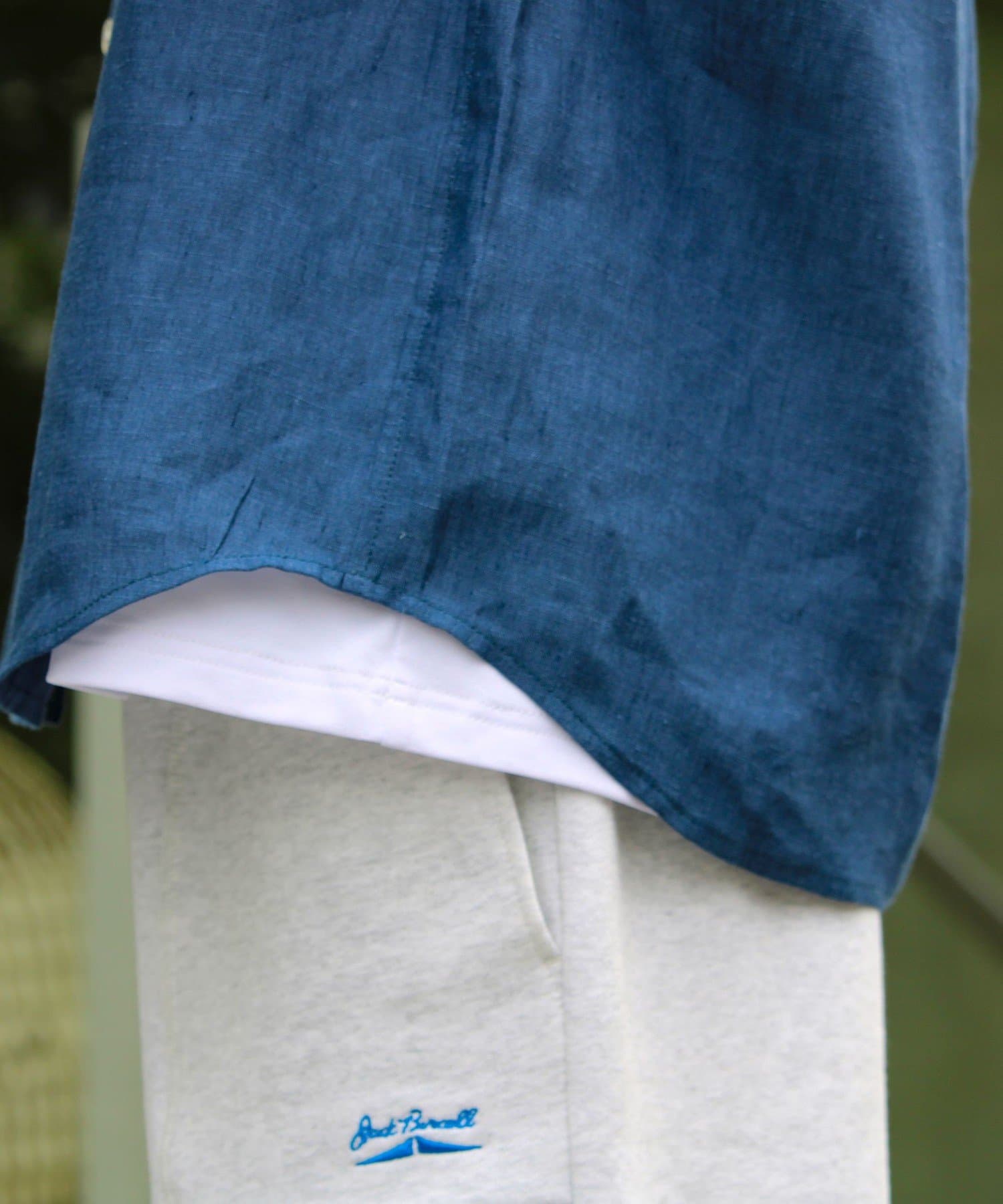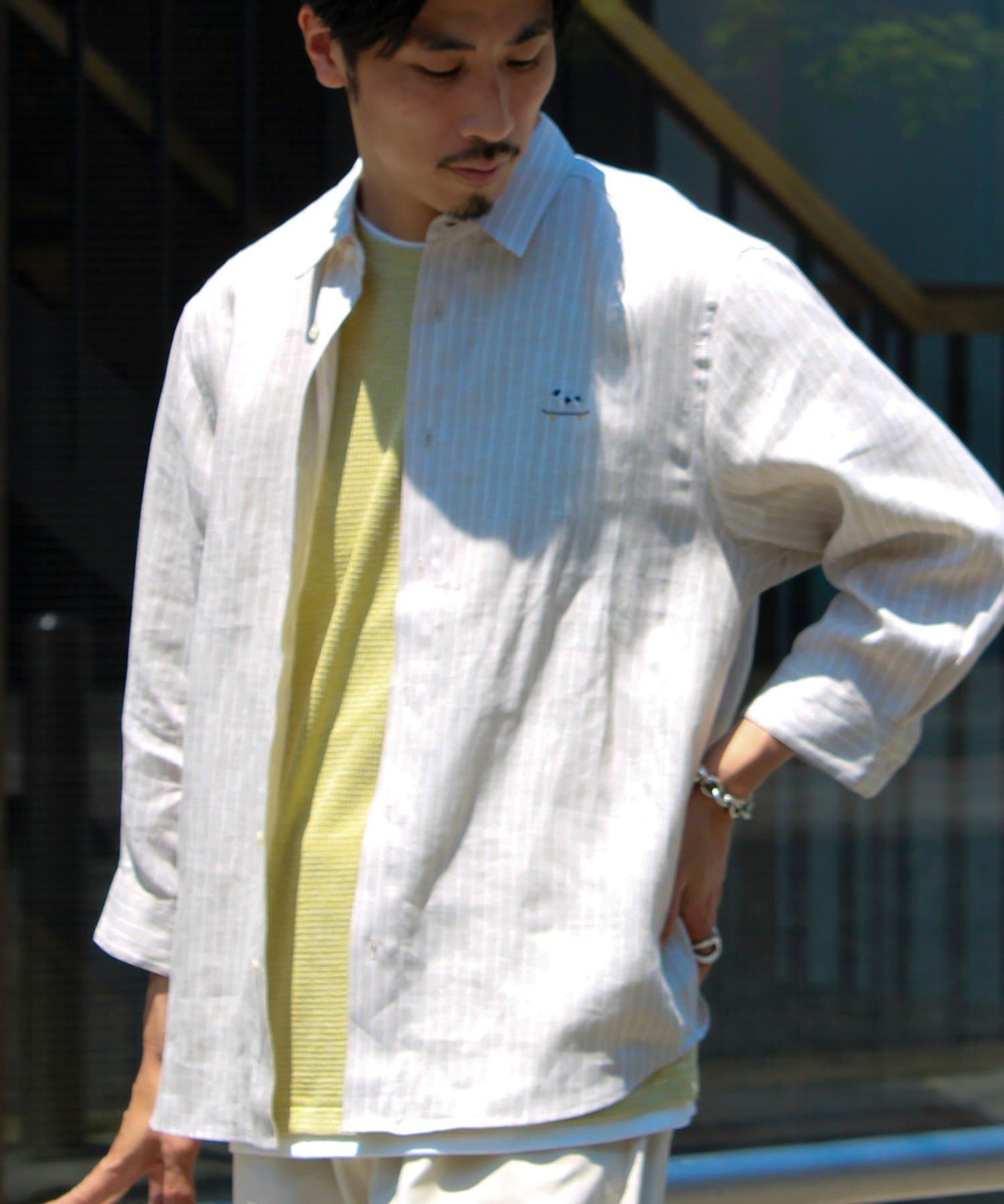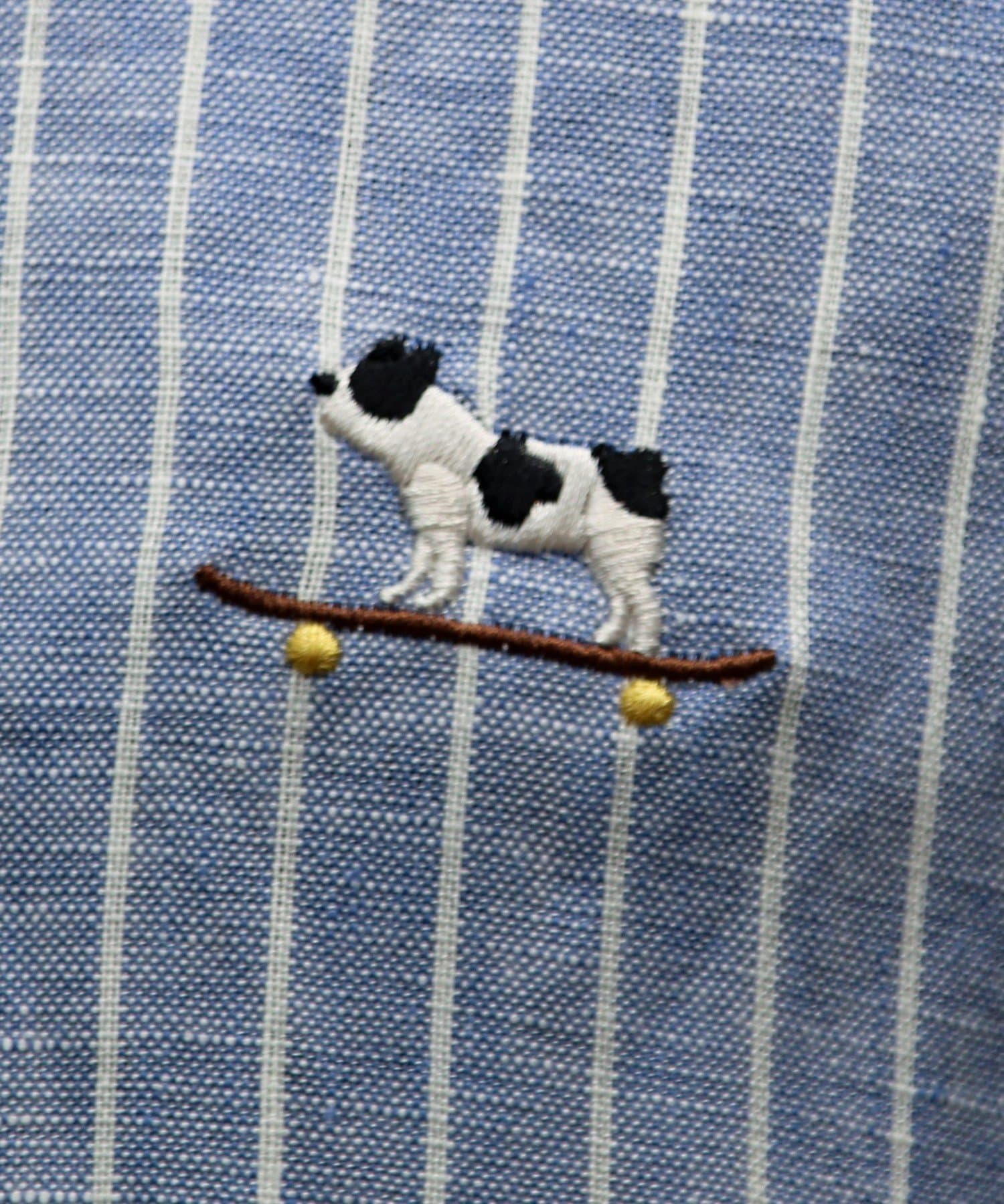 【新色追加】【GLOSTER】フレンチブルドッグ刺繍 リネン 7分袖シャツ