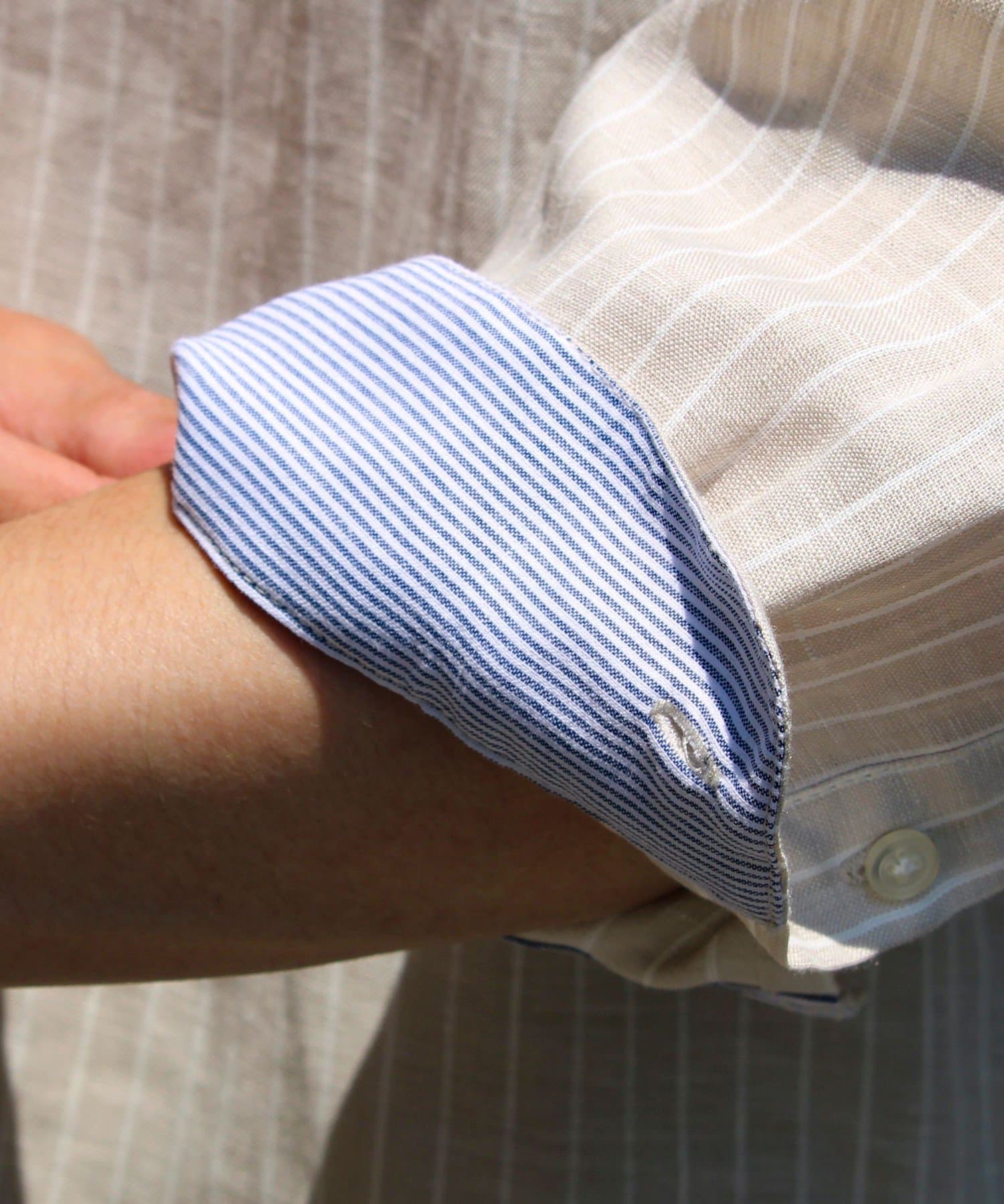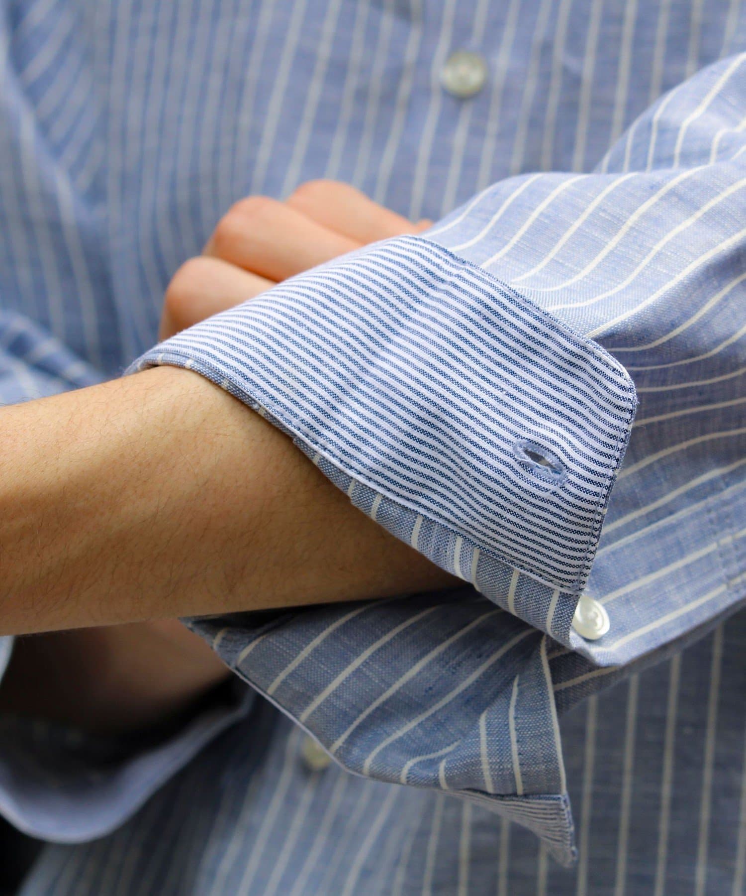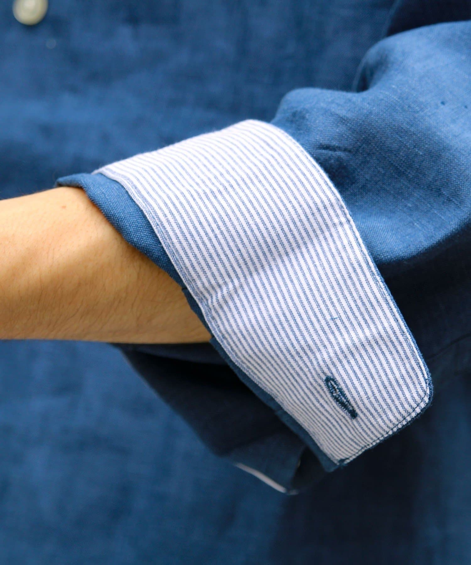 袖裏の別布ストライプ生地も袖をまくった際のアクセントに。