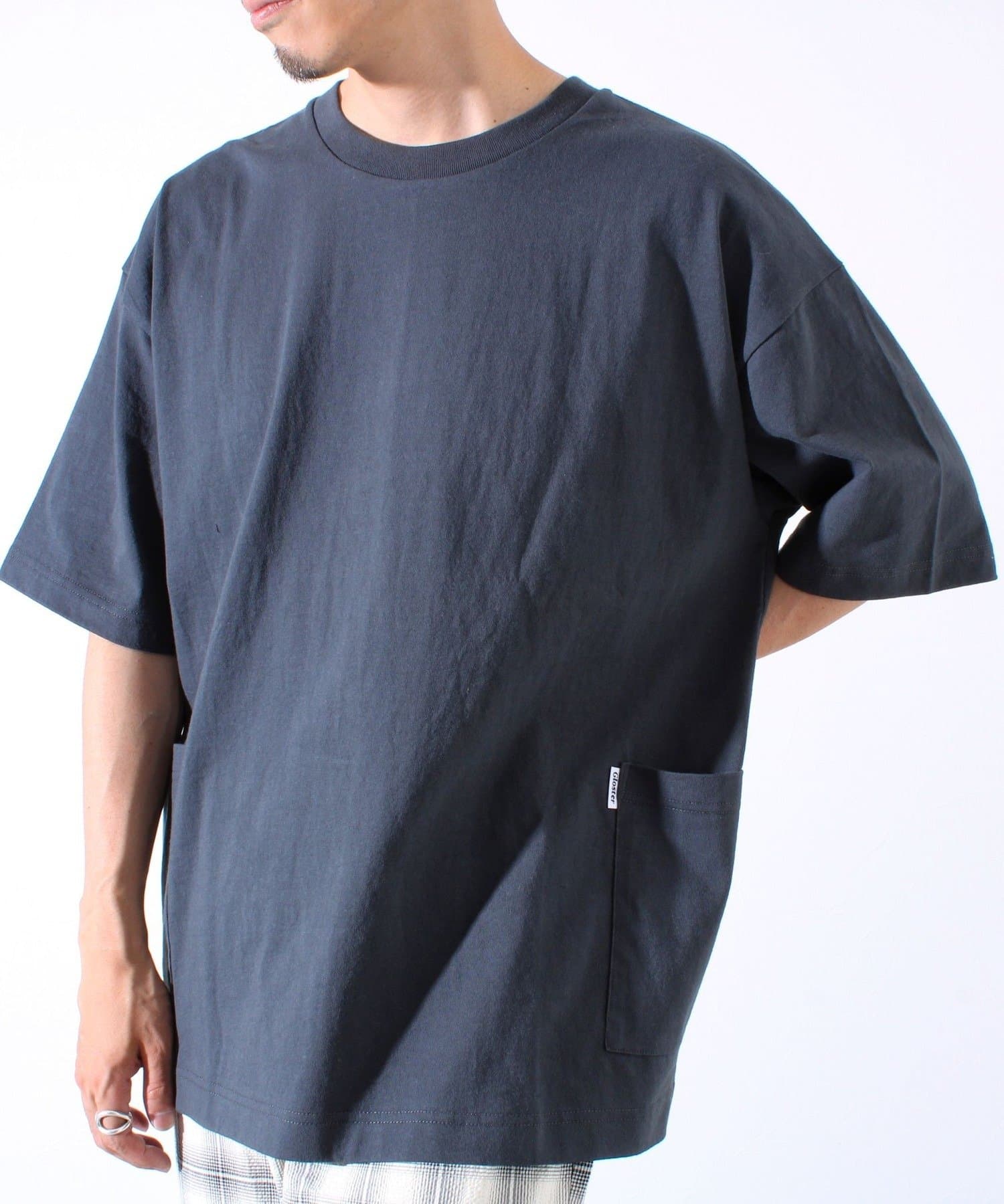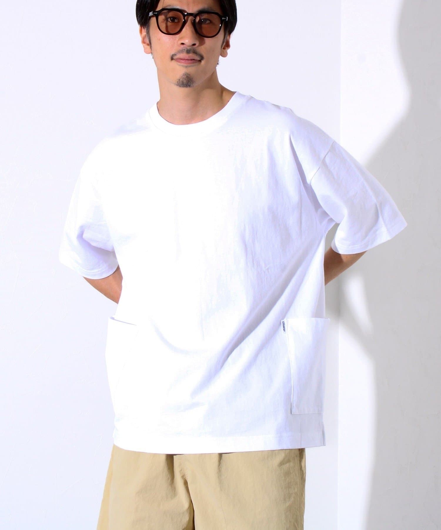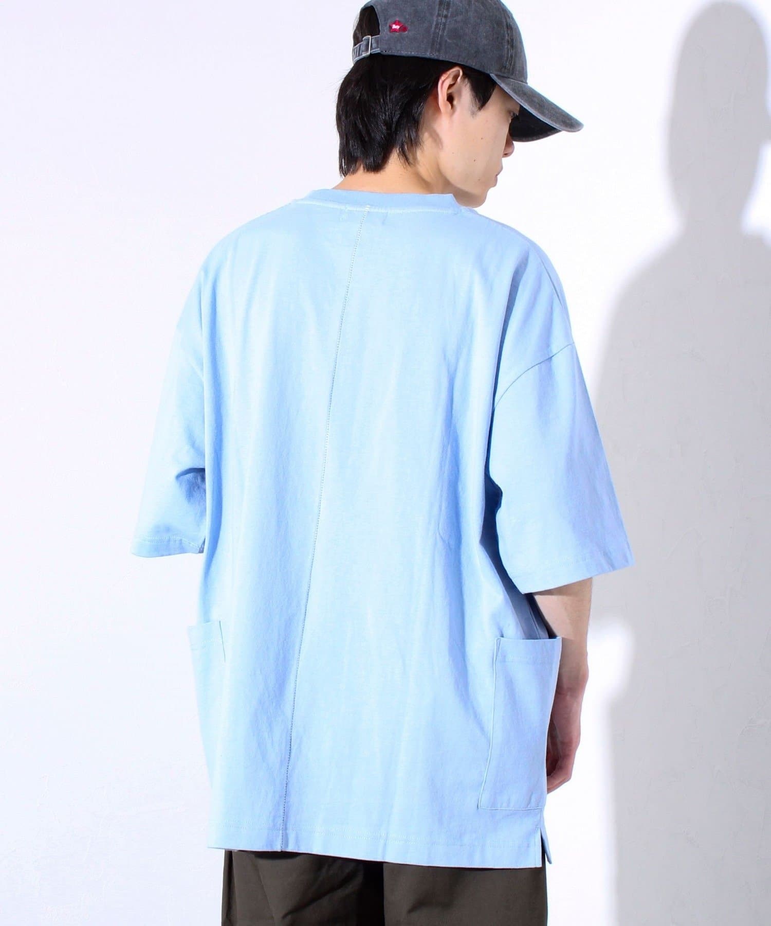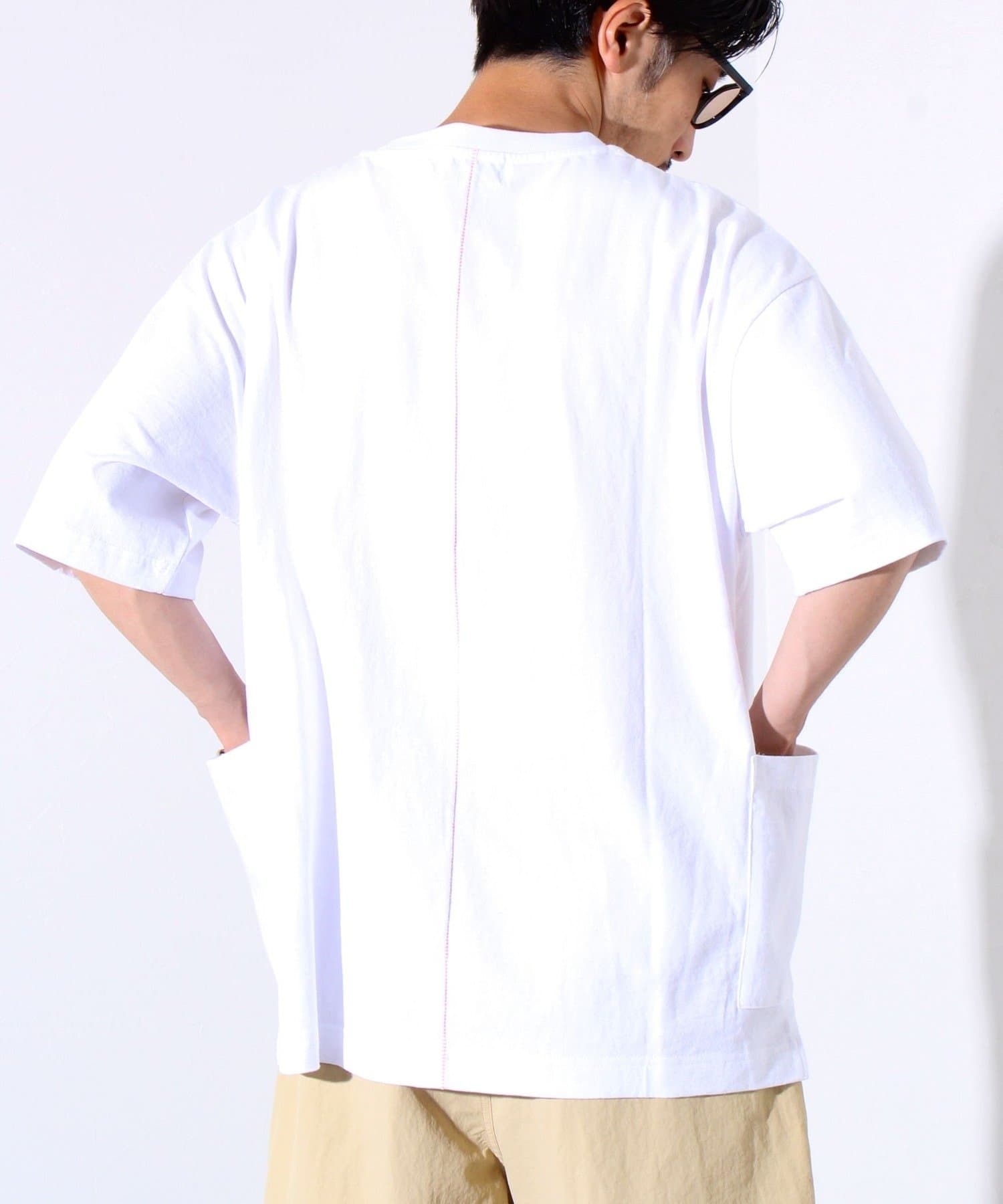 バックの配色ステッチと両サイドのポケットが目を惹くデザインTシャツ。リラックス感あるゆったりシルエットで、夏場でもストレスフリーな着心地。
