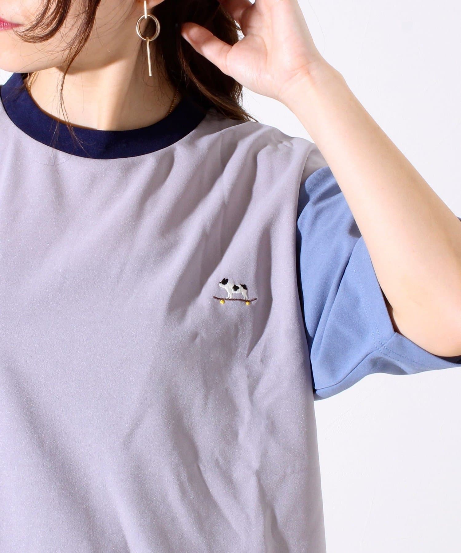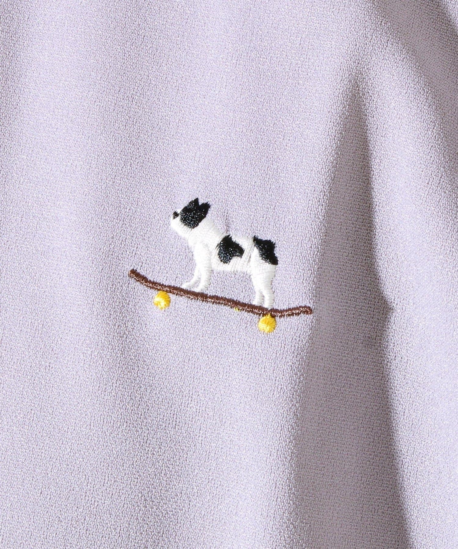 【GLOSTER/グロスター】フレンチブルドッグ刺繍 カットジョーゼットTシャツ