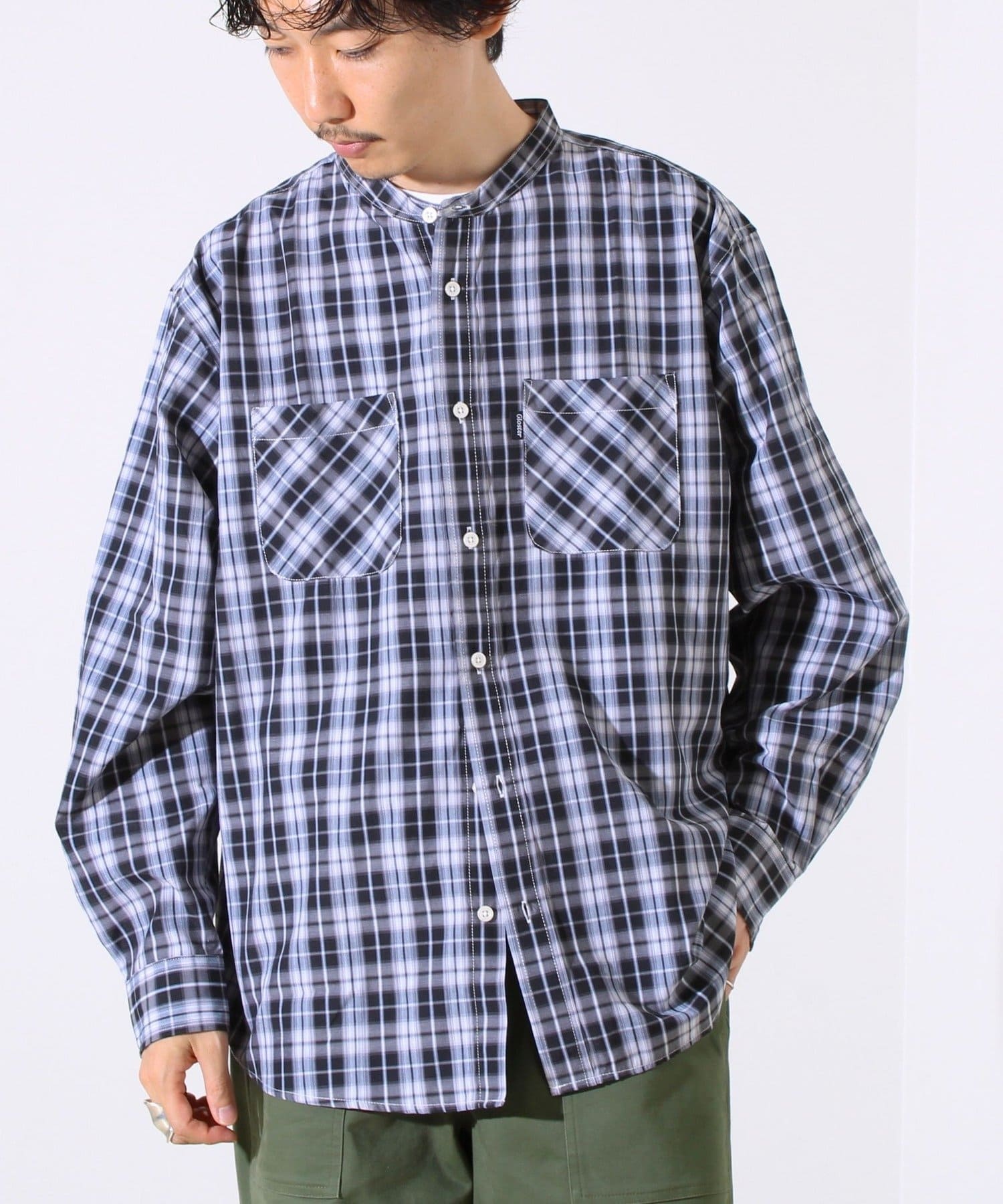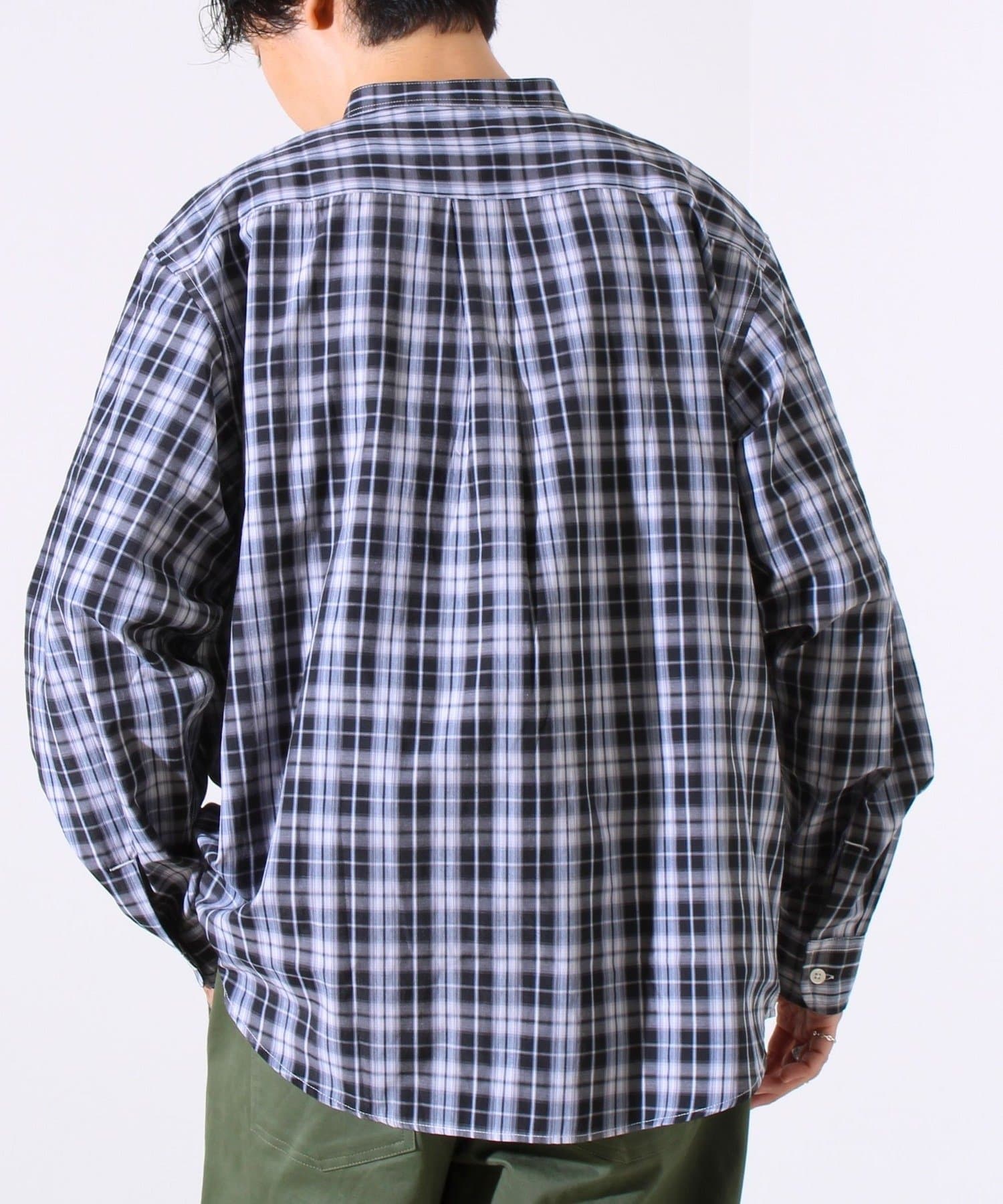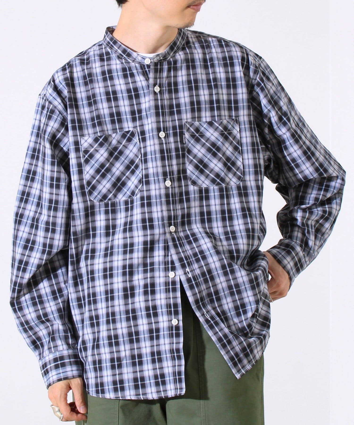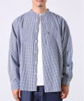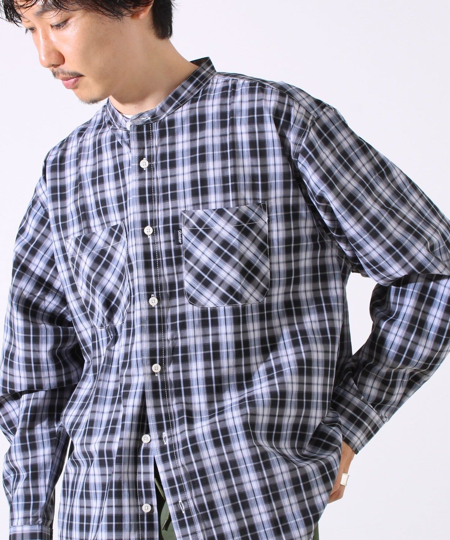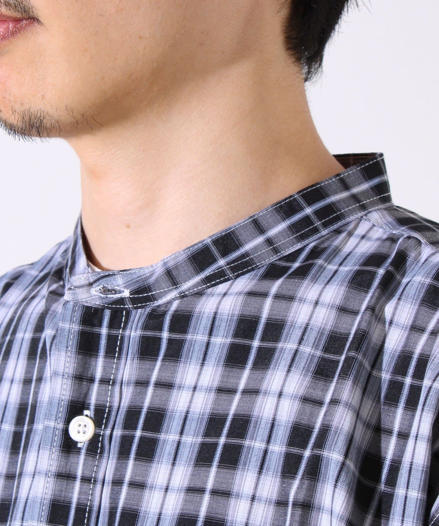 「大人カジュアルに映えるチェック柄バンドカラーシャツ」