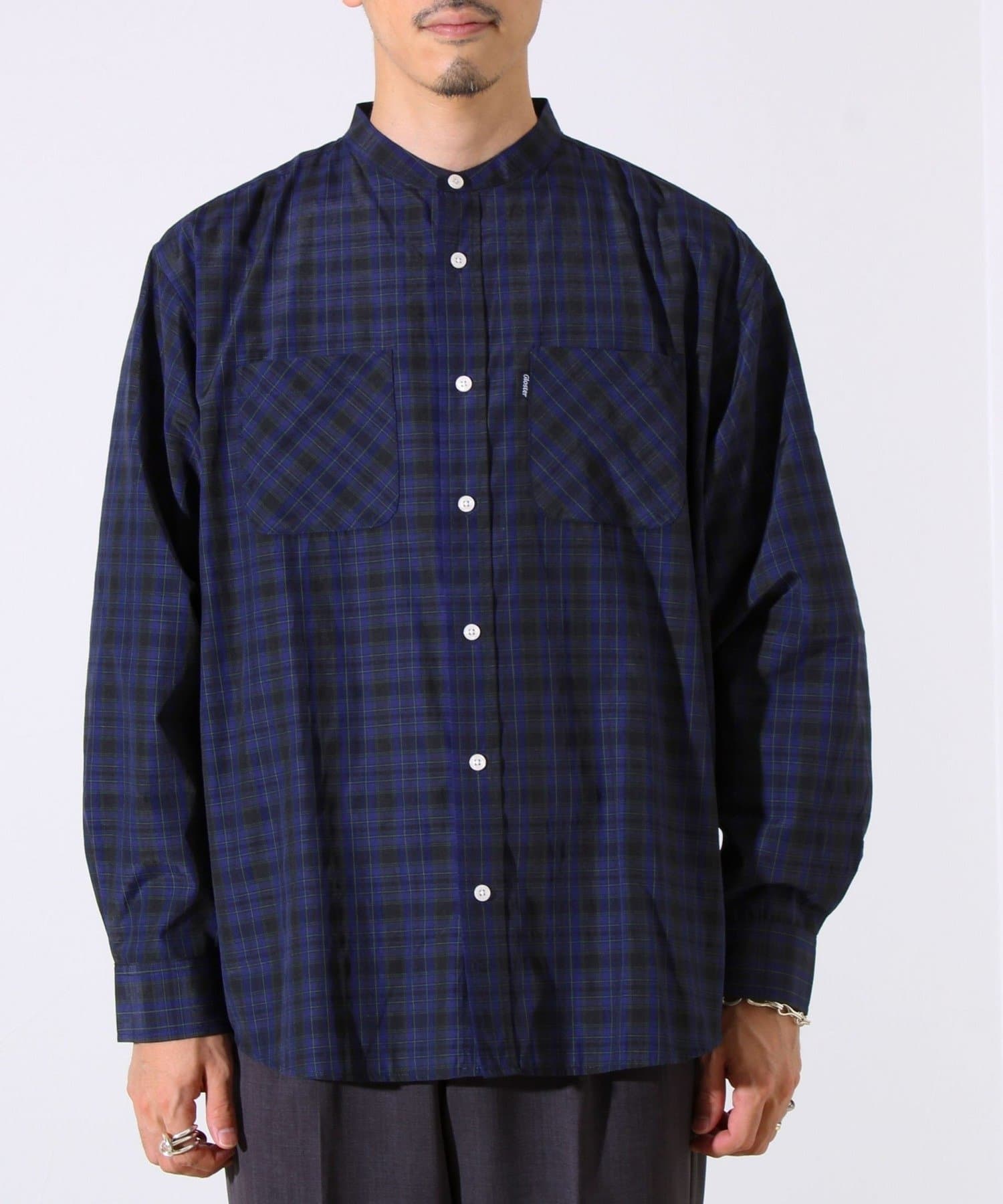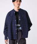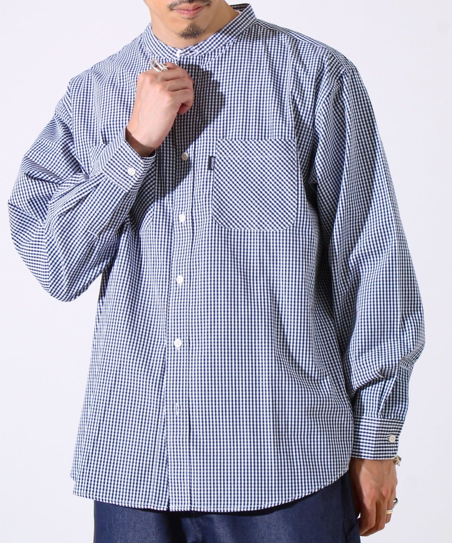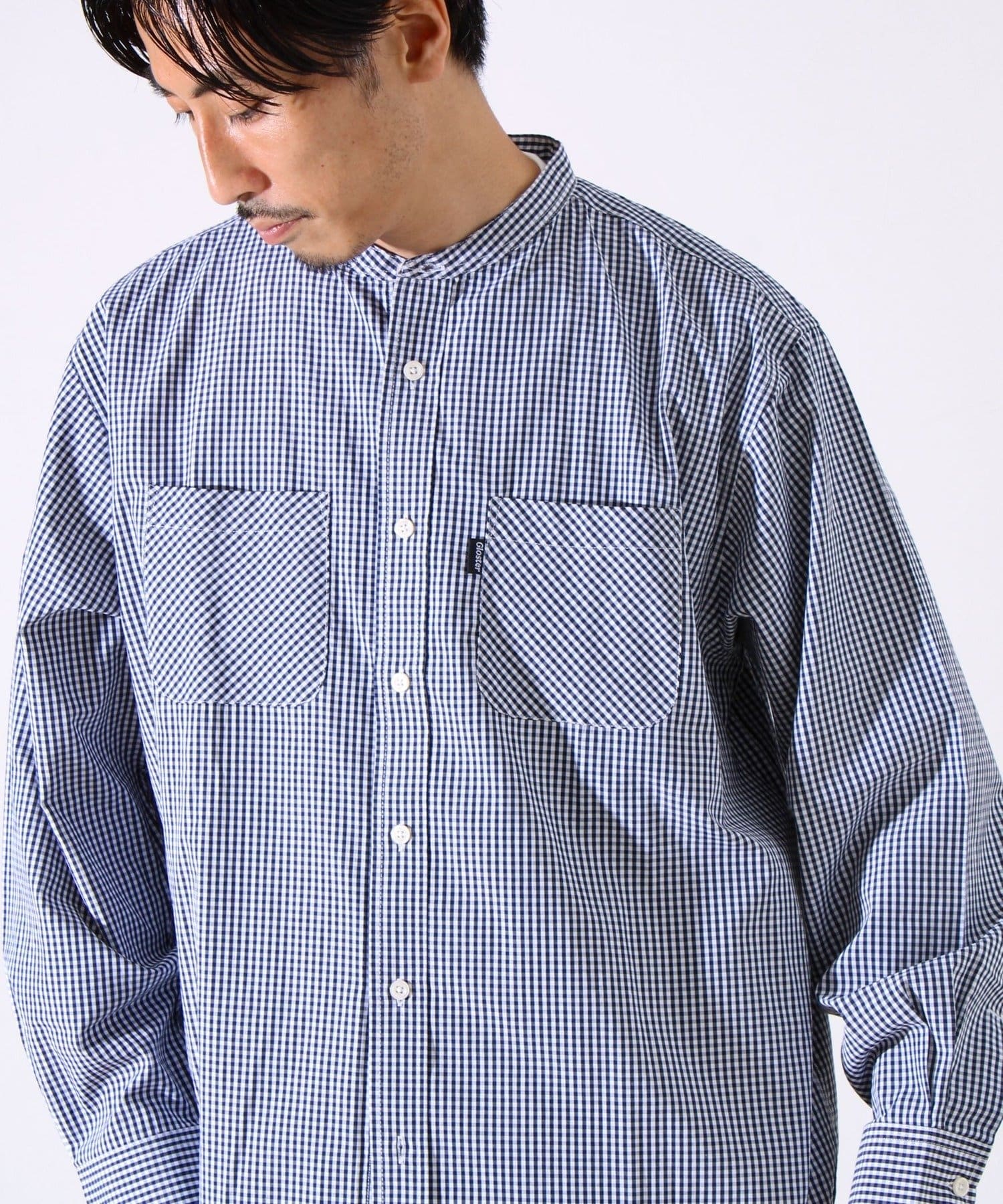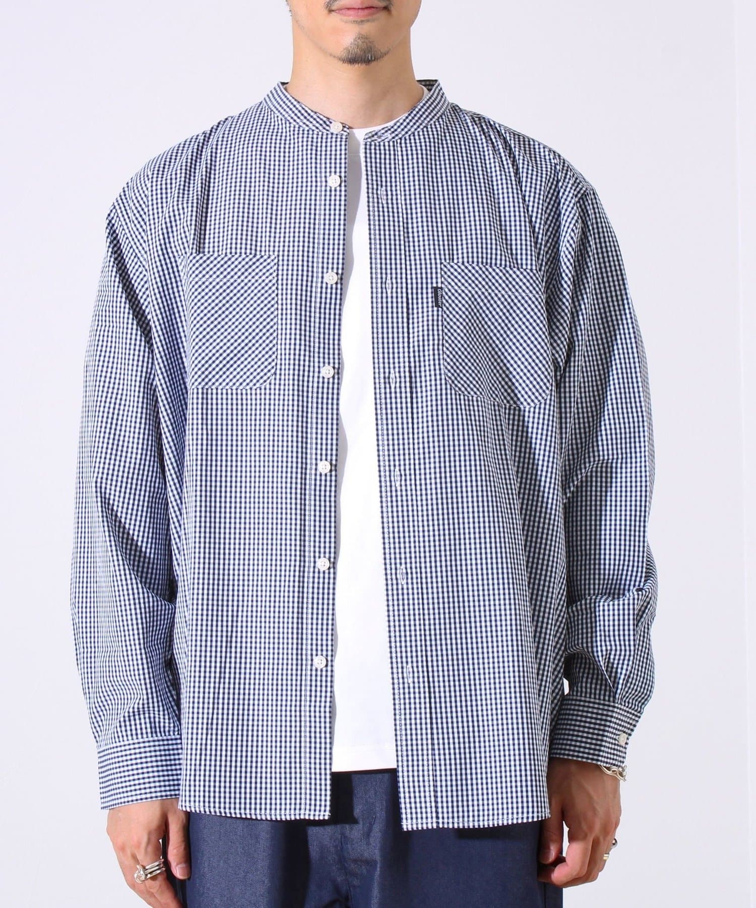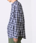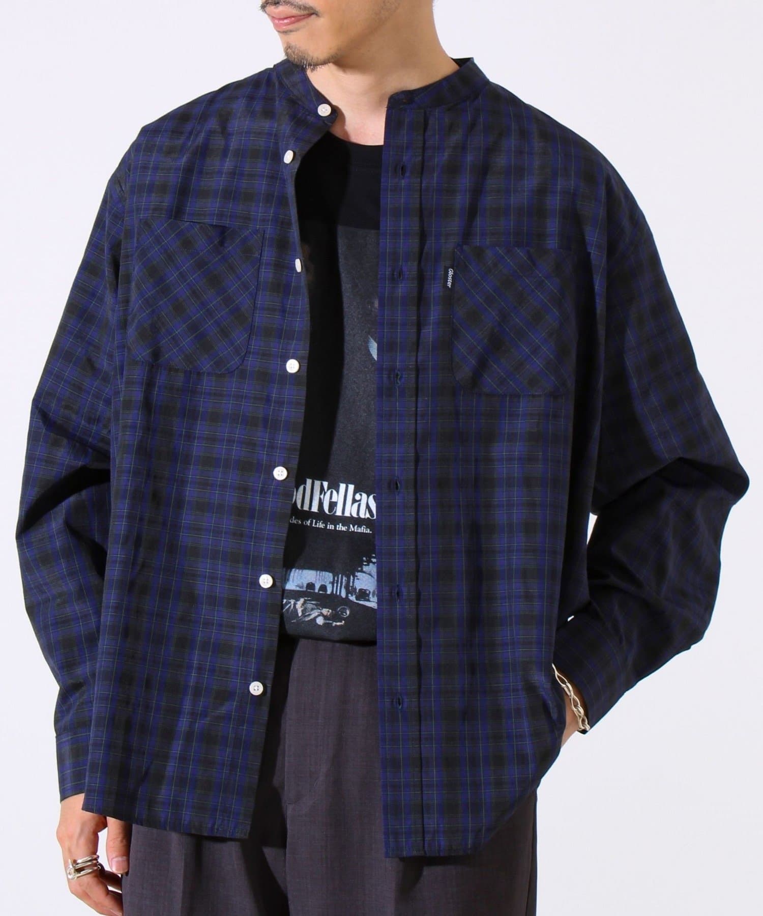 「大人カジュアルに映えるチェック柄バンドカラーシャツ」