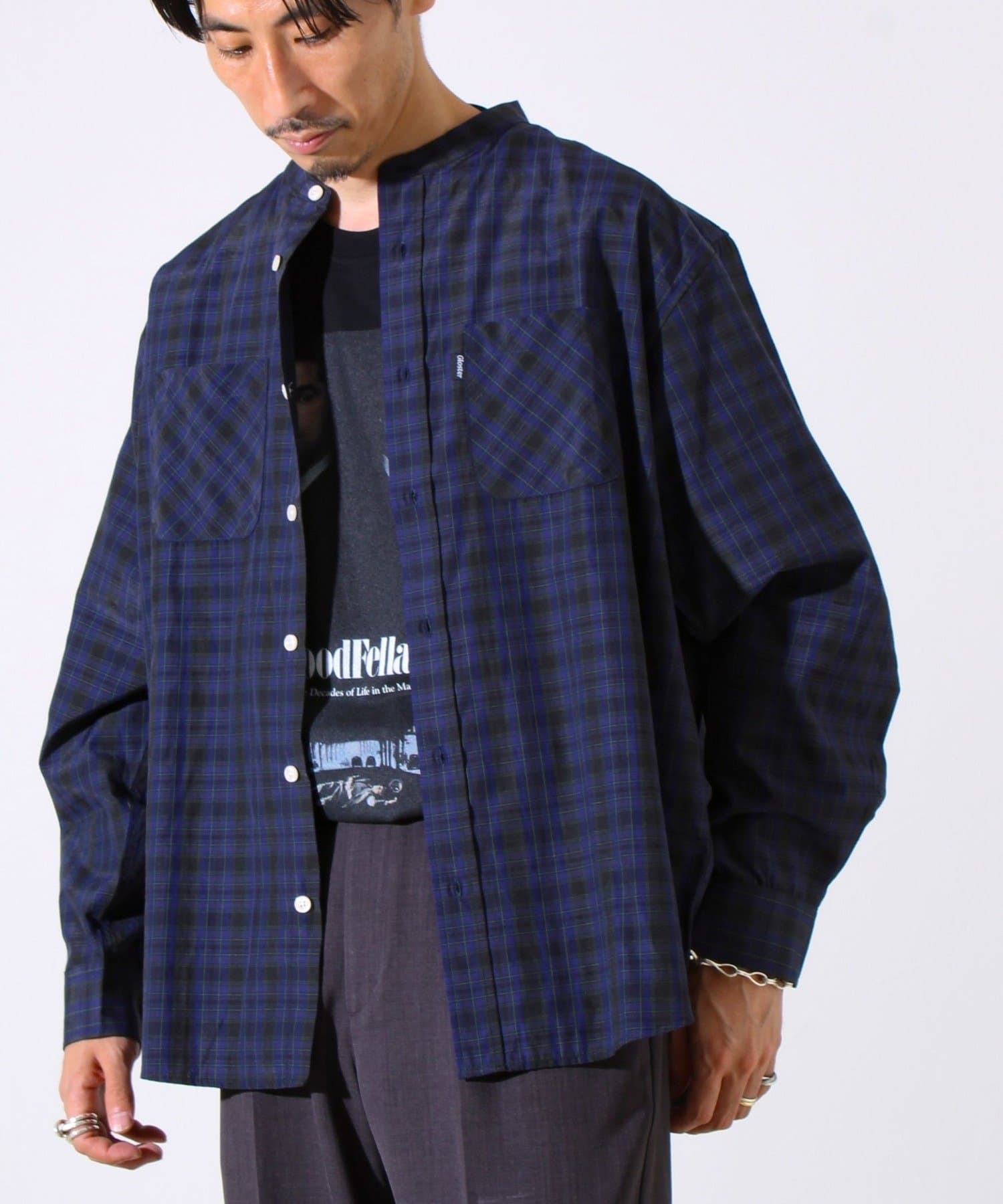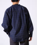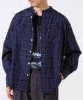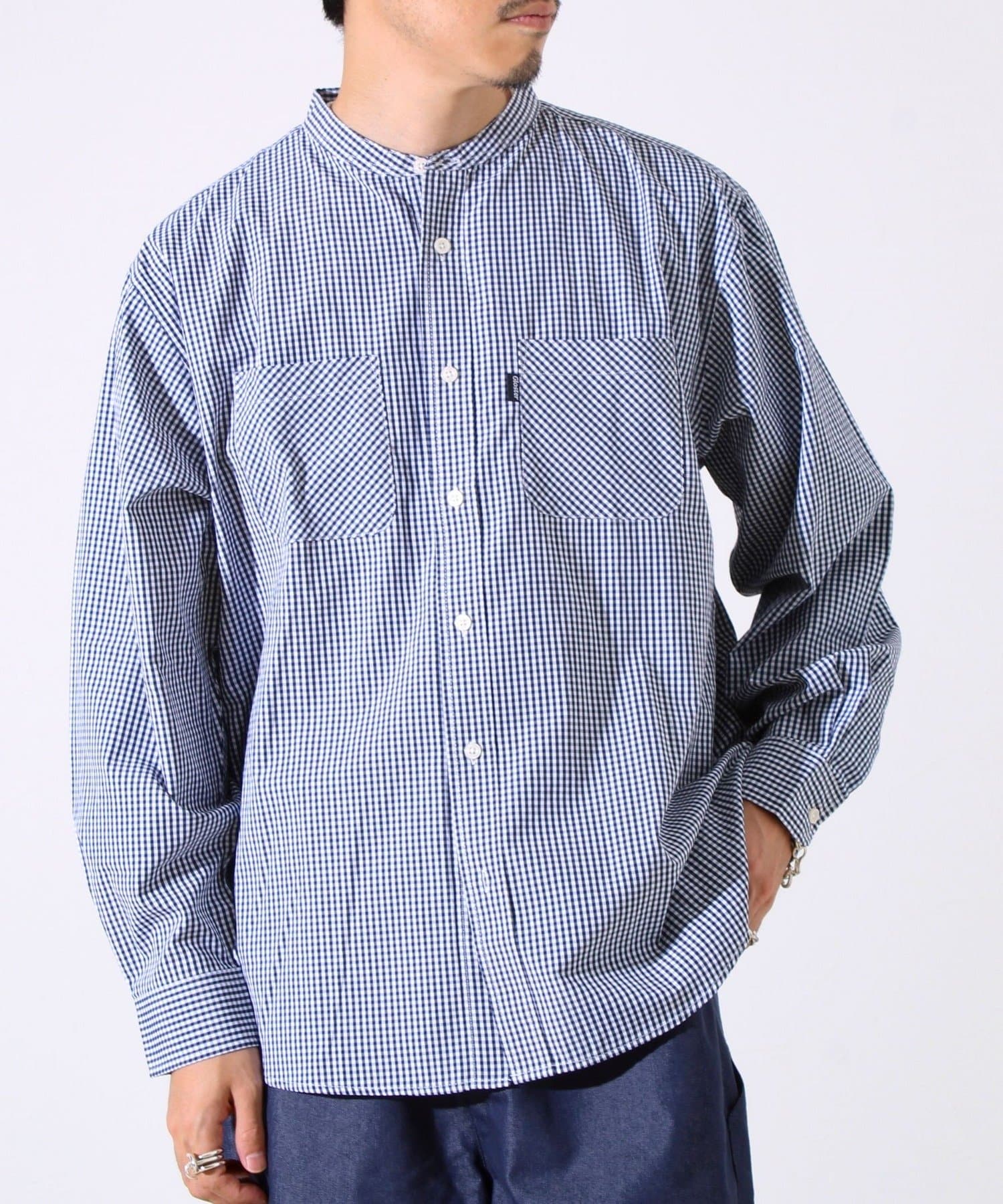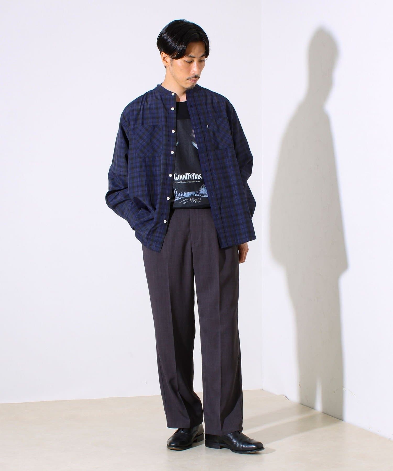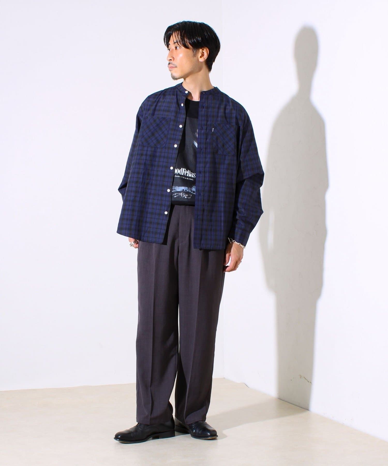「大人カジュアルに映えるチェック柄バンドカラーシャツ」