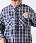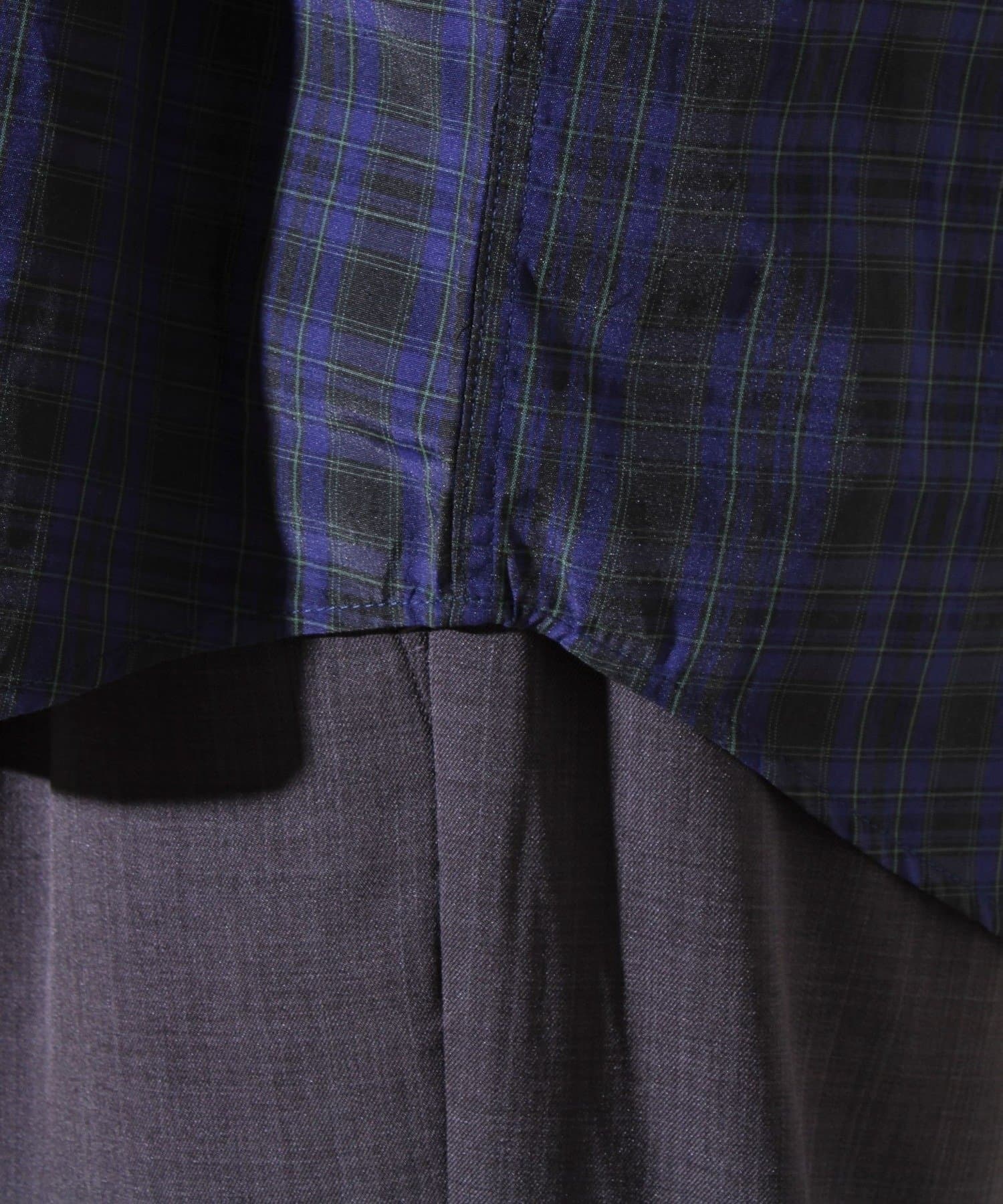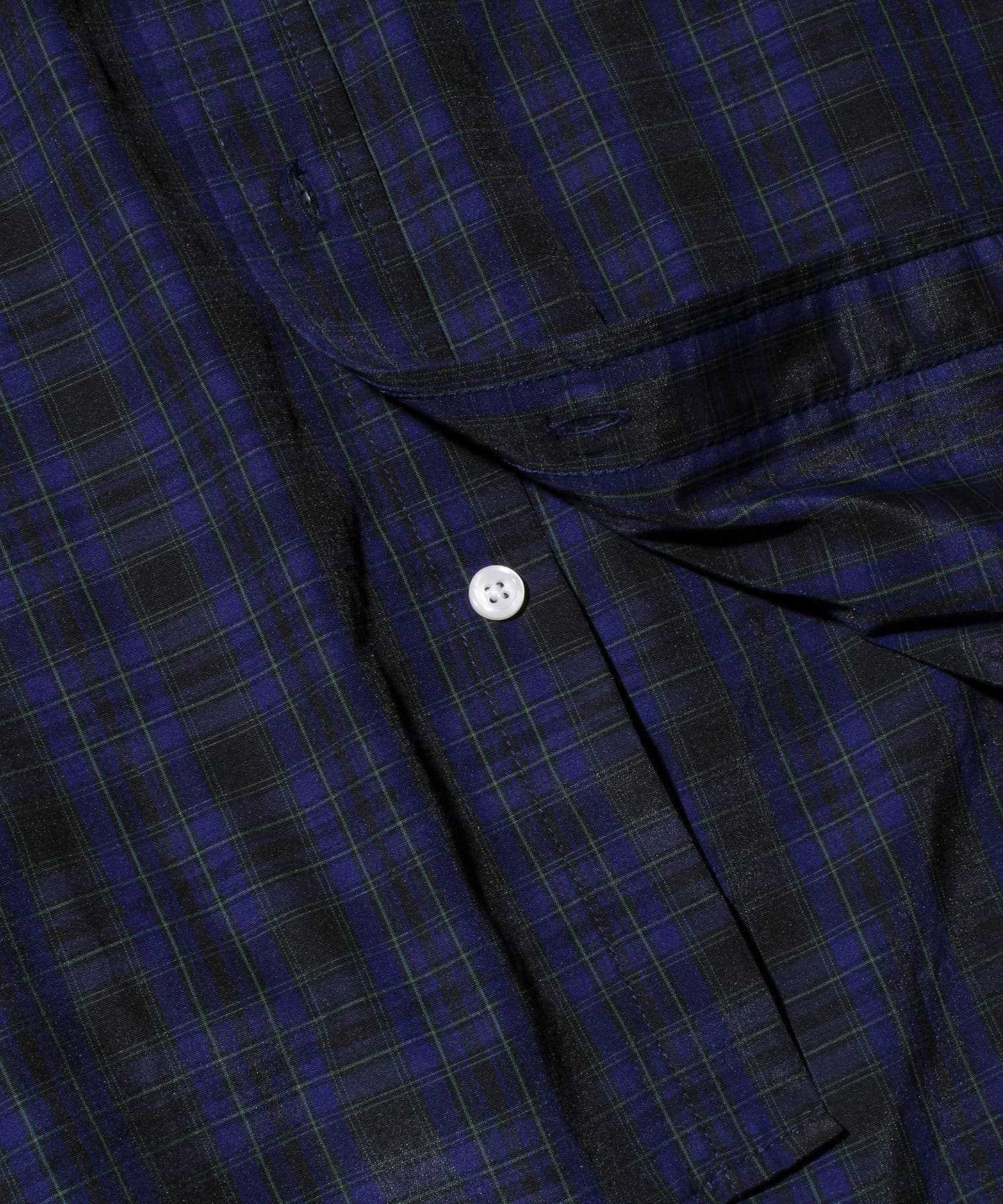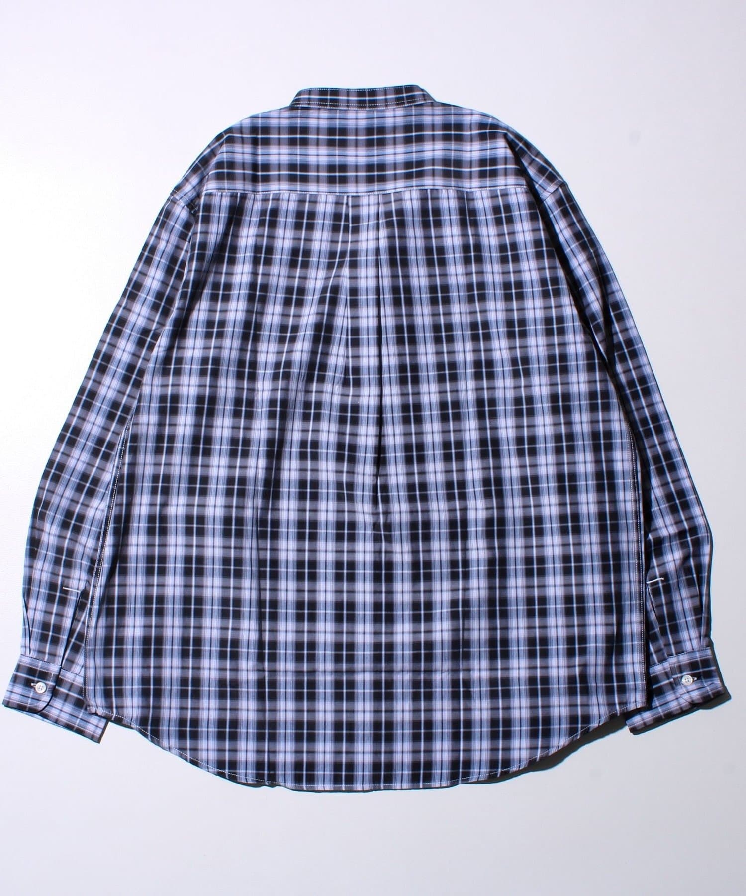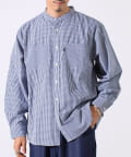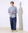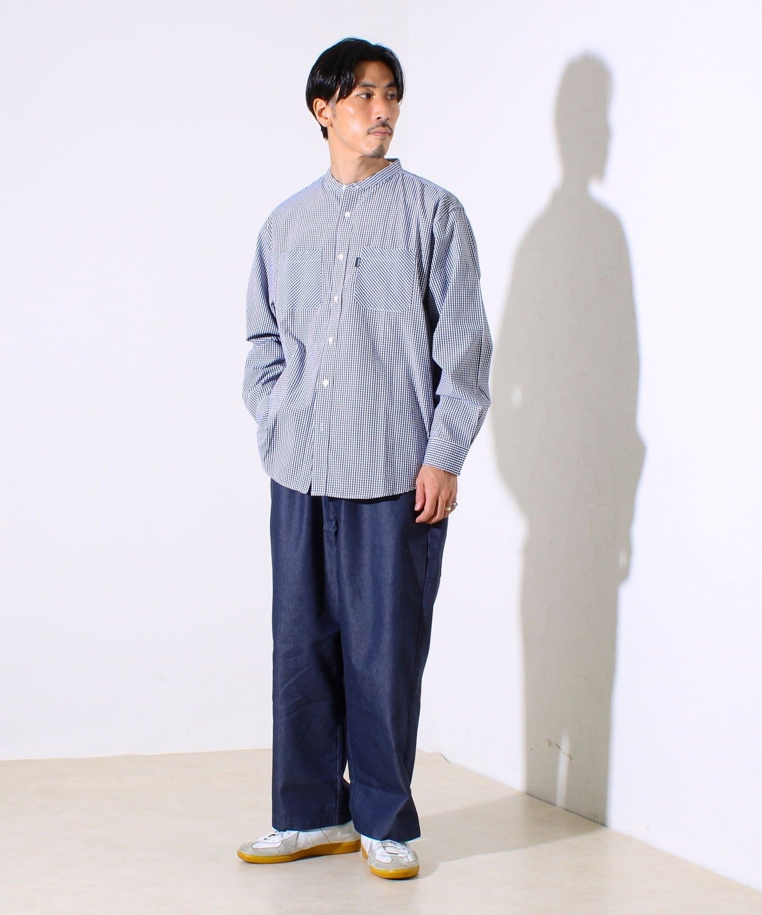 「大人カジュアルに映えるチェック柄バンドカラーシャツ」