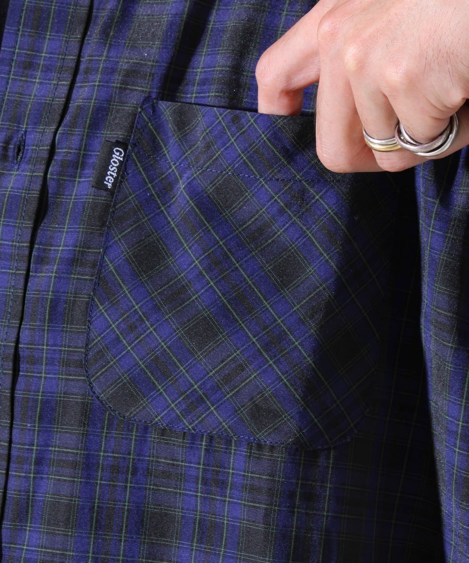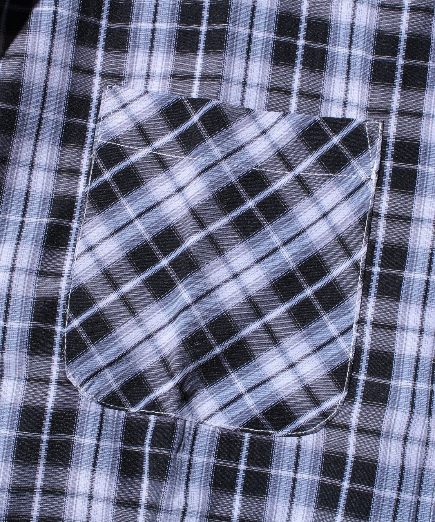 ・胸ポケットは柄を斜め使いでアクセントに。さりげないこだわりが光るデザイン。