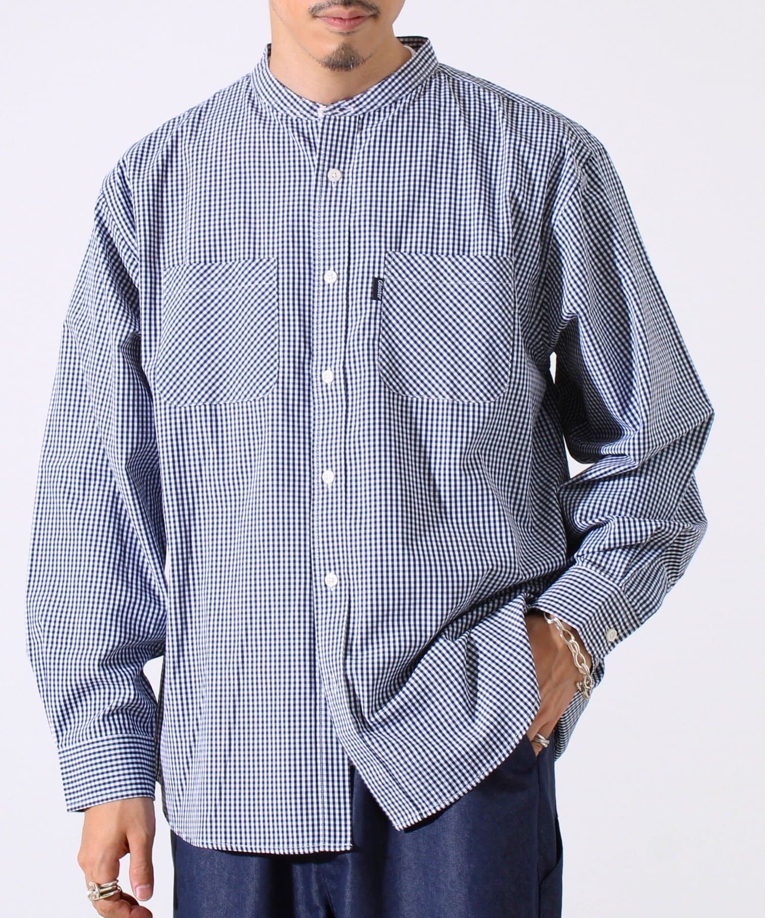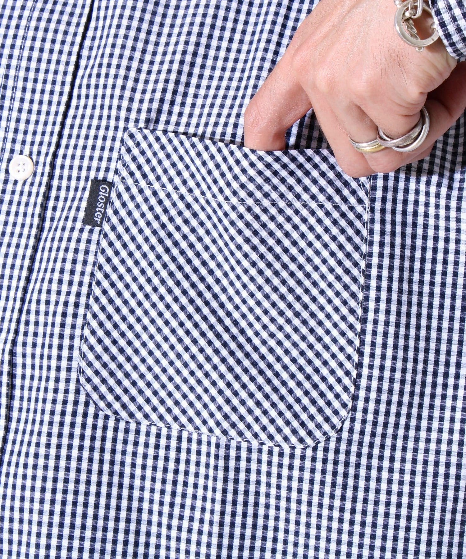 #バンドカラーシャツ #チェックシャツ #ギンガムチェック #秋シャツ #長袖シャツ #ゆったりシルエット #きれいめカジュアル #重ね着コーデ #Gloster #グロスター