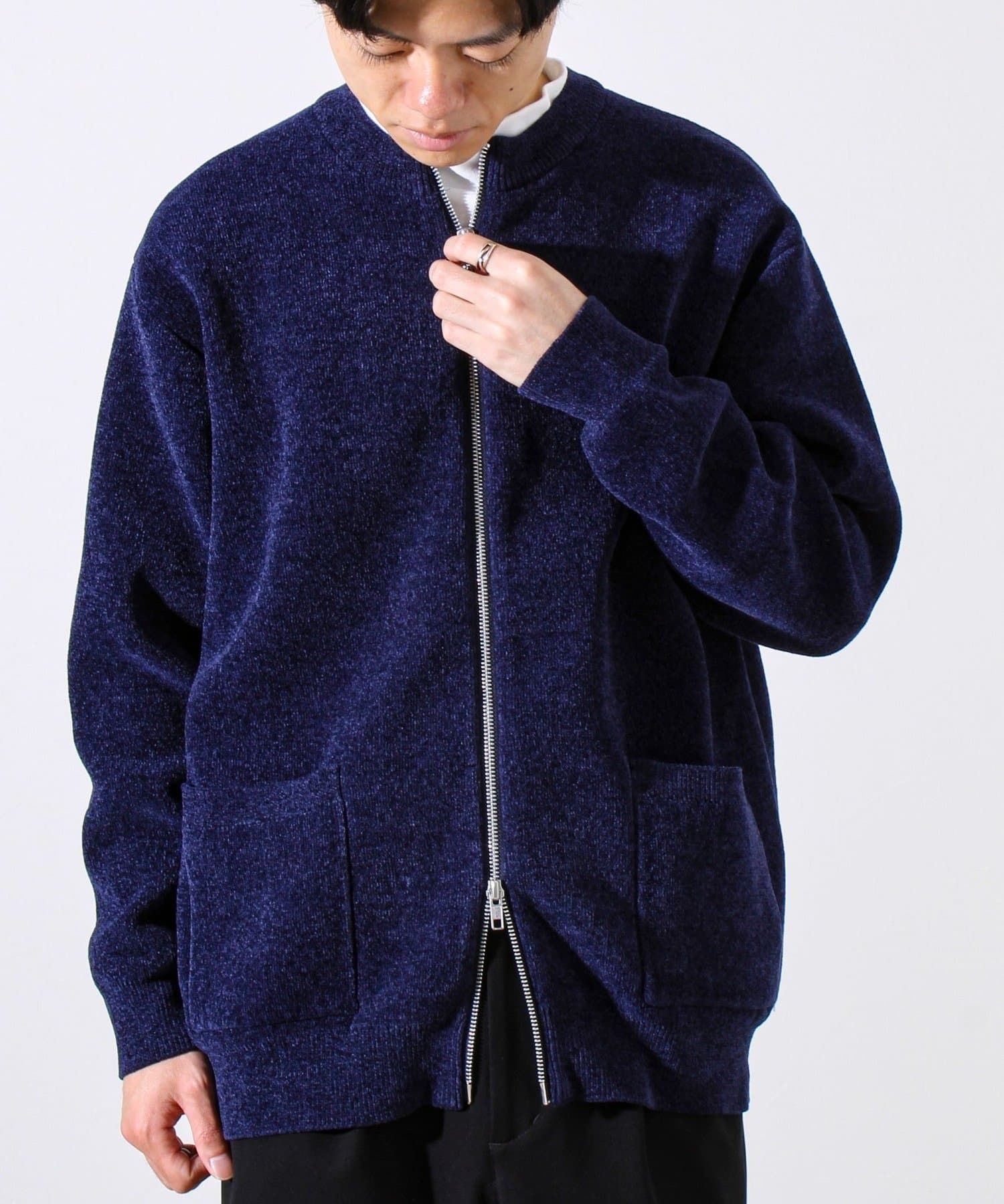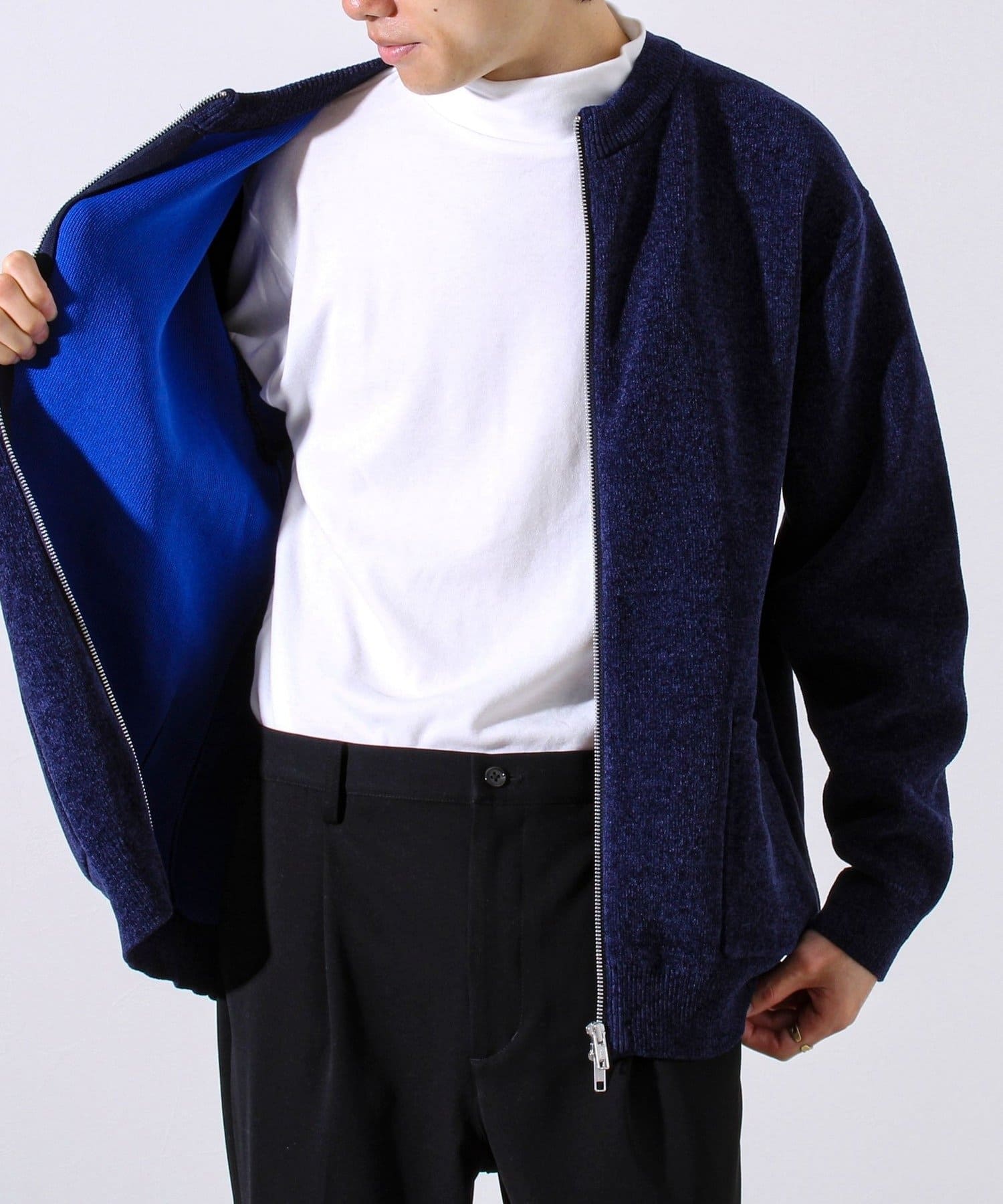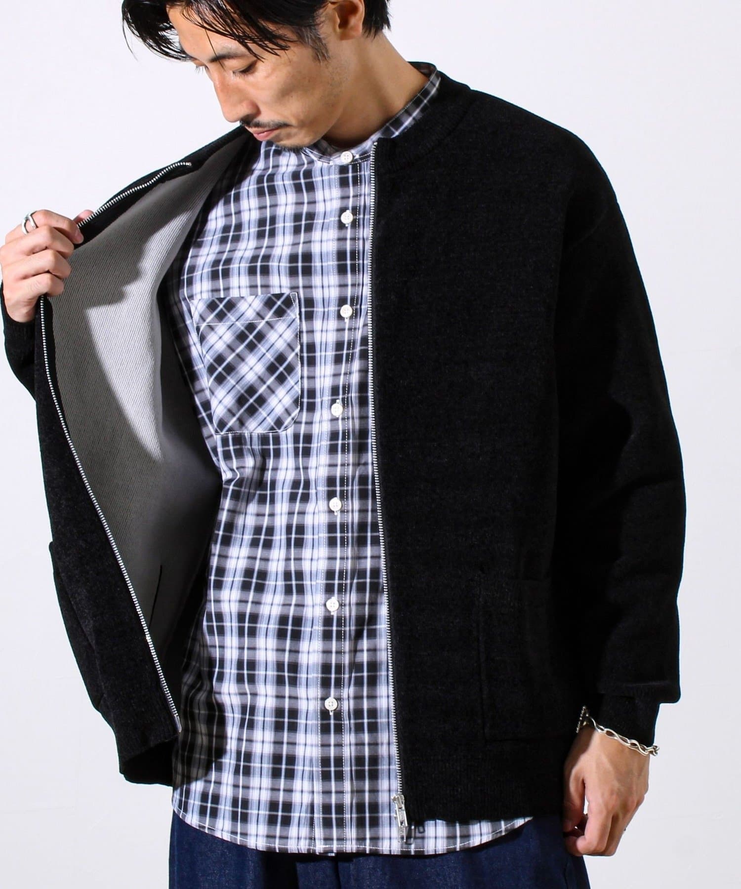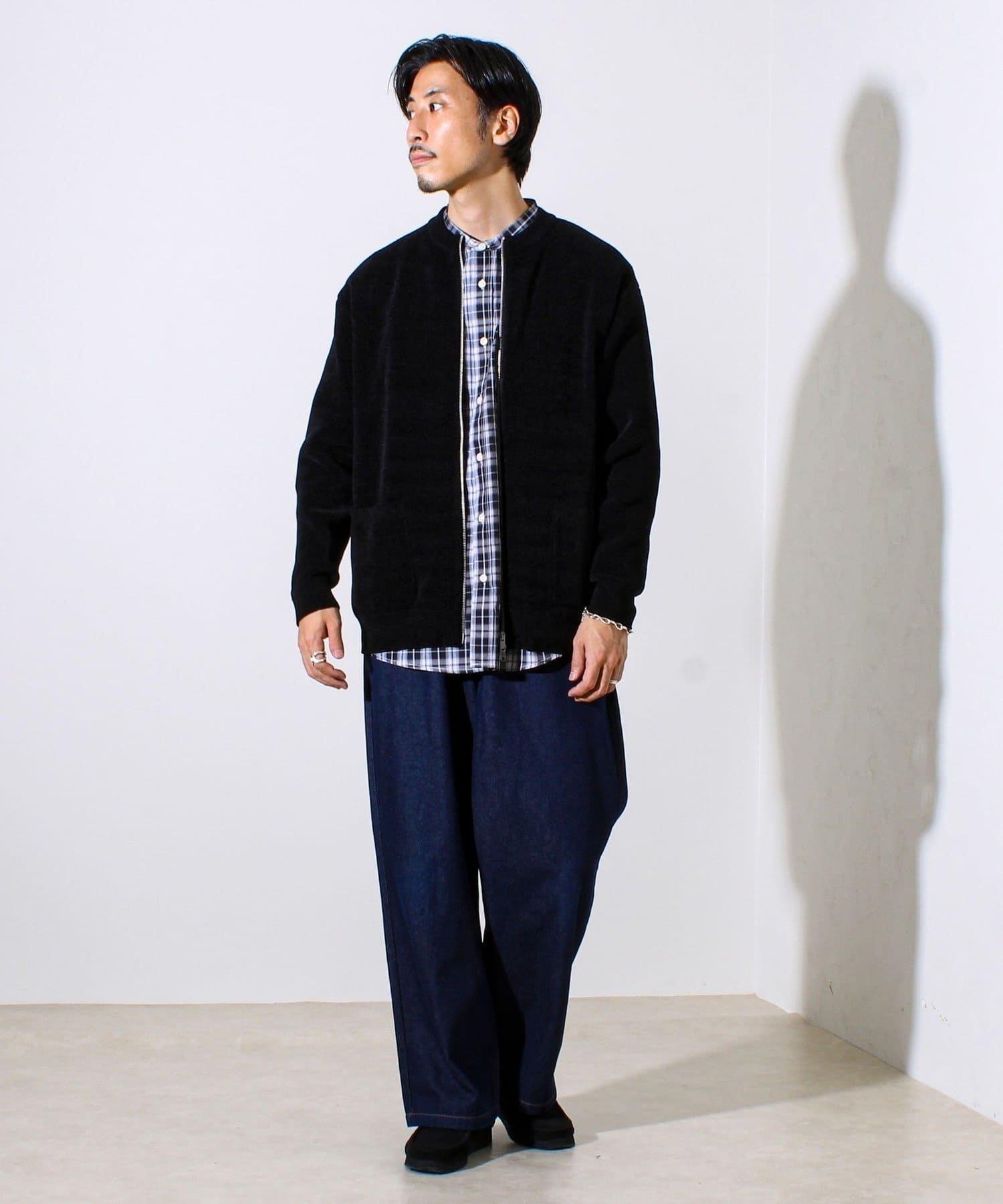 ・ミニマルなノーカラーデザインで、シャツやモックネックとの相性も抜群。