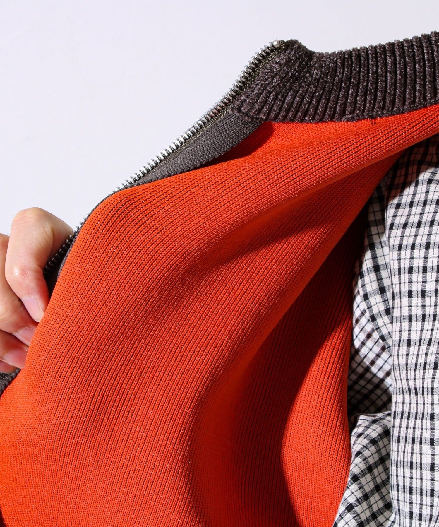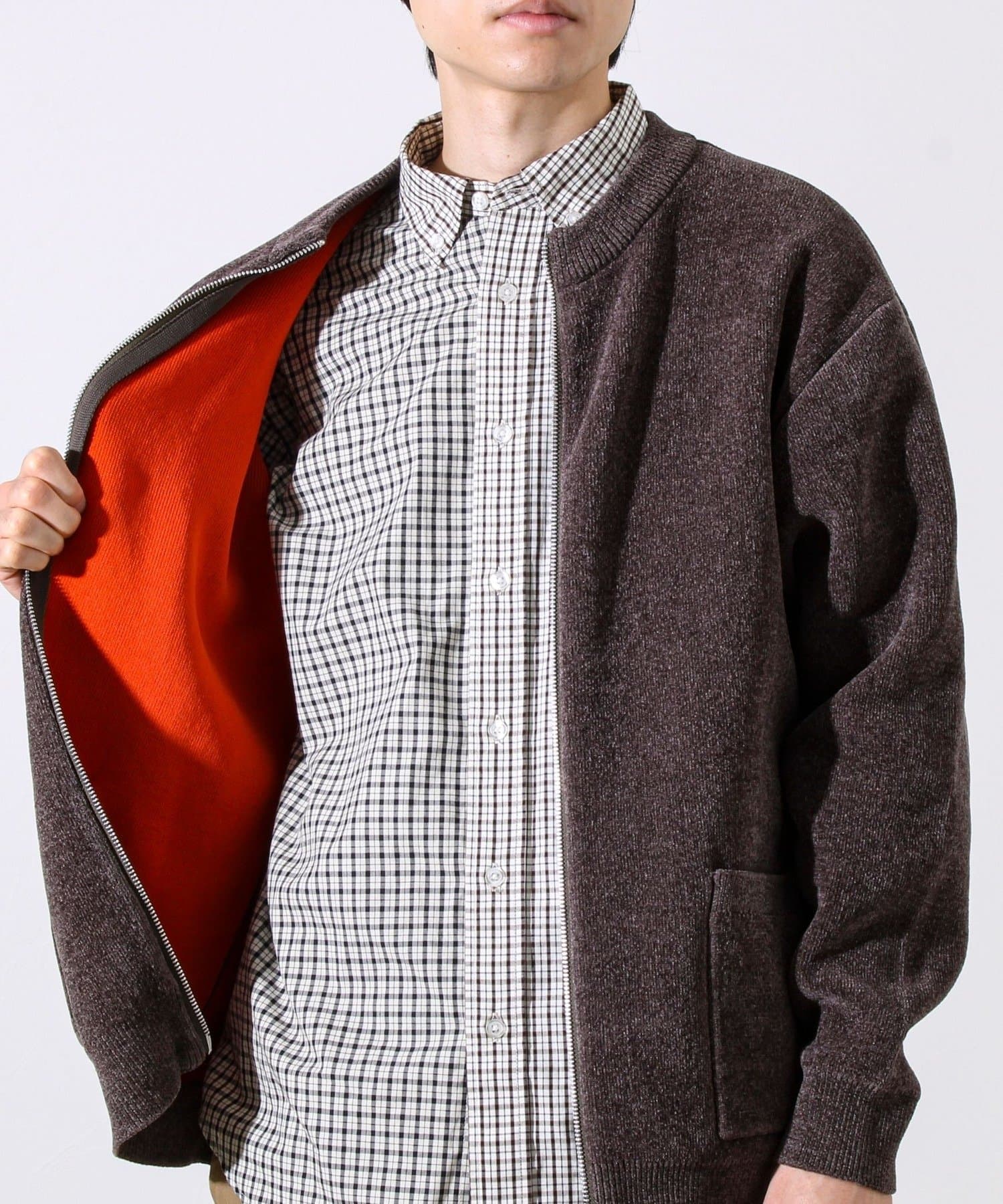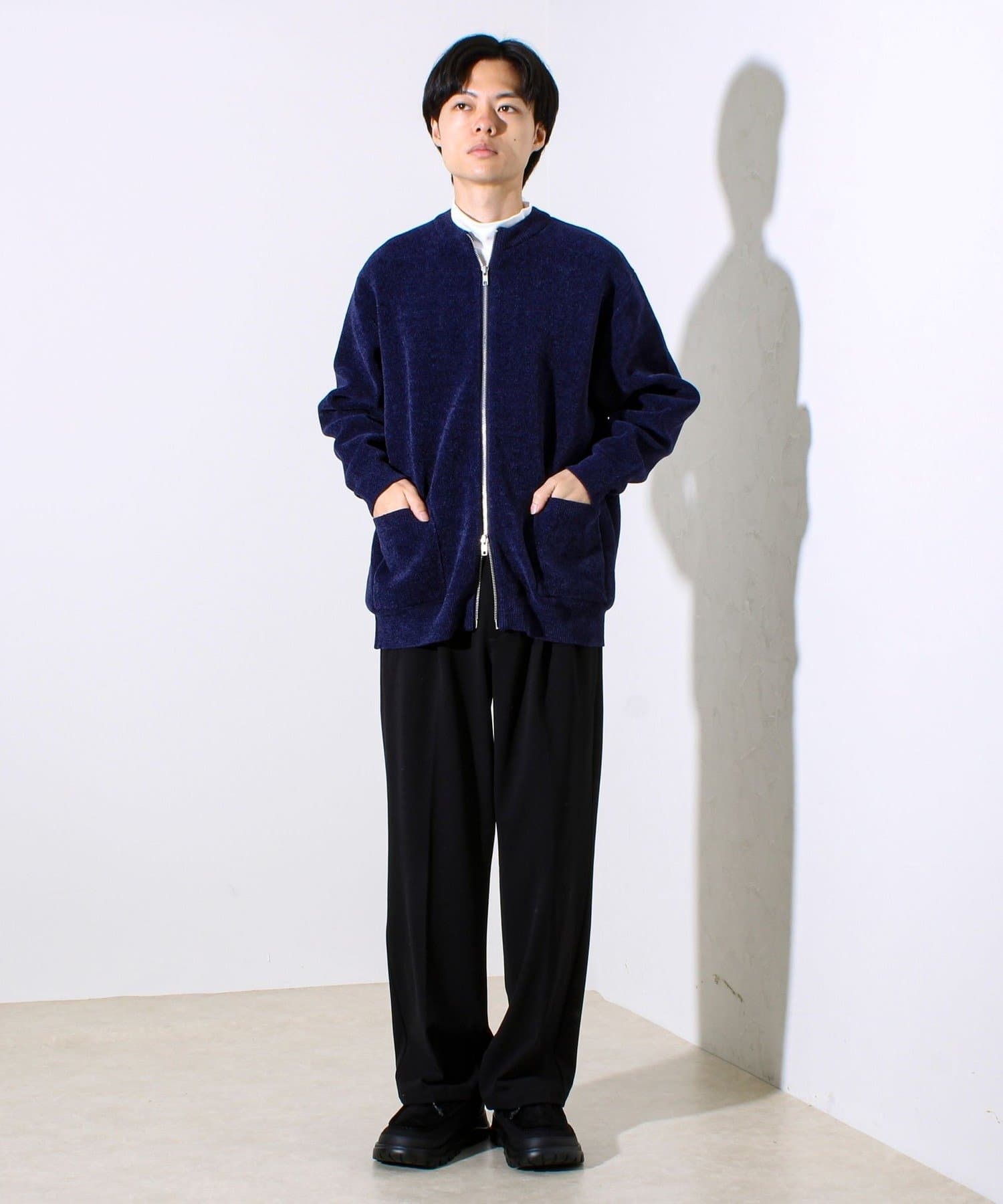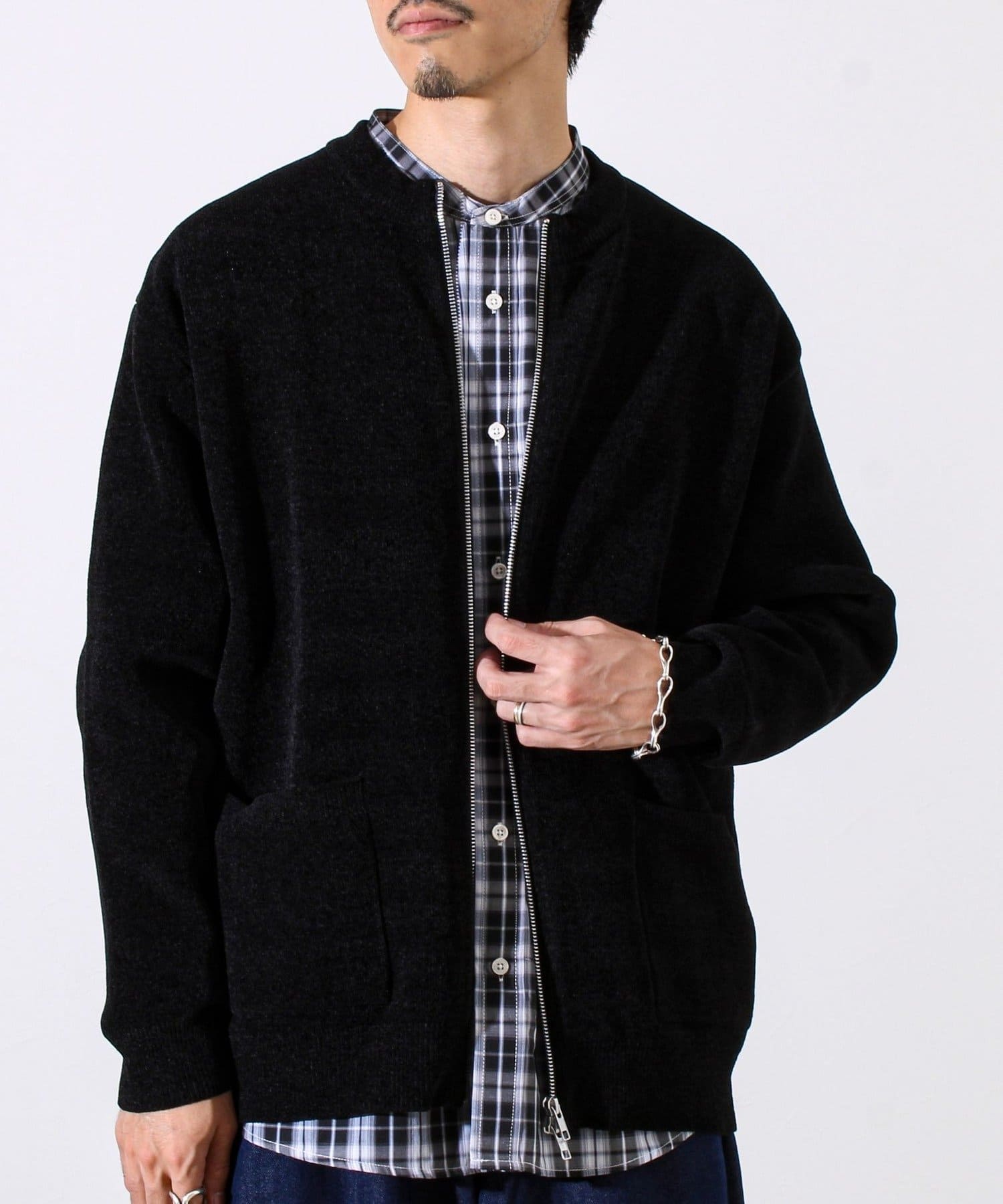 ・ミニマルなノーカラーデザインで、シャツやモックネックとの相性も抜群。