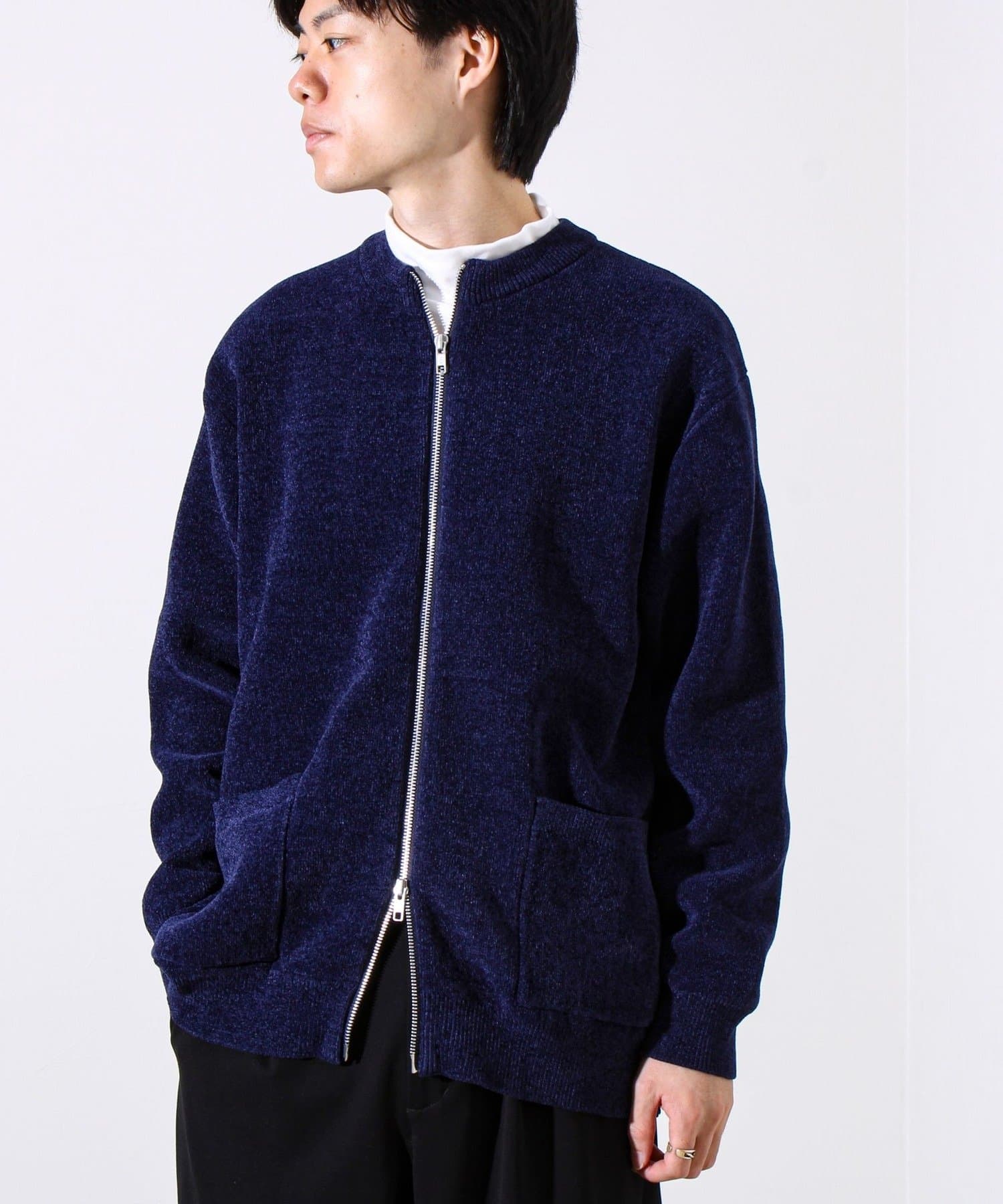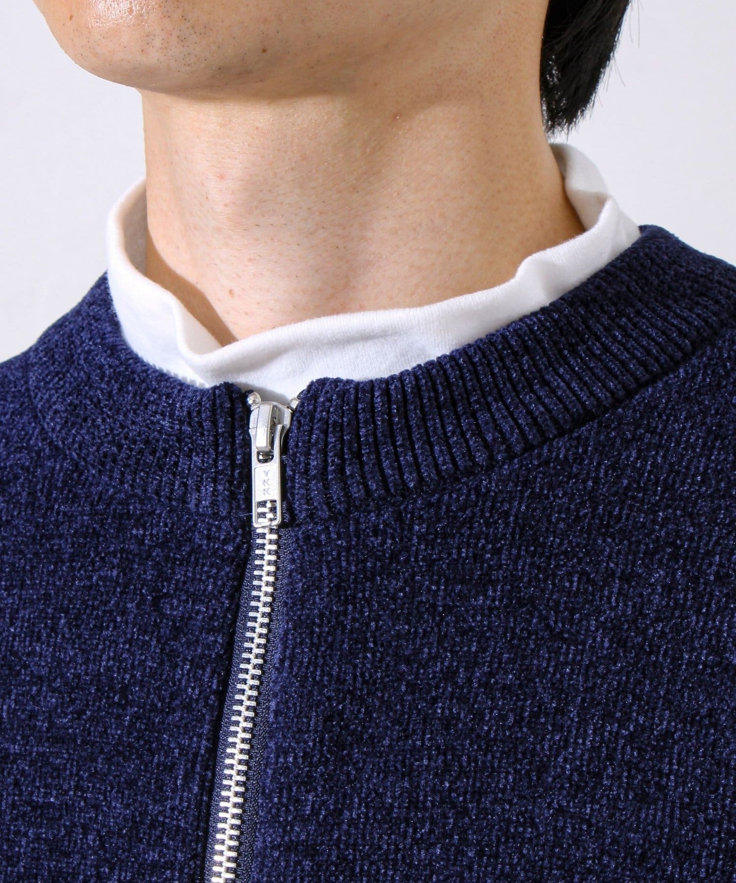 【チクチクしないニットシリーズ】モールダブルフェイス クルージップカーデ