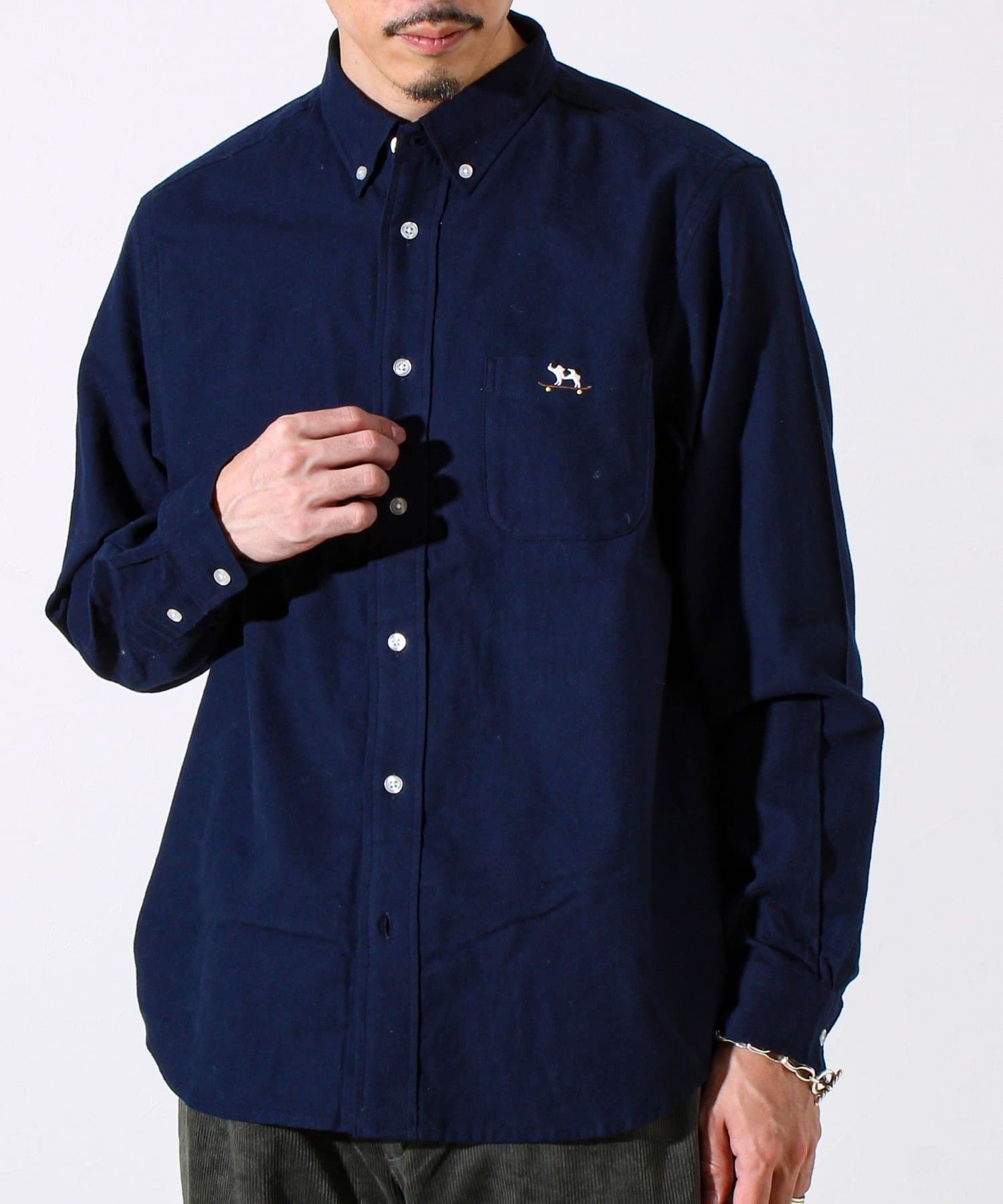 ふんわり起毛のネル素材に、胸元のスケボーフレブル刺繍がアクセント。