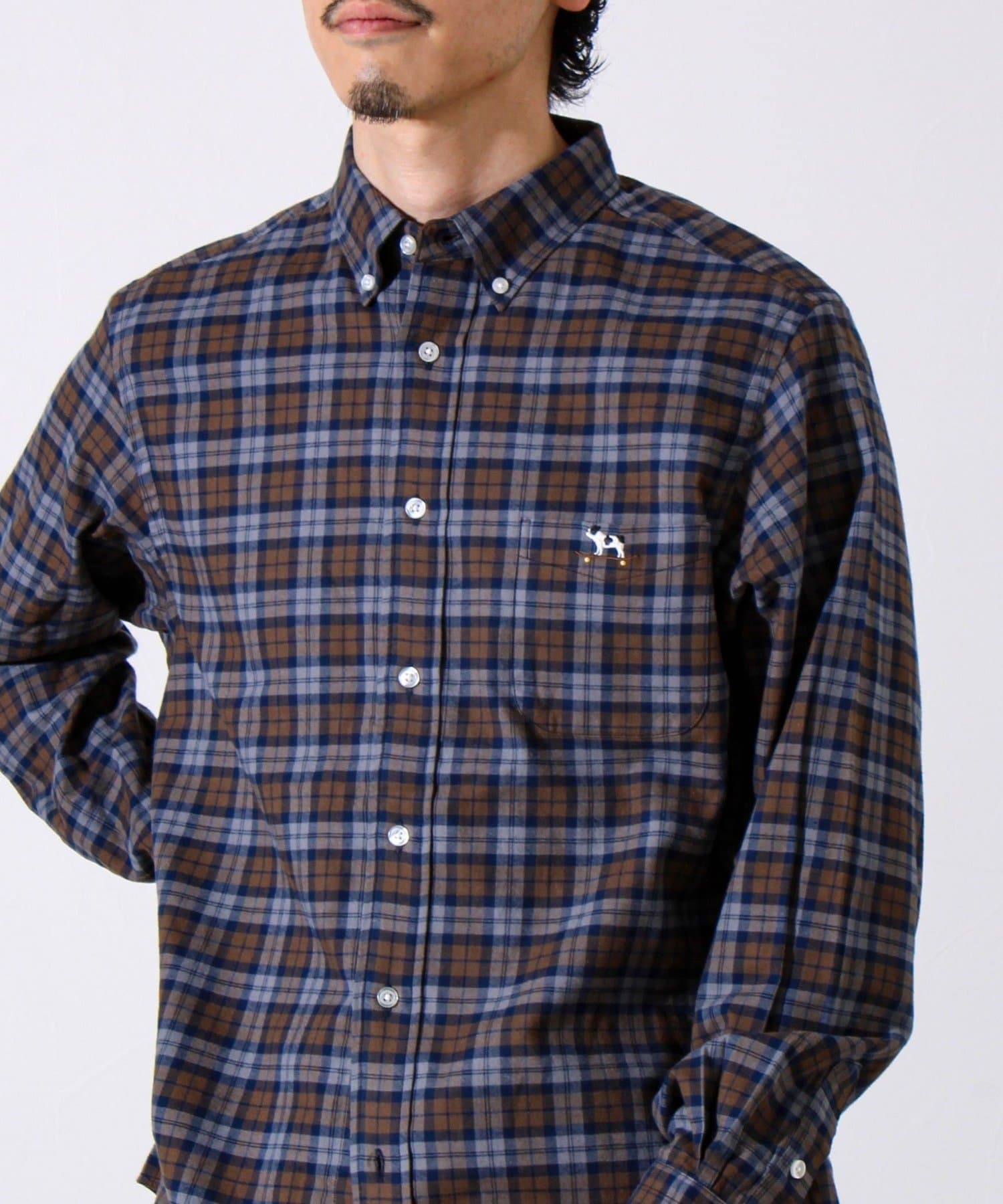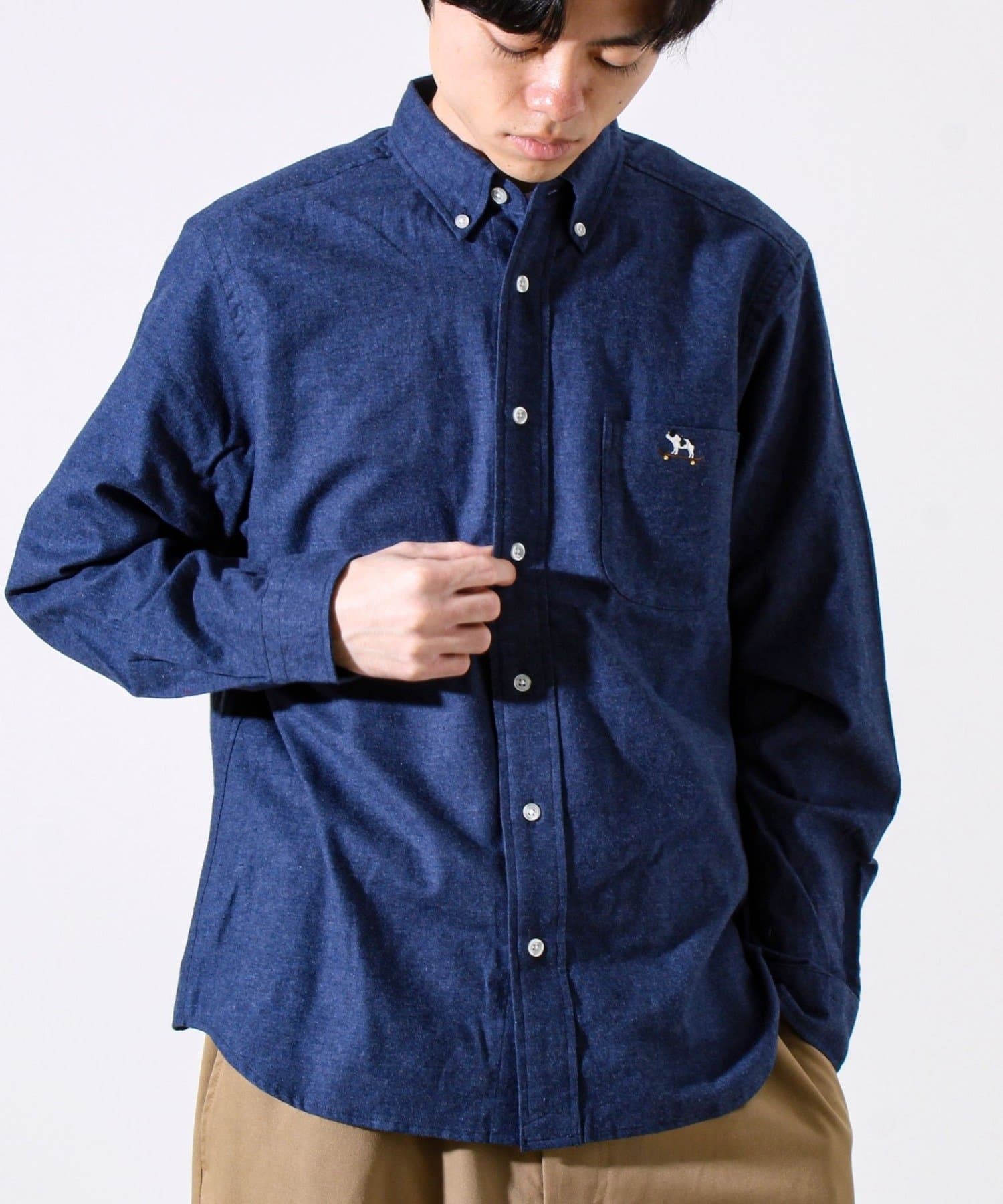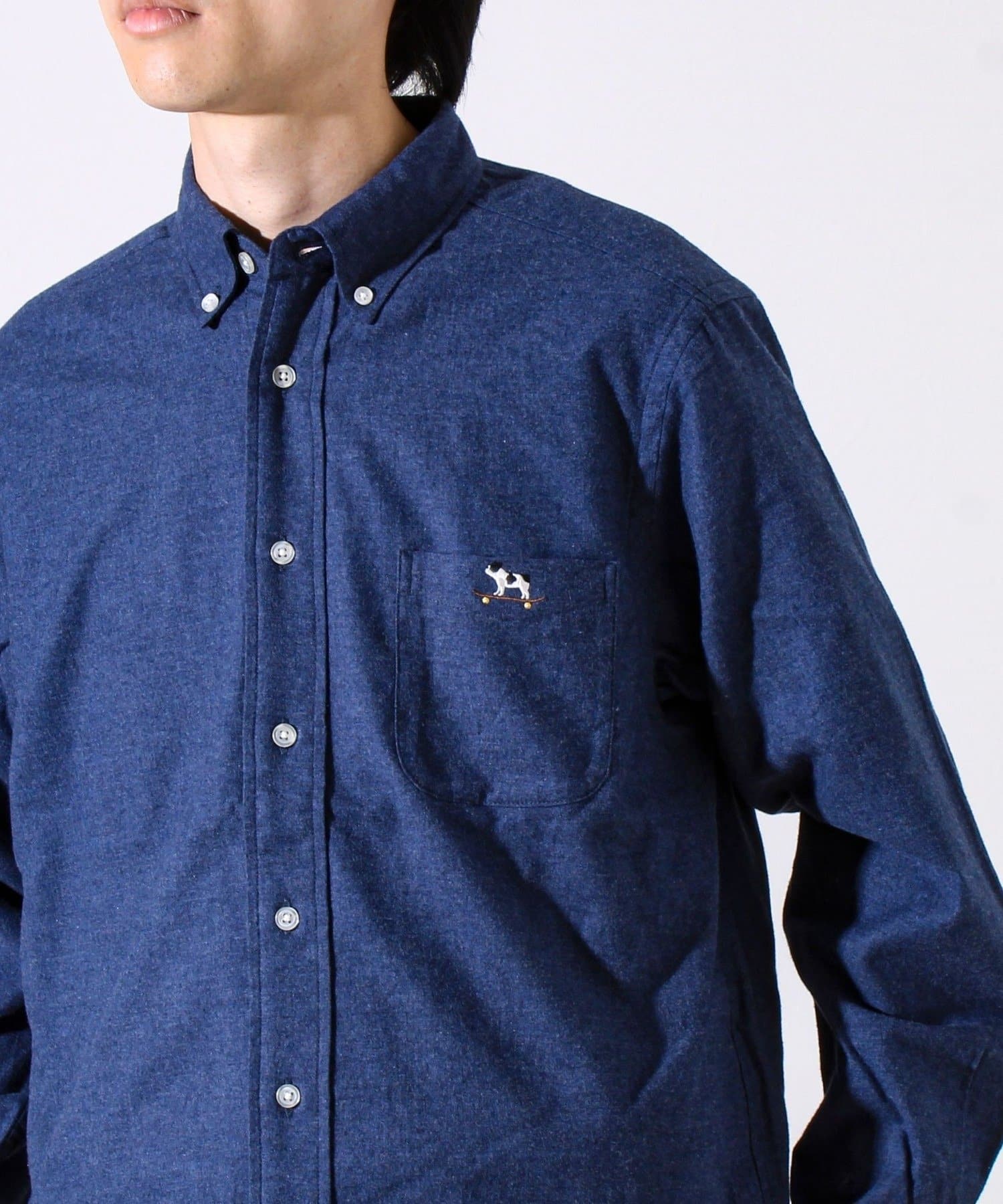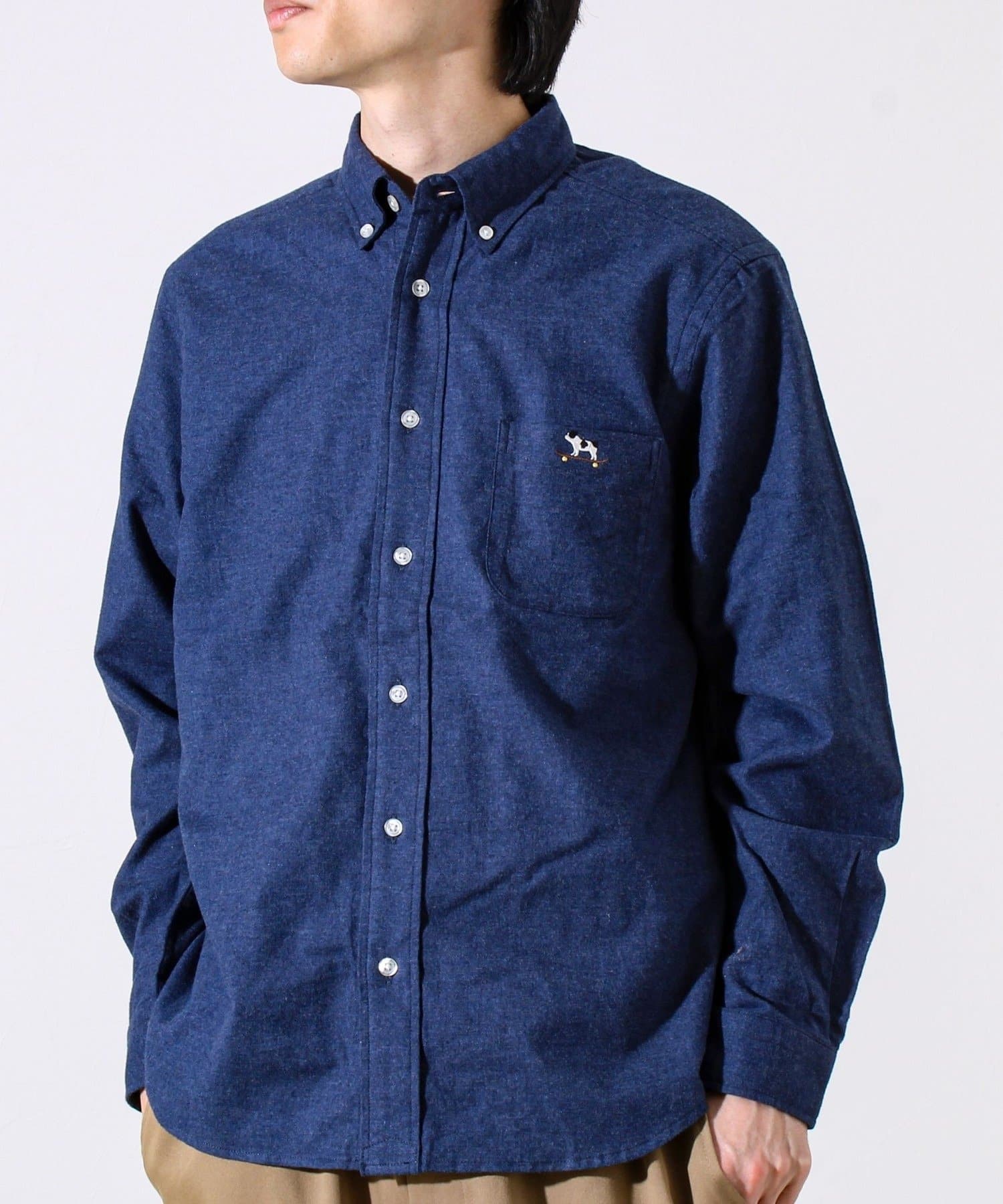 【定番フレブルシリーズ】フレンチブルドッグ刺繍 ボタンダウンネルシャツ