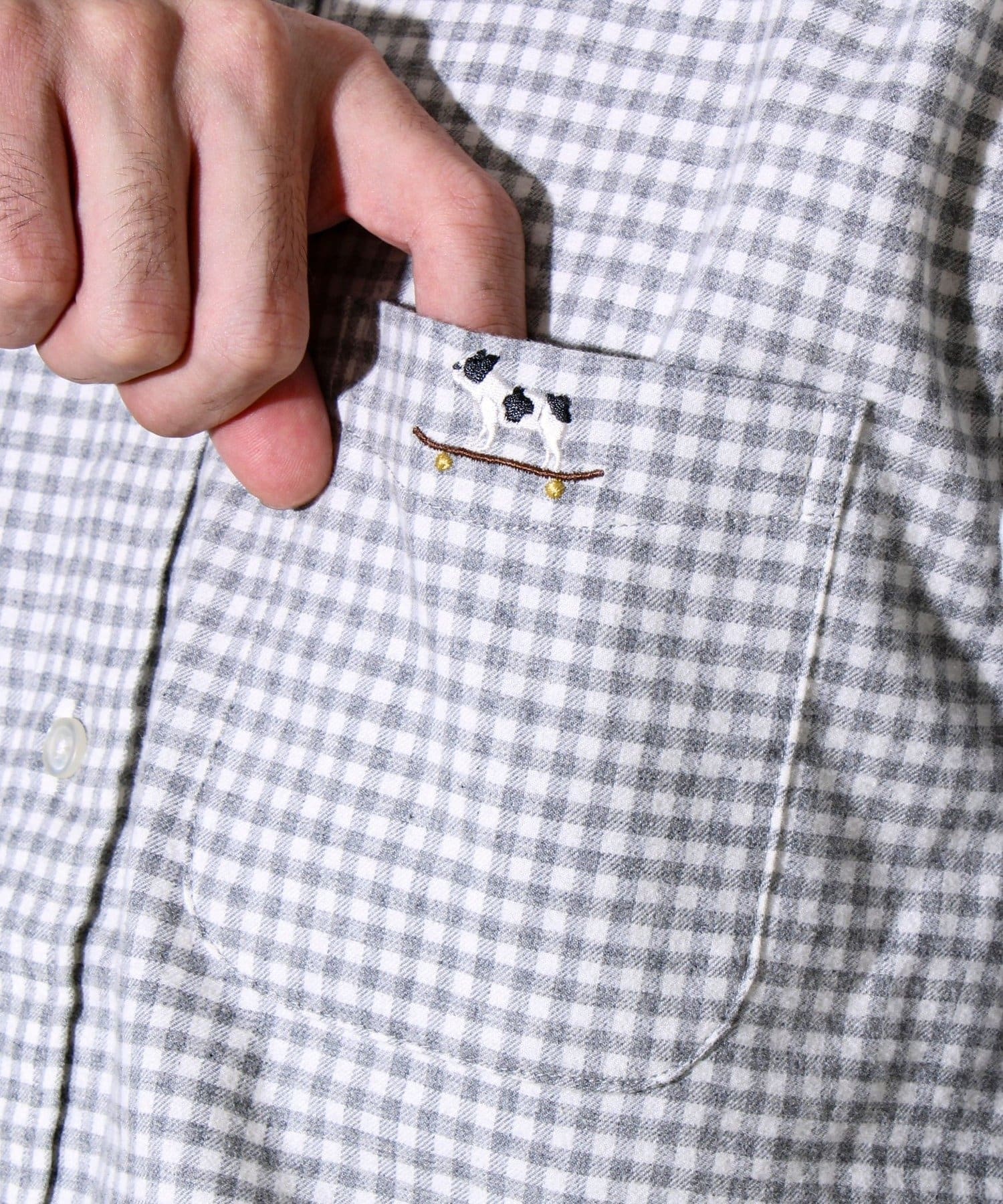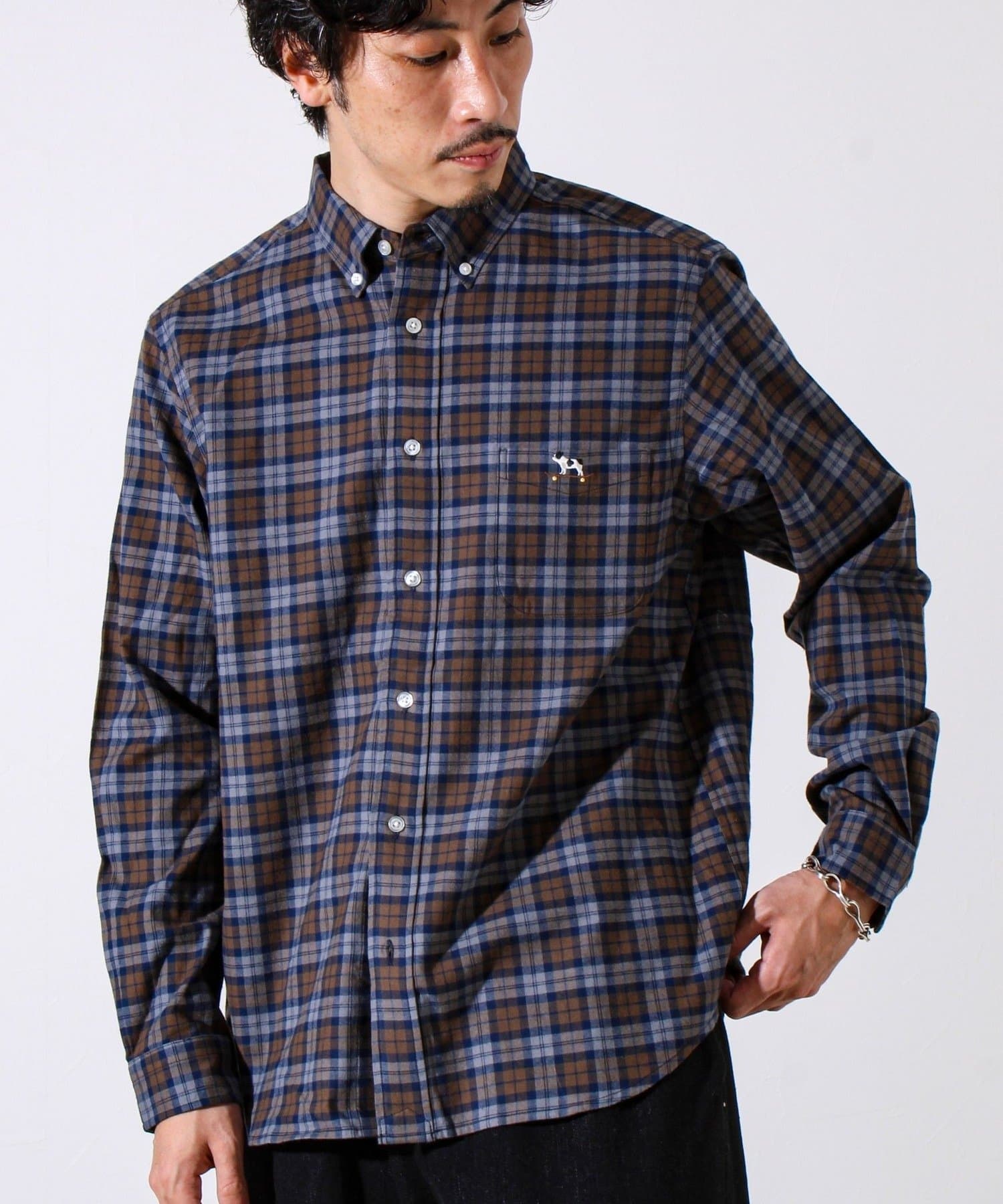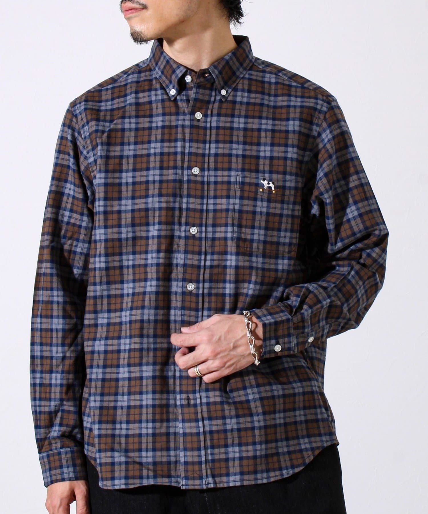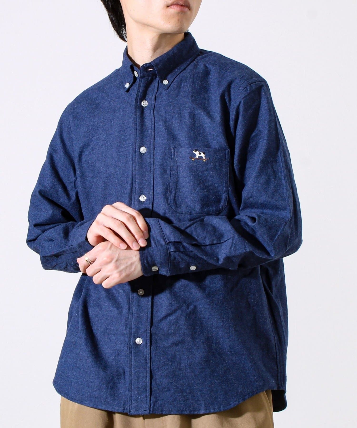 【定番フレブルシリーズ】フレンチブルドッグ刺繍 ボタンダウンネルシャツ