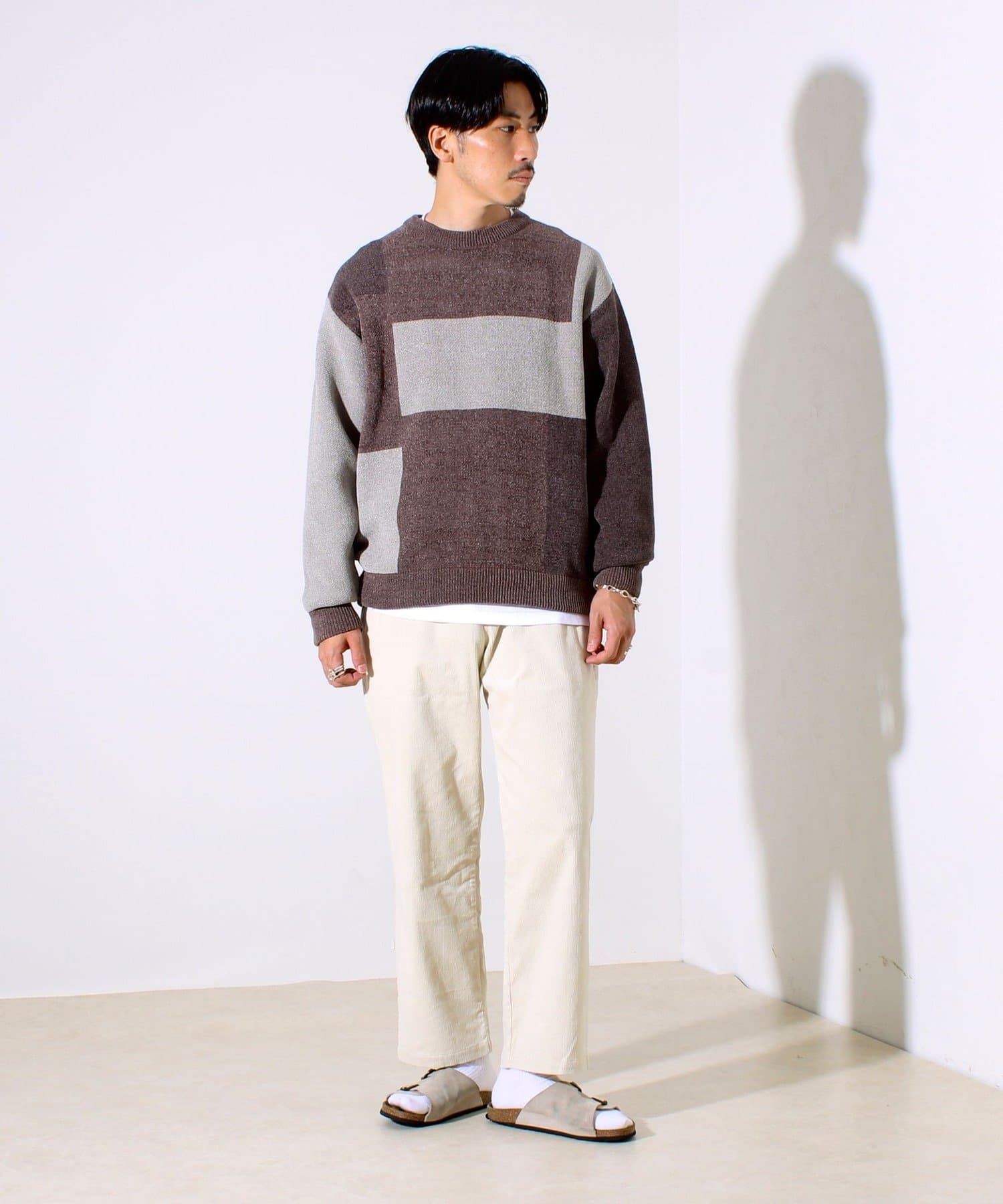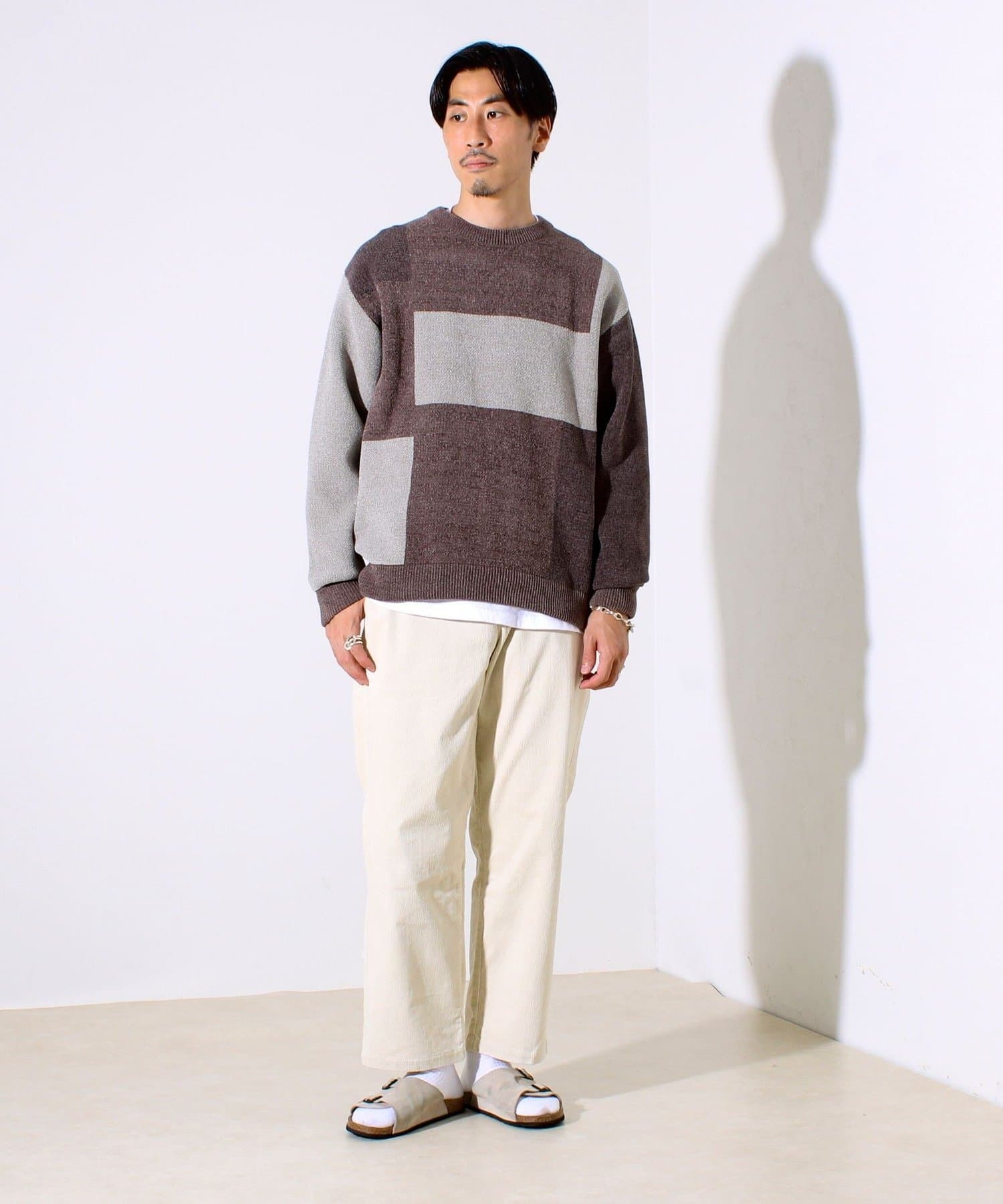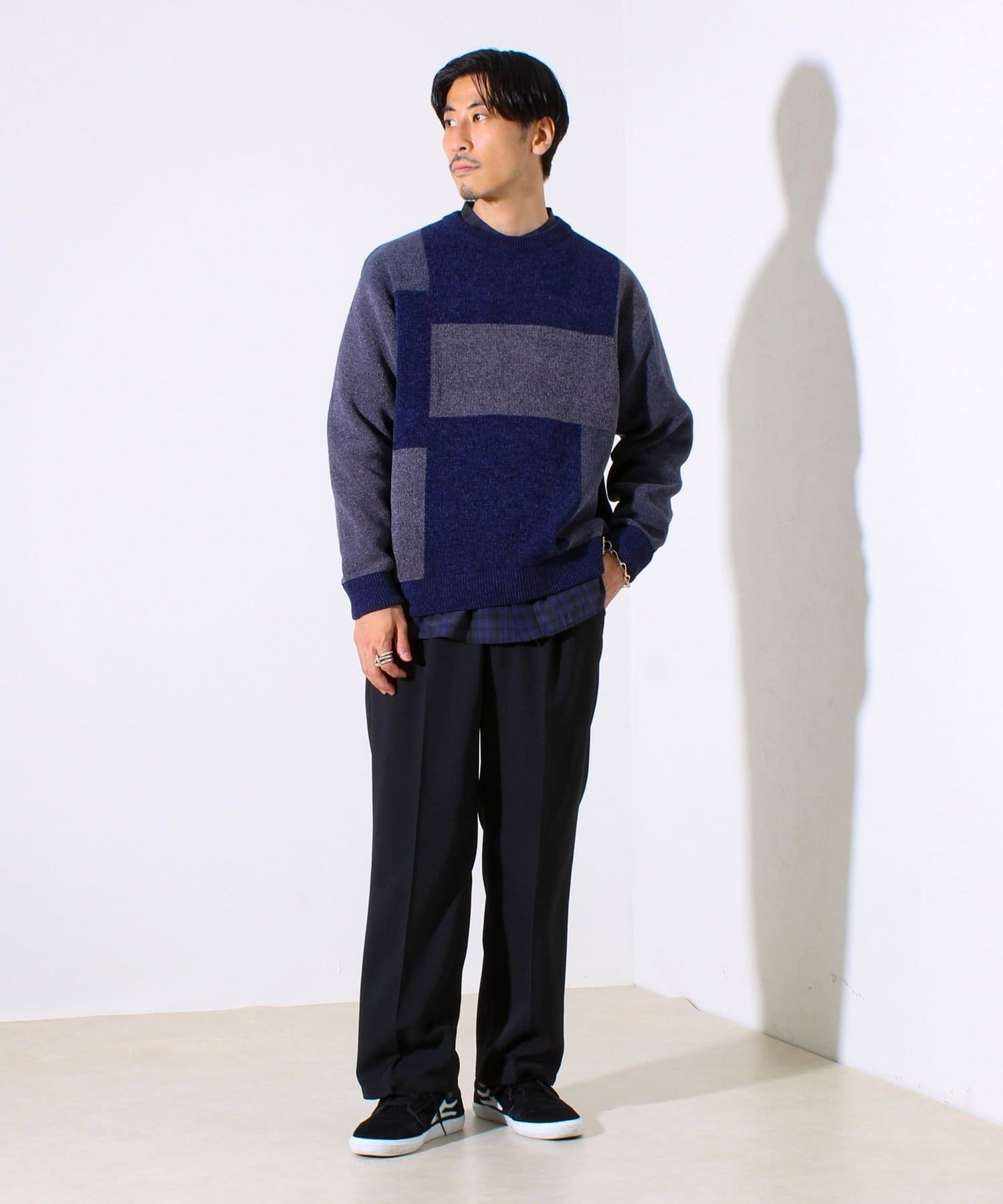 #モールニット #ブロッキングニット #GLOSTER #秋冬コーデ #大人カジュアル #レイヤード #きれいめカジュアル #ユニセックス #トレンドニット #ニットスタイル