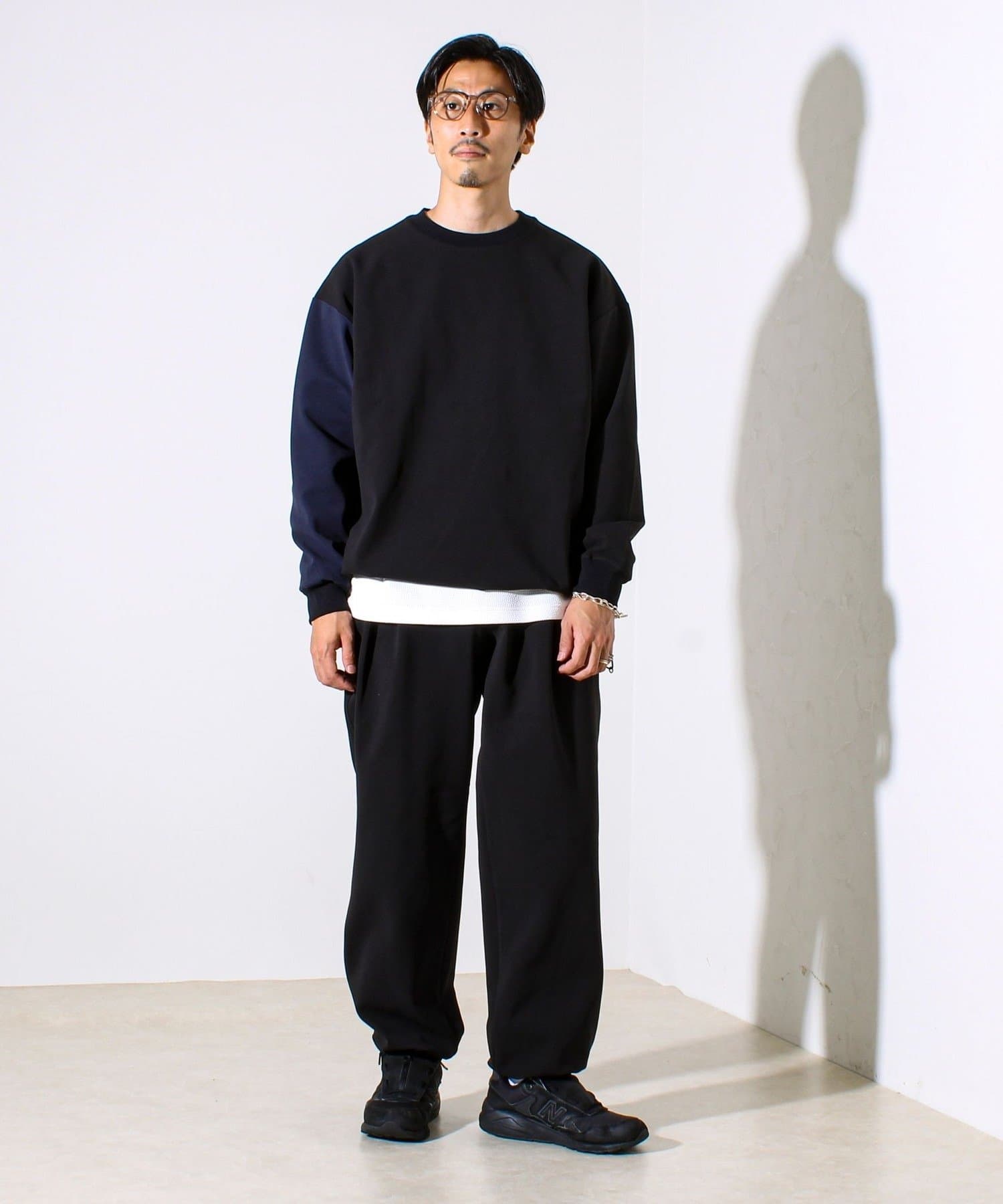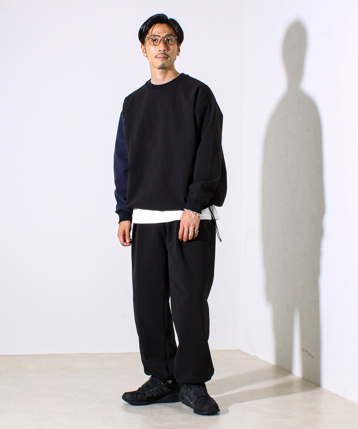 #GLOSTER #バイカラースリーブ #ドローコード #リラックスシルエット #ユニセックス #スウェット #セットアップ対応 #大人カジュアル #シンプルコーデ #3ピースコーデ
