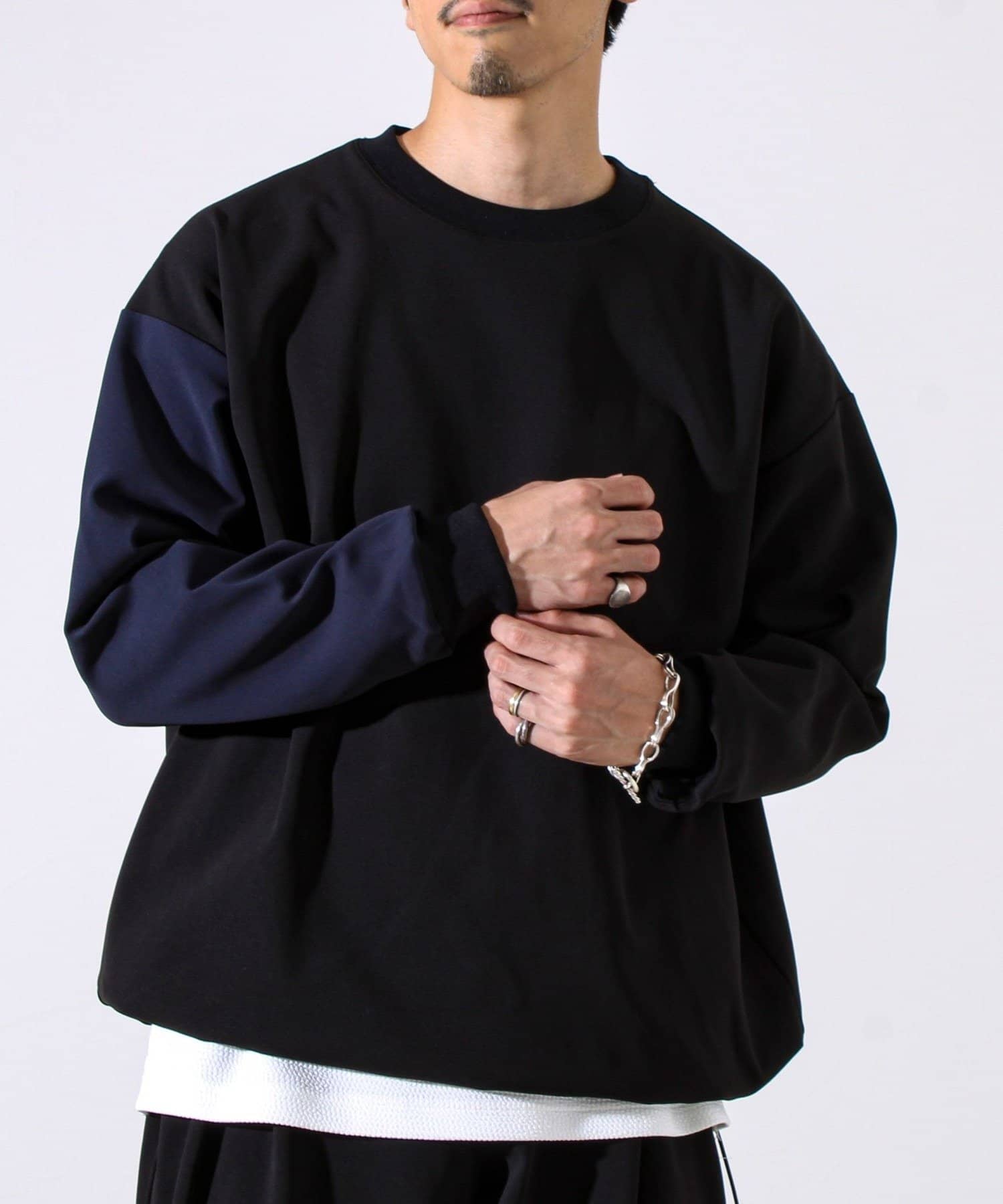 【配色袖がアクセント】トリコットバイカラースリーブ プルオーバー