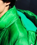 アウターの程よい光沢がコーデのメリハリに。