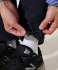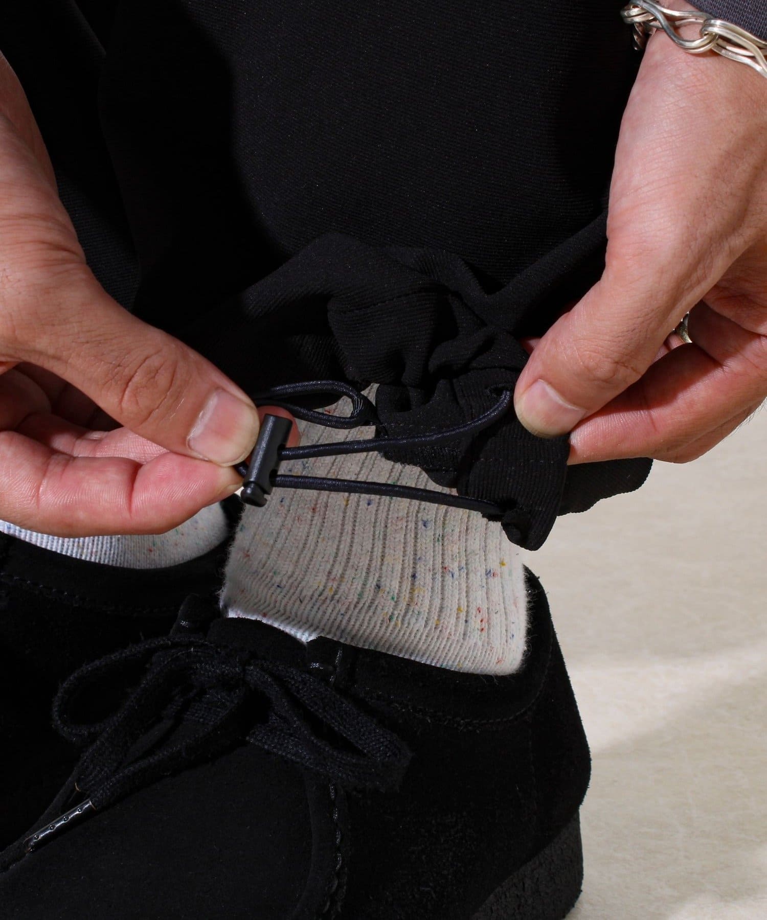 ・裾にはドローコード付きでシルエット調整が可能。ワイドにもテーパードにもアレンジ自在