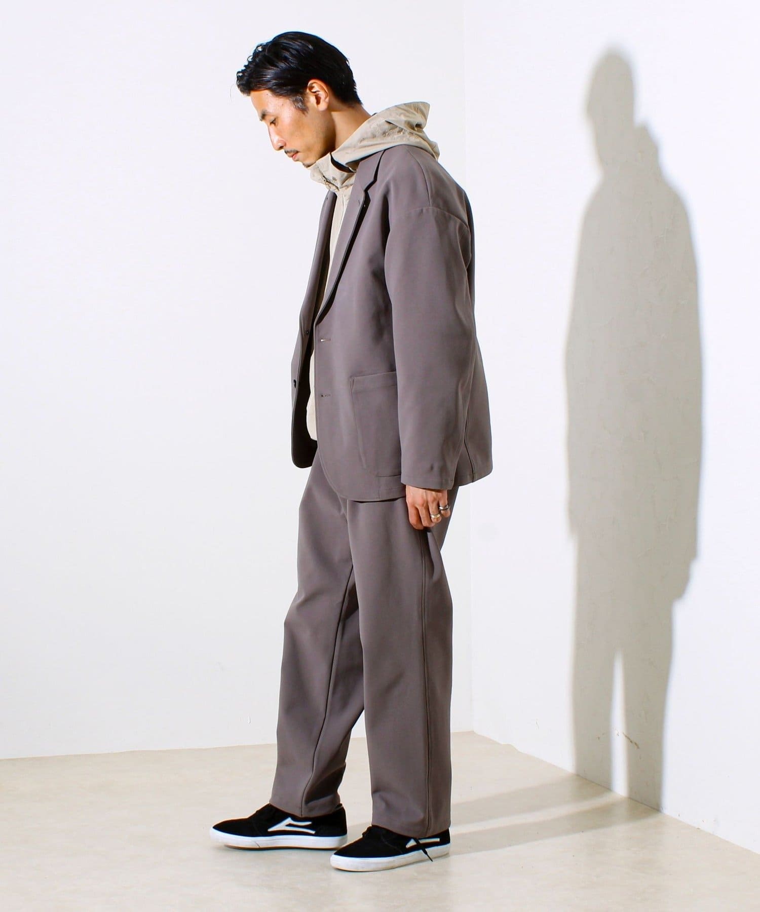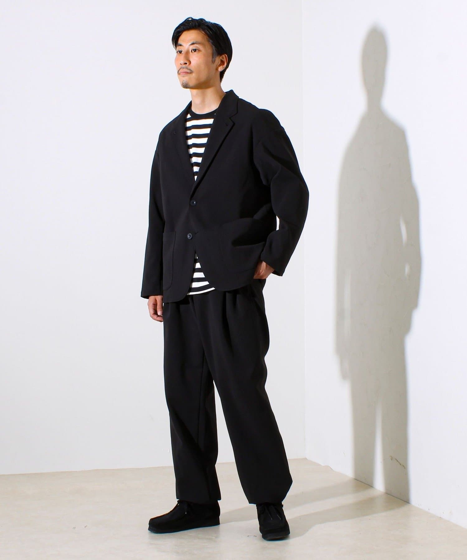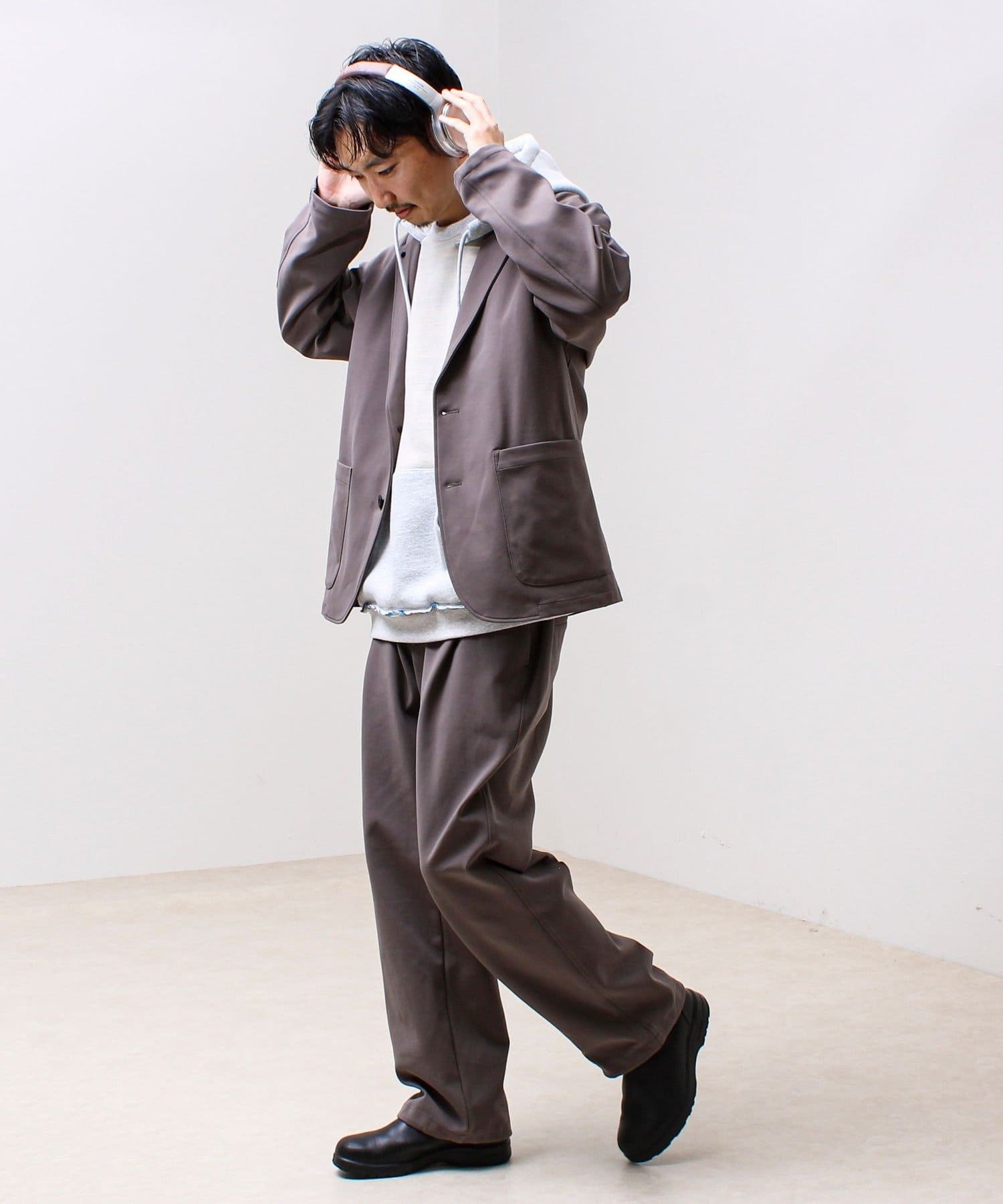 同素材ジャケットと合わせて、ラフさと上品さを両立した大人のセットアップスタイルに。