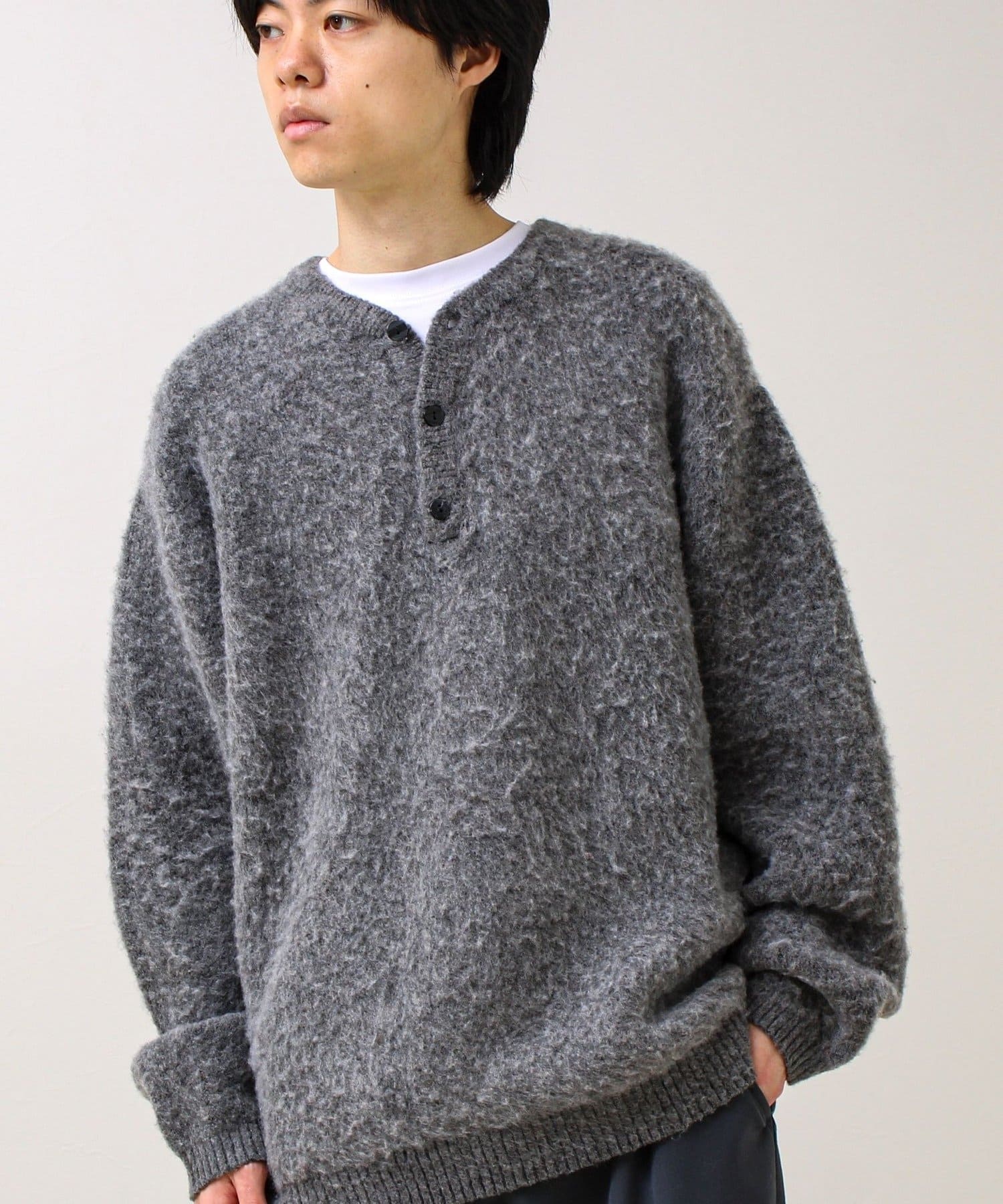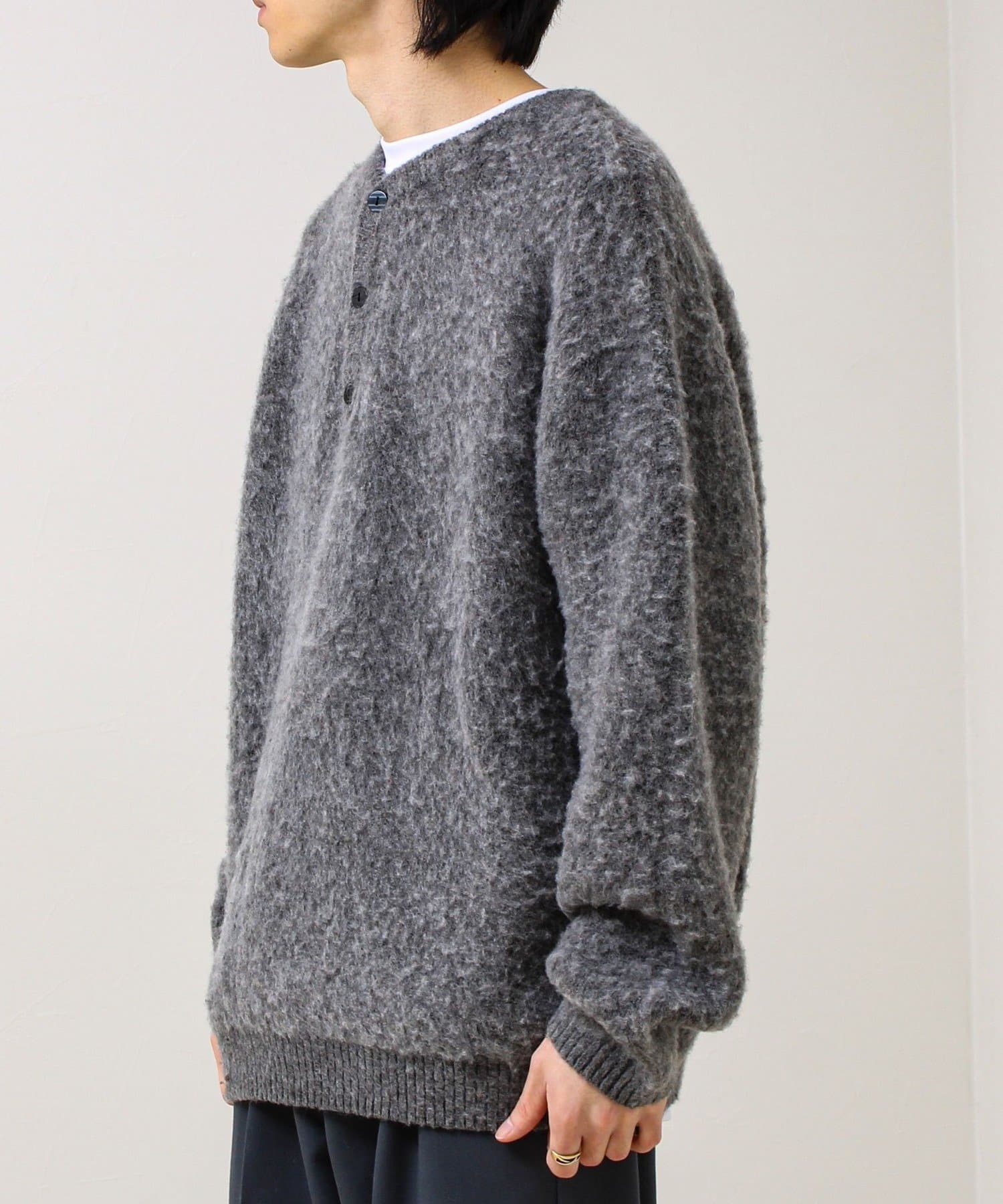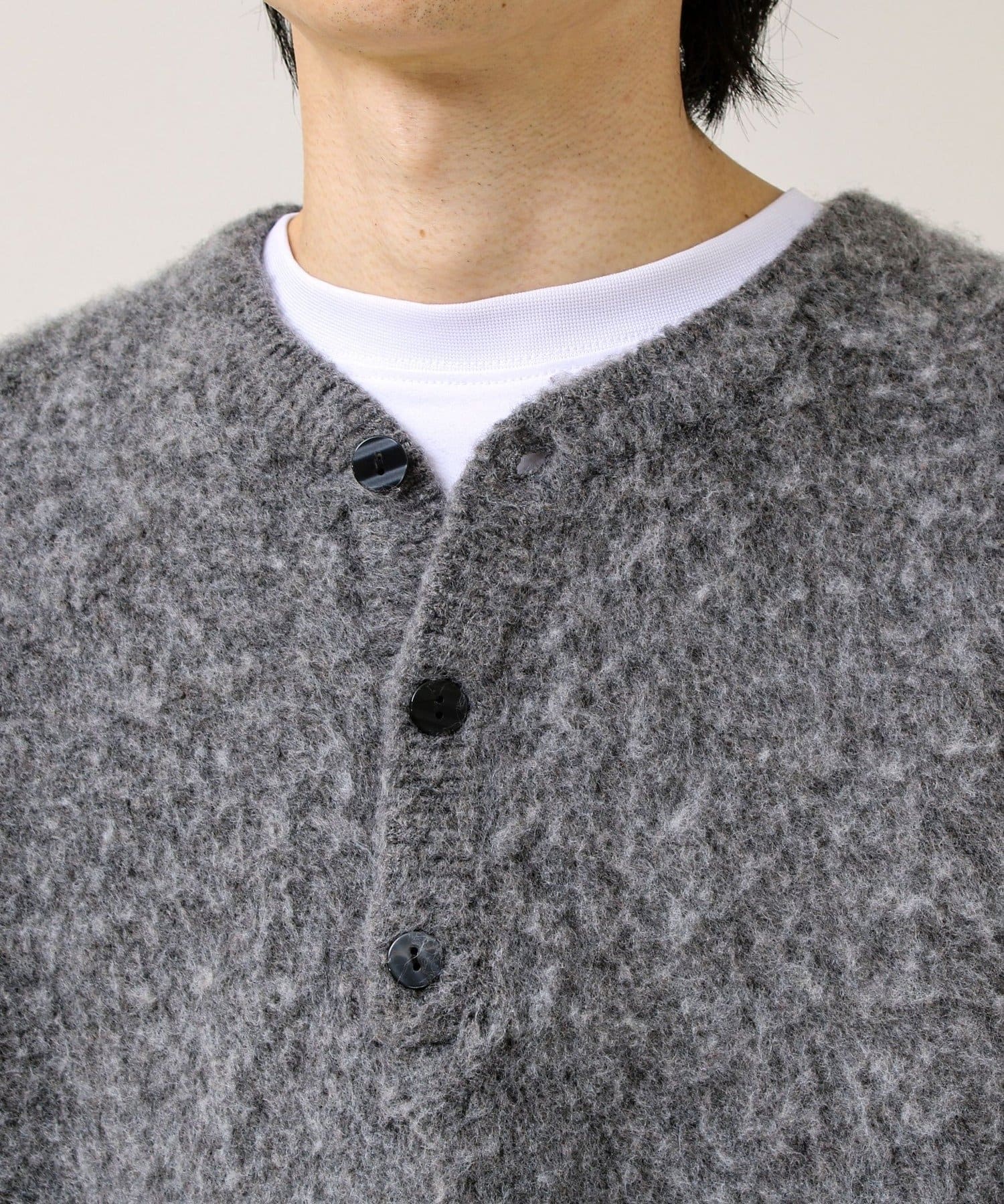【モヘアタッチ/ユニセックス対応】ヘンリーネックプルオーバーニット