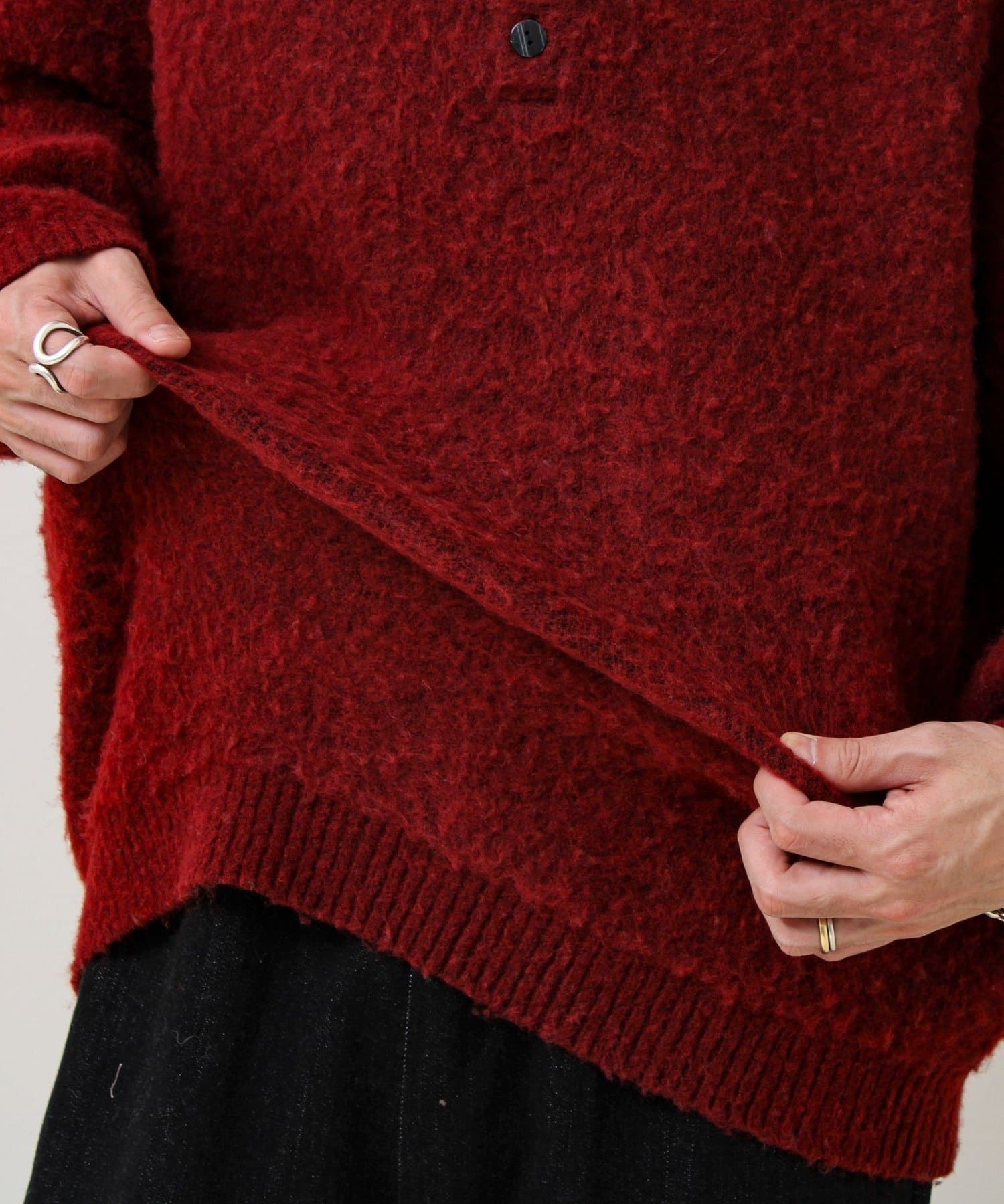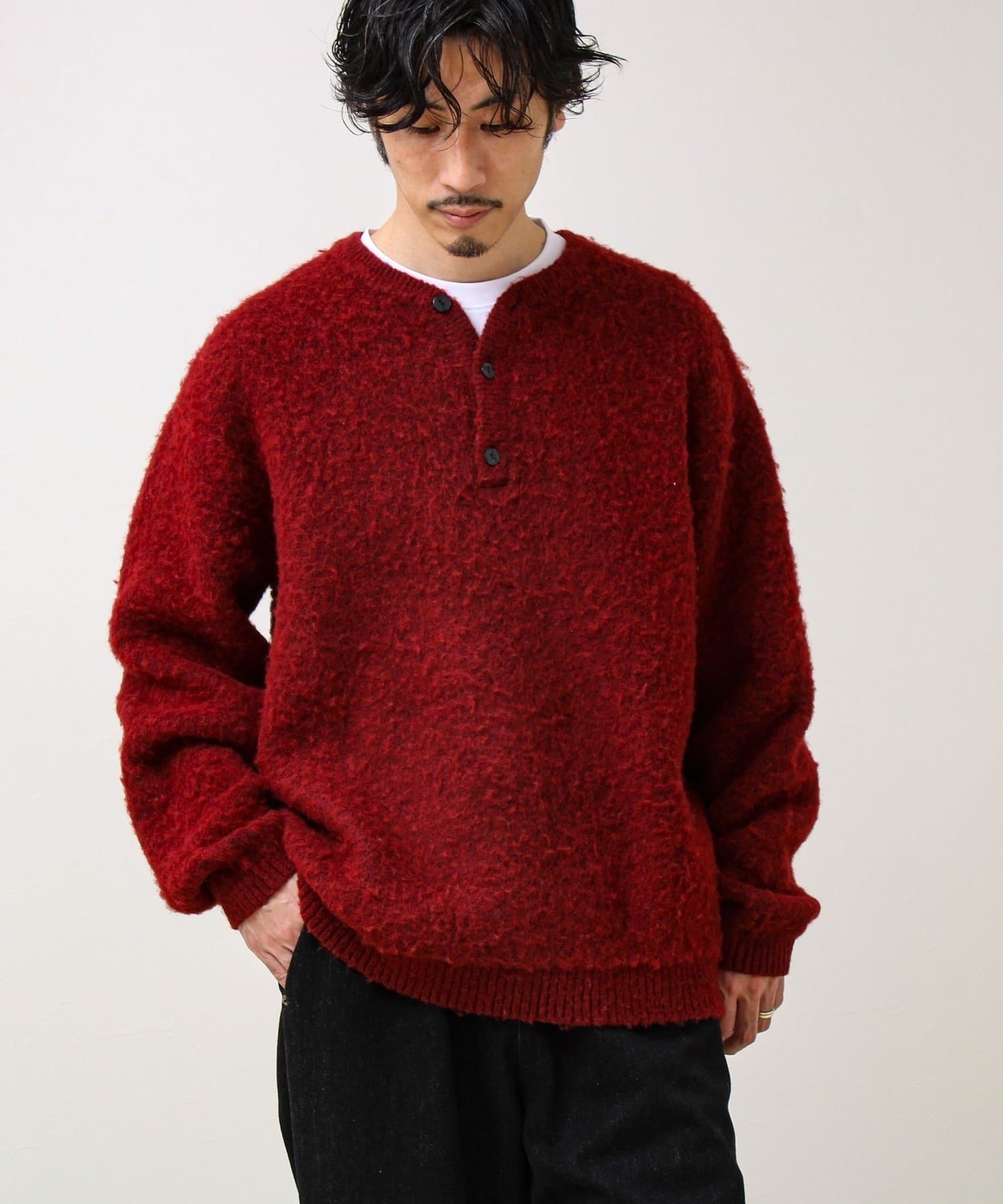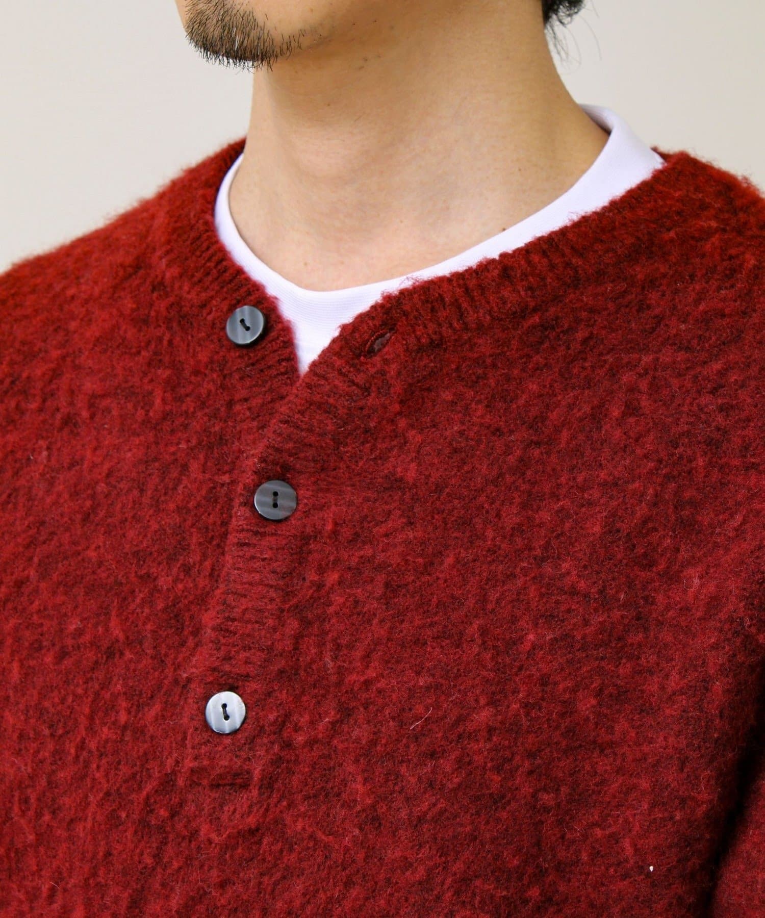 【モヘアタッチ/ユニセックス対応】ヘンリーネックプルオーバーニット