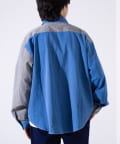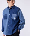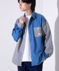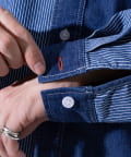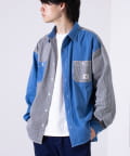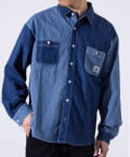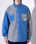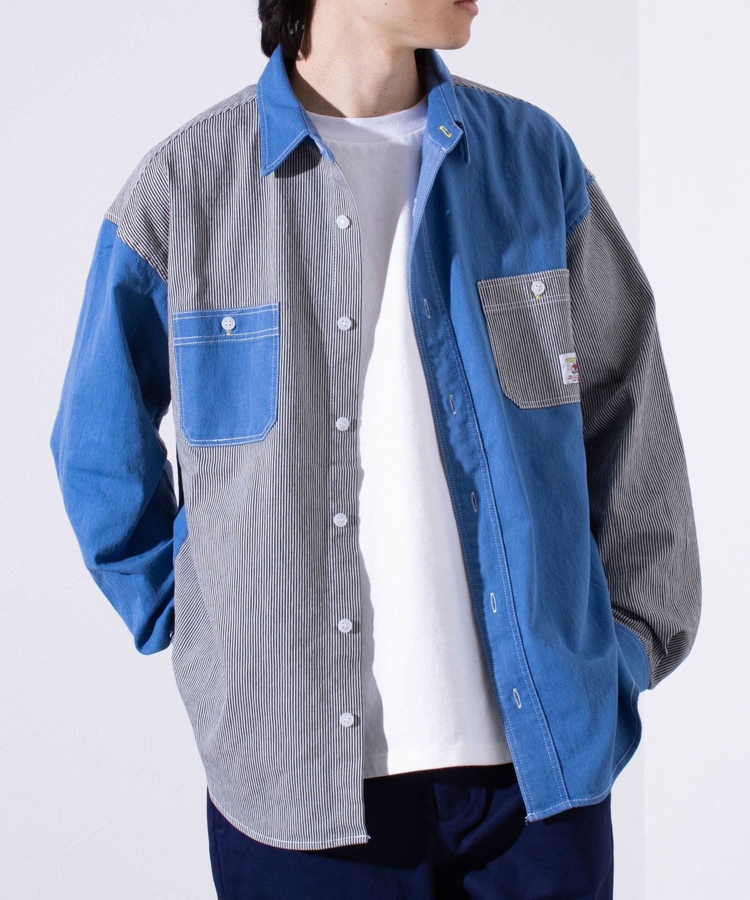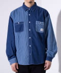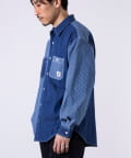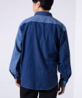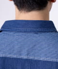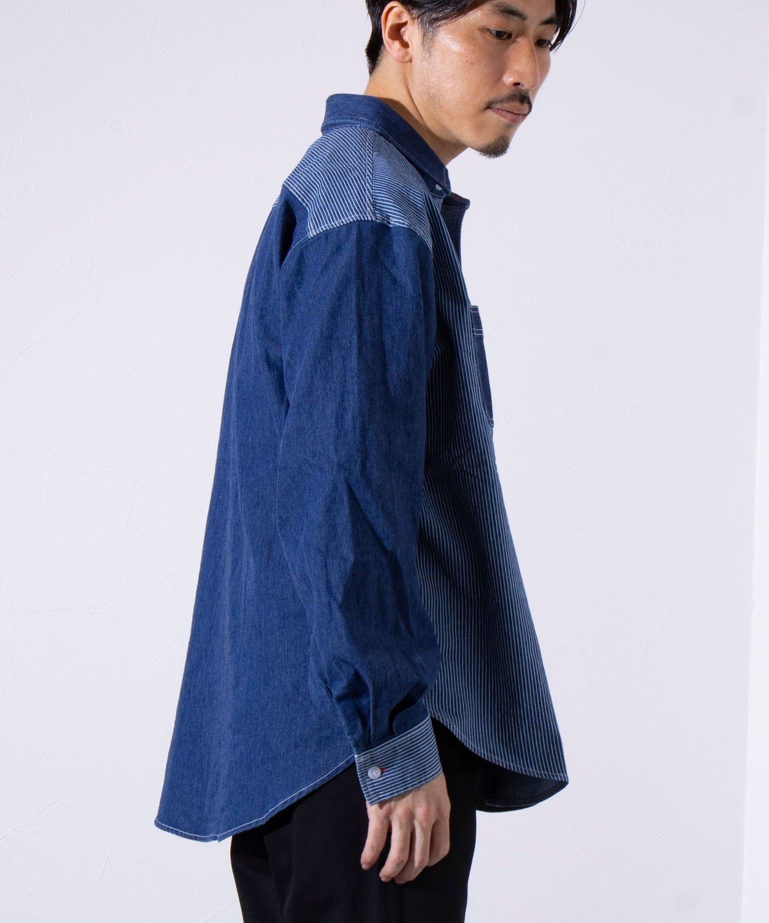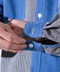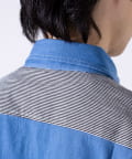 デニムとストライプの生地切り換えが目を惹くレギュラーカラーシャツ