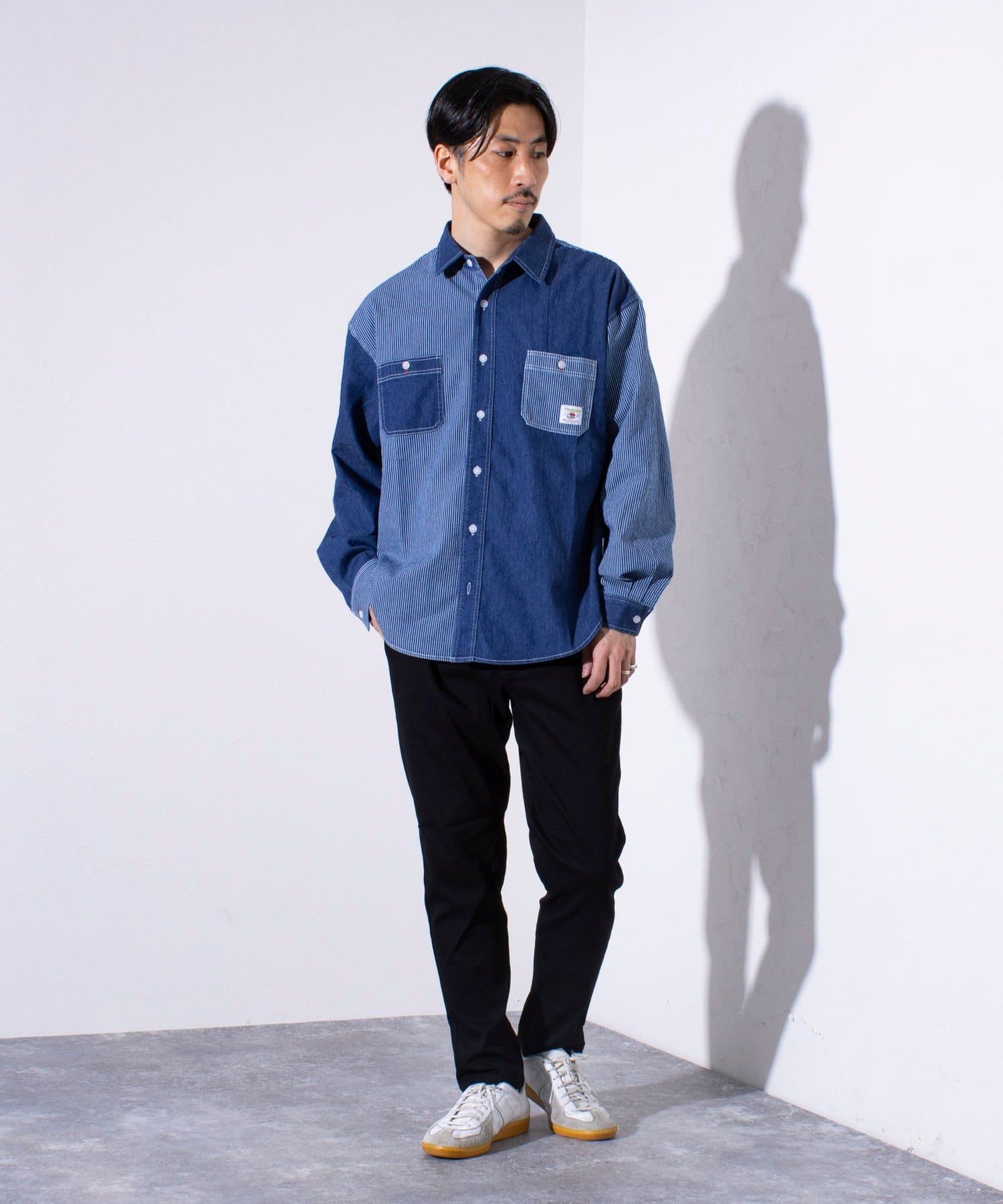 トレンドのシルエットとデザインでヘビロテできるFREDYMACの長袖ヒッコリーシャツ。